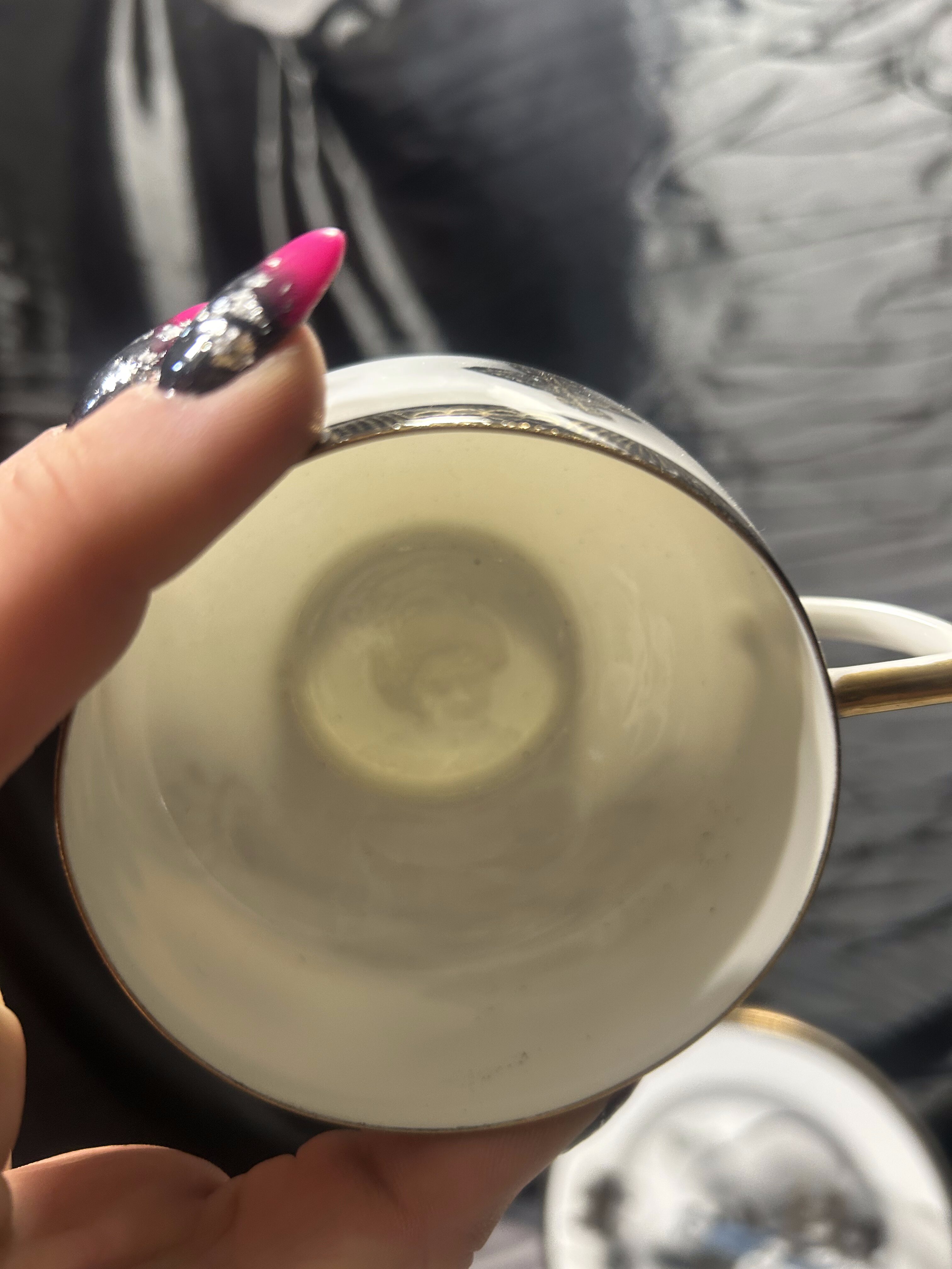 Dodatkowym, niezwykle ciekawym elementem jest widoczna pod światło głowa gejszy w czarce filiżanki – detal charakterystyczny dla wybranych wyrobów Kutani, szczególnie ceniony przez kolekcjonerów.