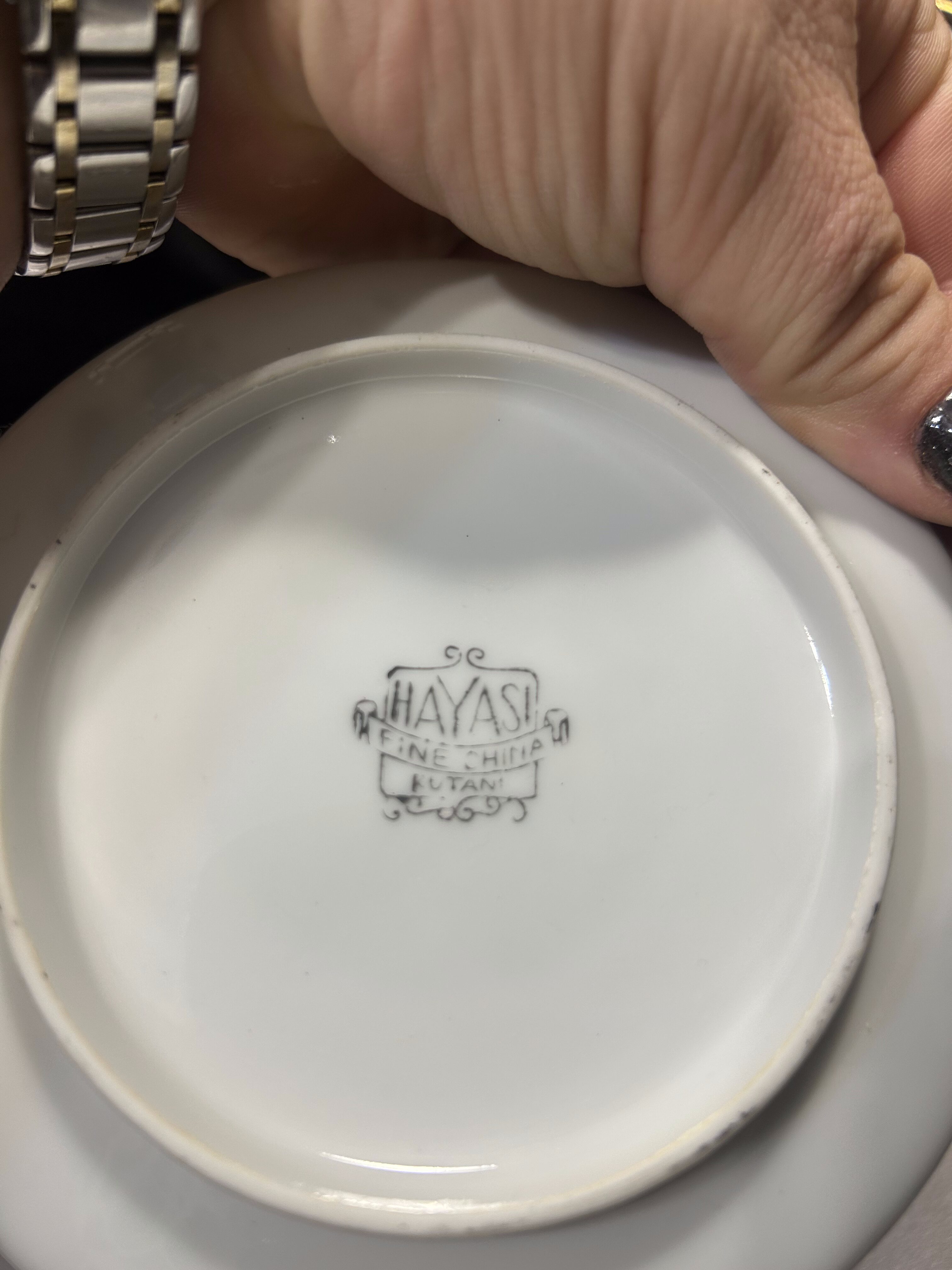- Zestaw dwóch filiżanek Kutani Trio – Japonia – porcelana kolekcjonerska