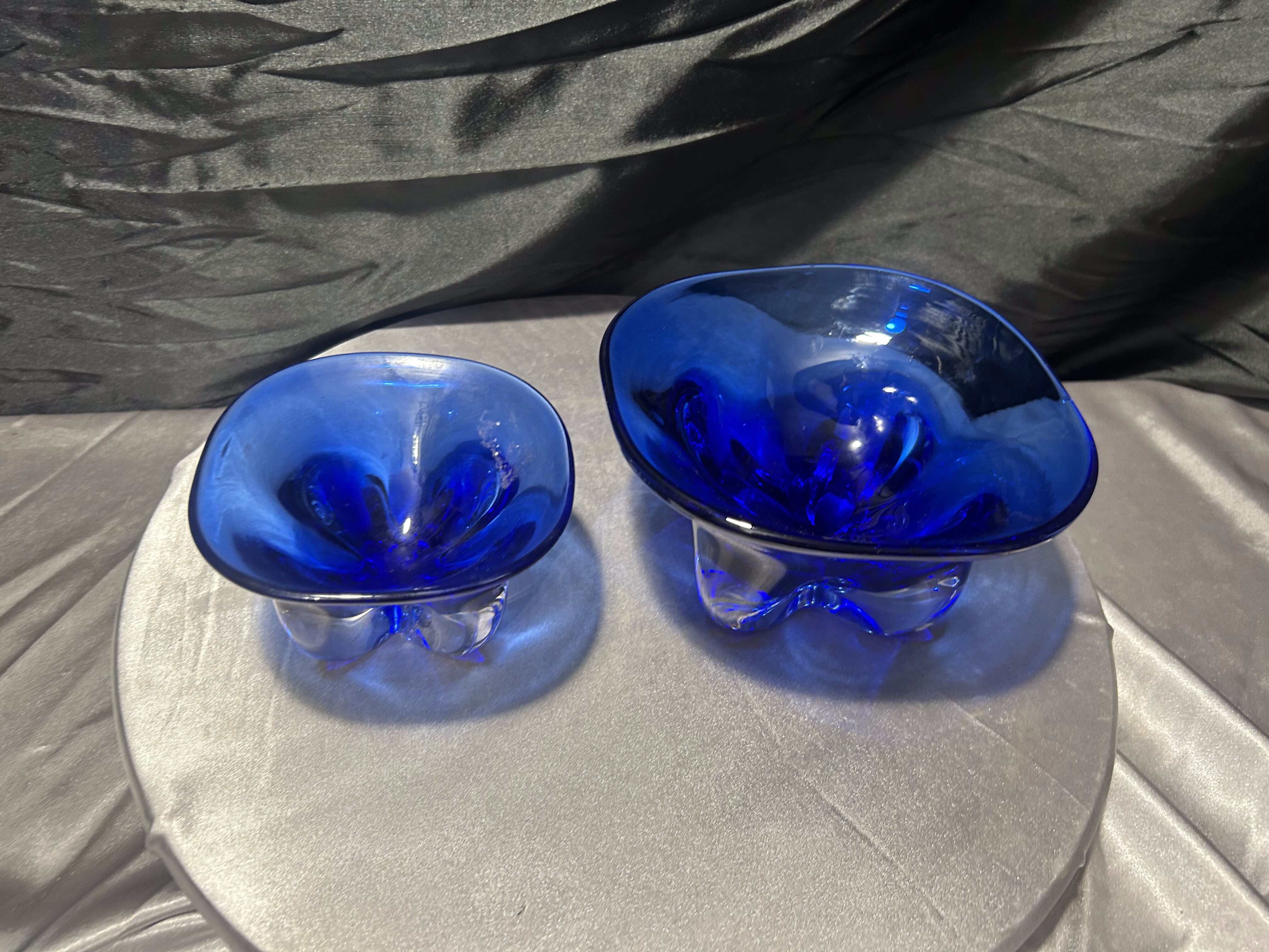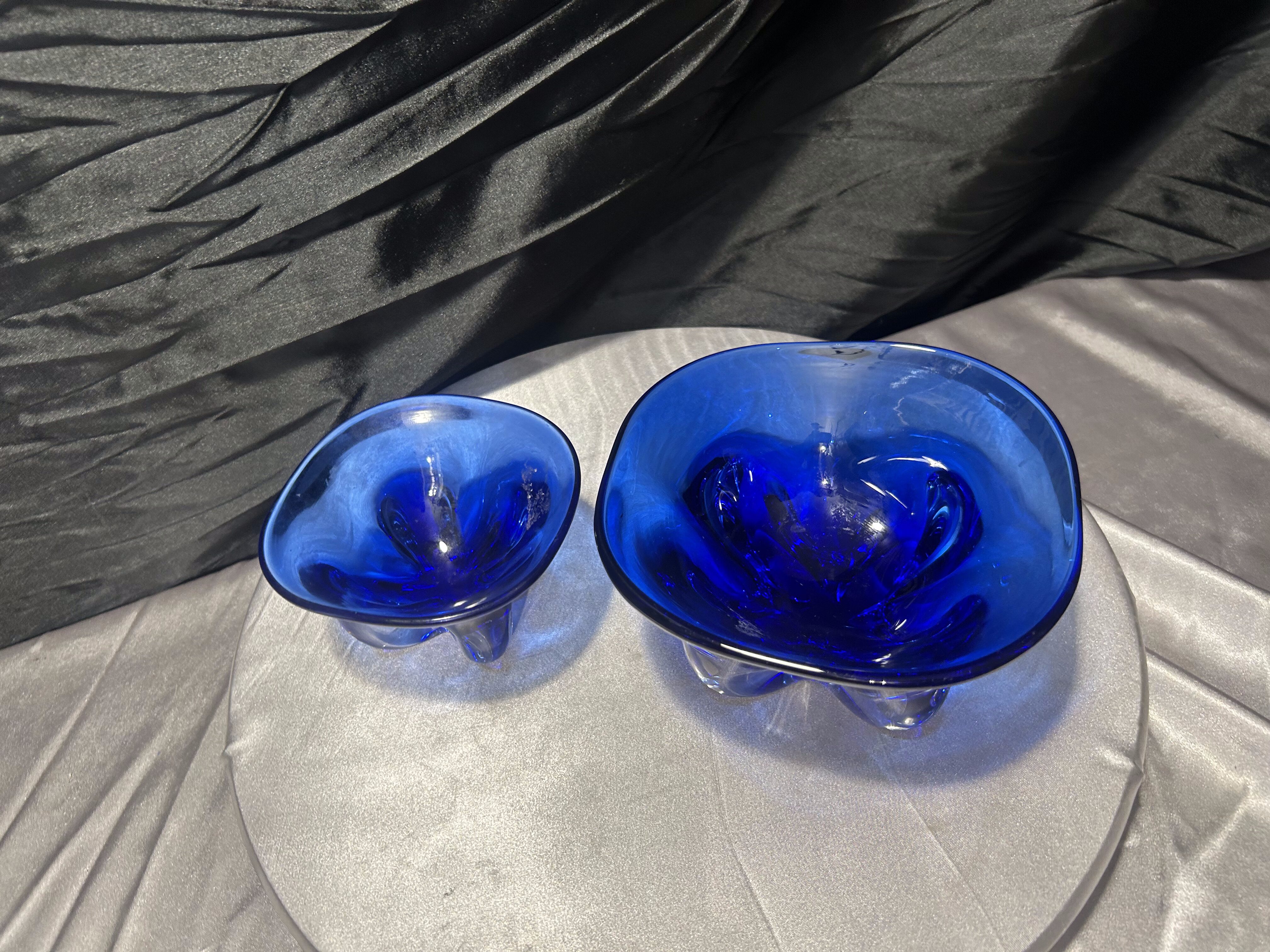 - Zestaw dwóch granatowych mis – szkło artystyczne – różne wielkości