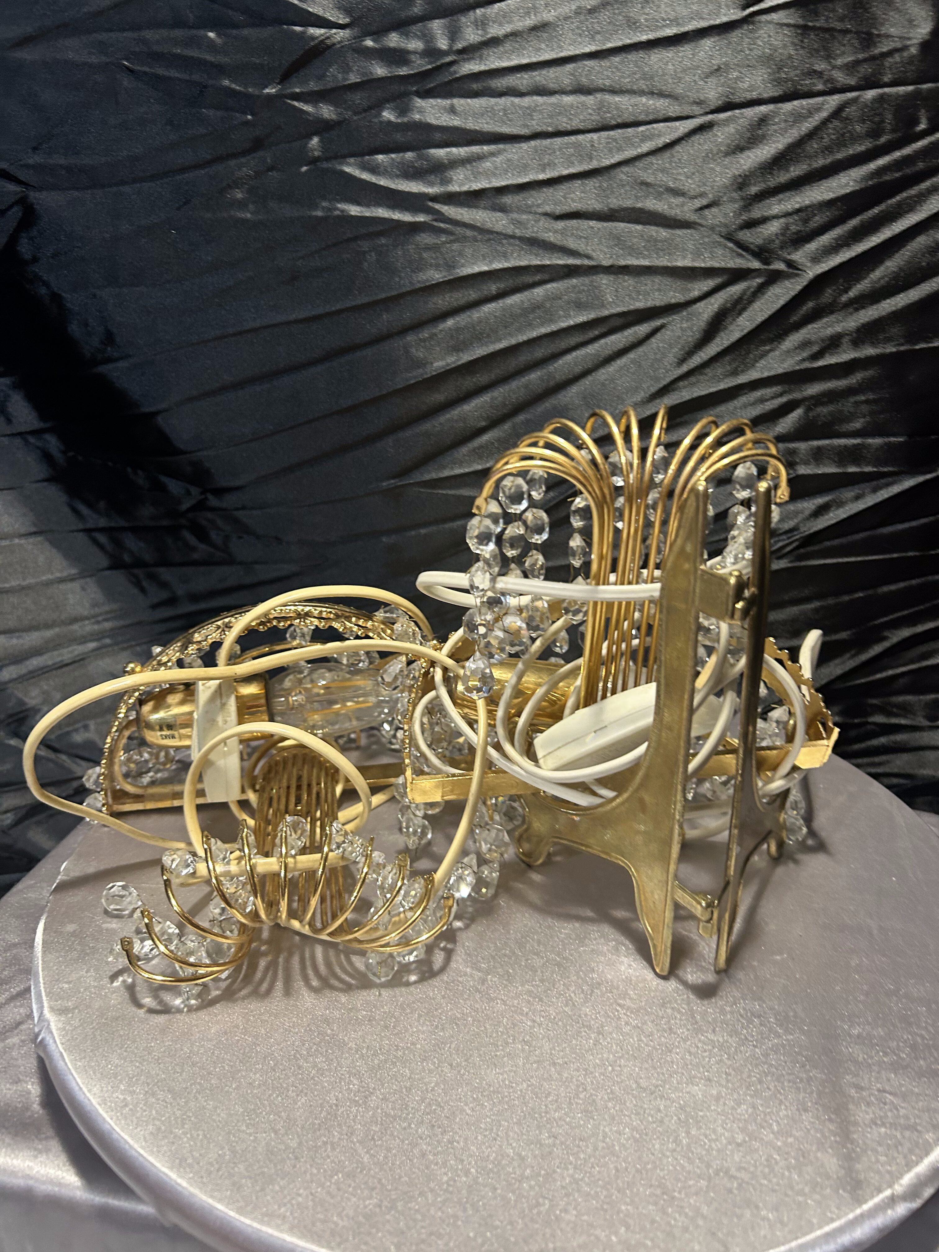 - Zestaw dwóch kinkietów glamour – złoto i kryształki – elegancki komplet