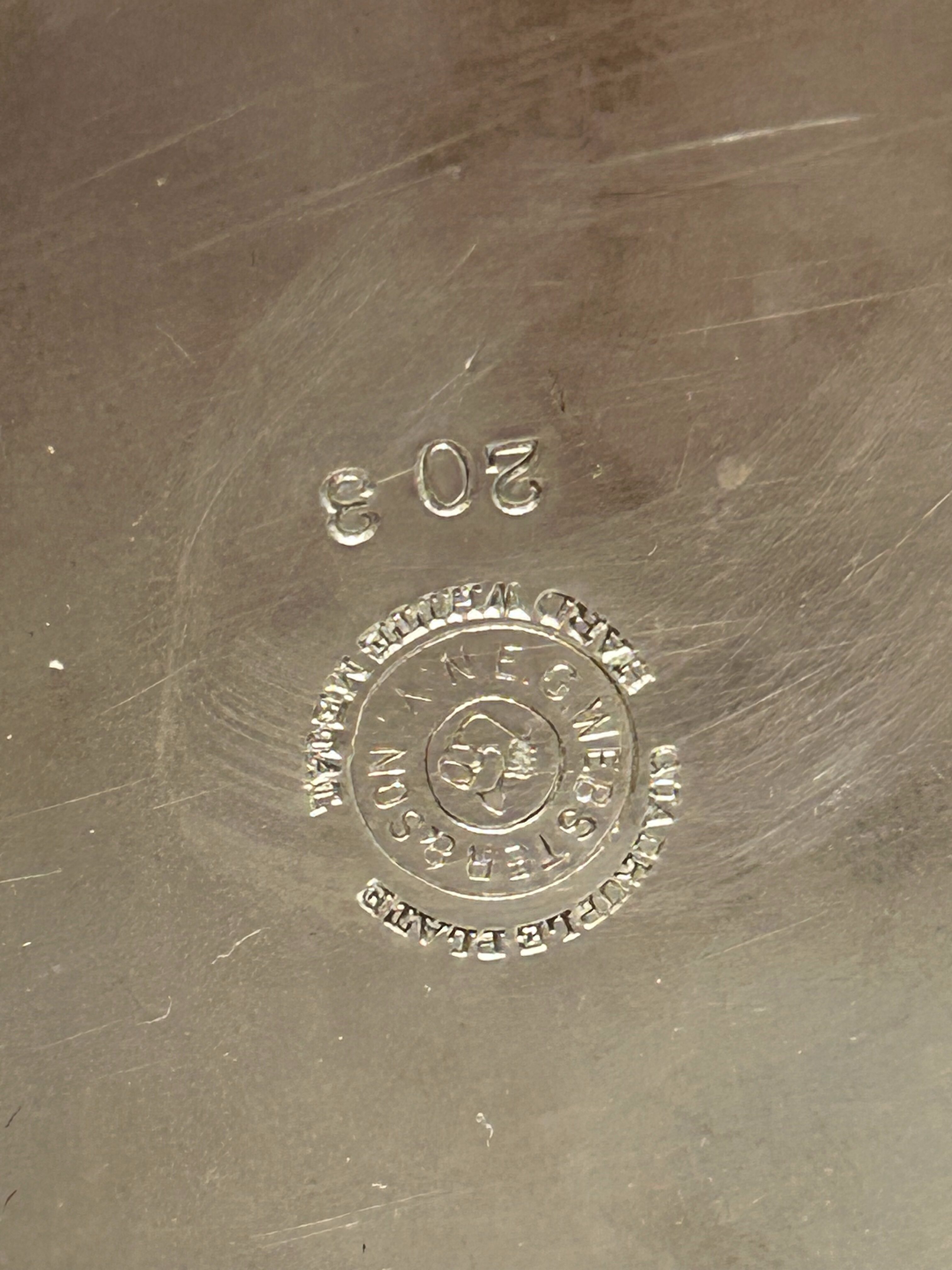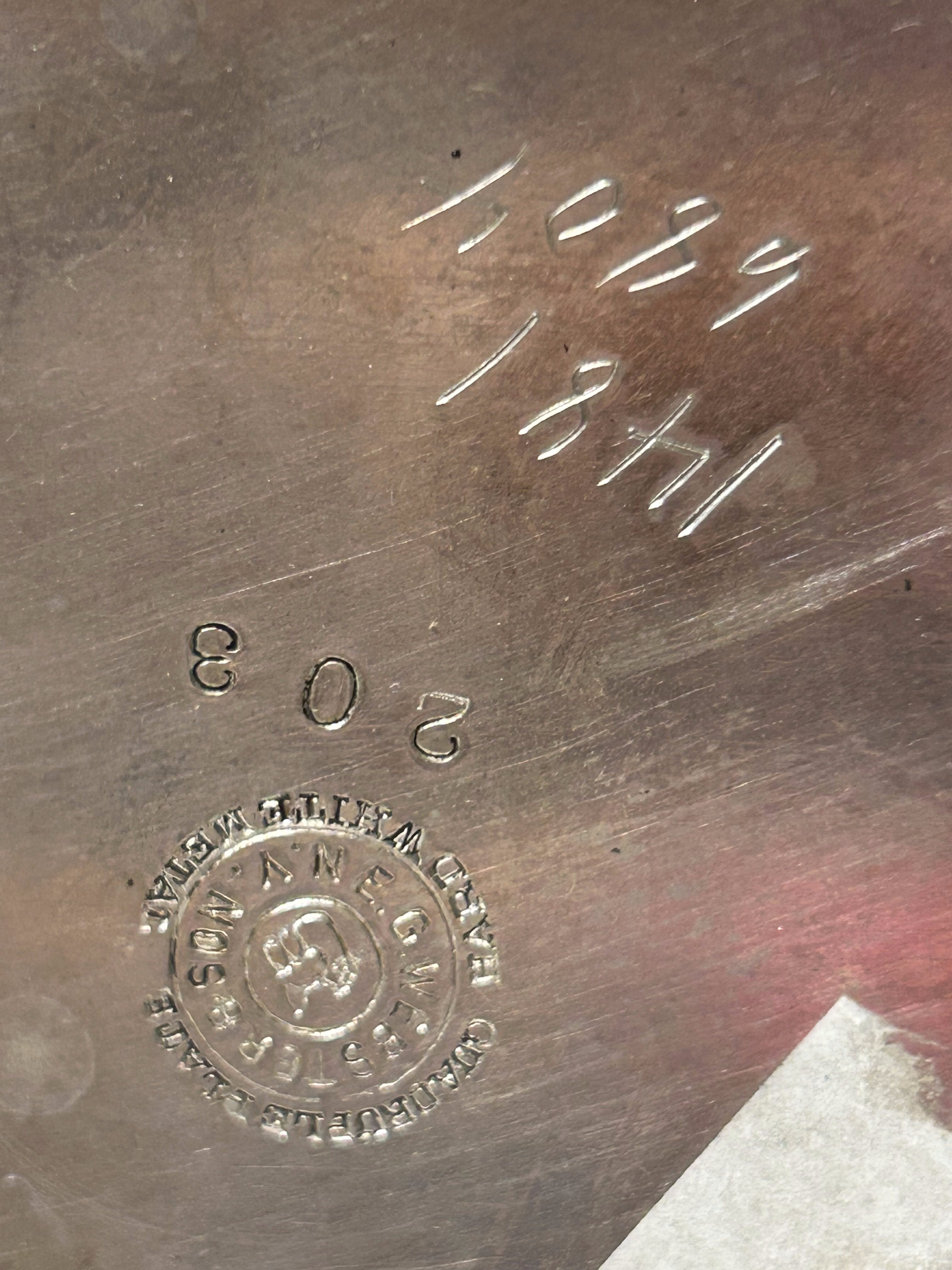 Formy są masywne, stabilne i niezwykle reprezentacyjne. Sygnowanie oraz oznaczenie próby potwierdzają jakość wykonania i nadają zestawowi charakter kolekcjonerski. To komplet, który doskonale odnajdzie się zarówno w eleganckich, klasycznych wnętrzach, jak i w bardziej eklektycznych aranżacjach, gdzie stanie się mocnym akcentem dekoracyjnym.