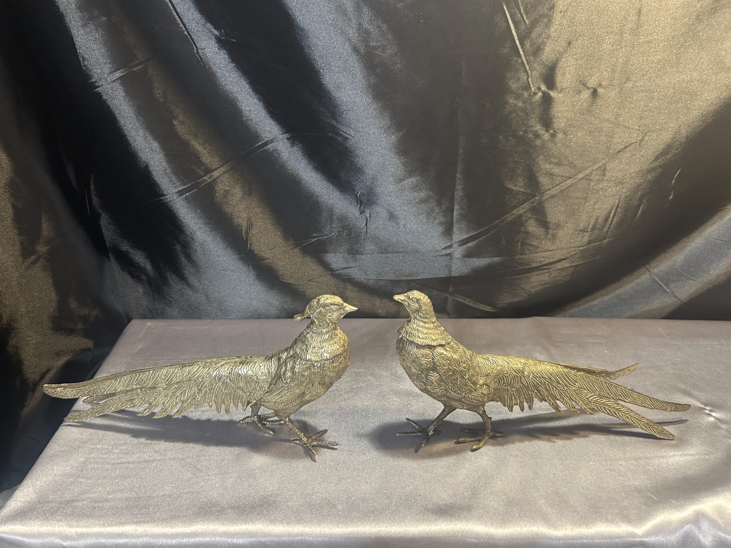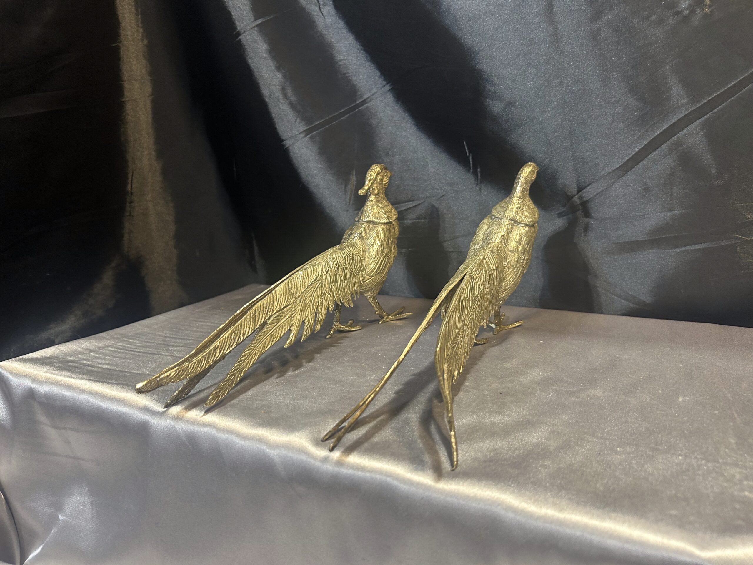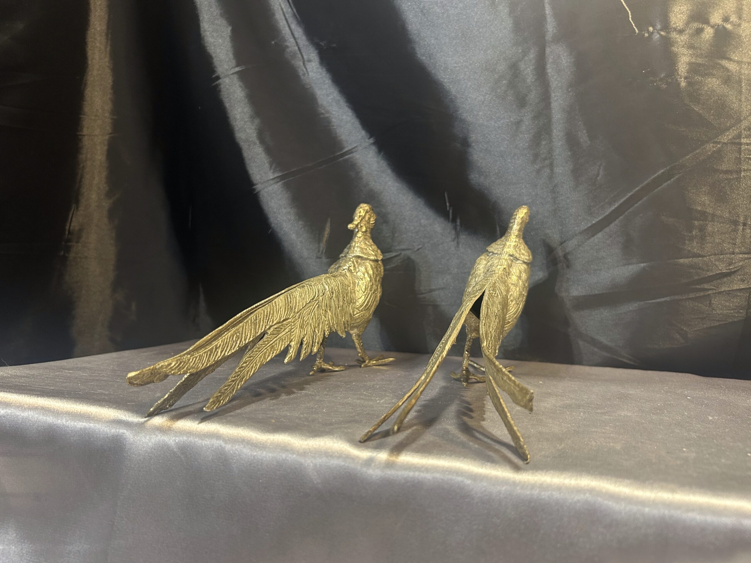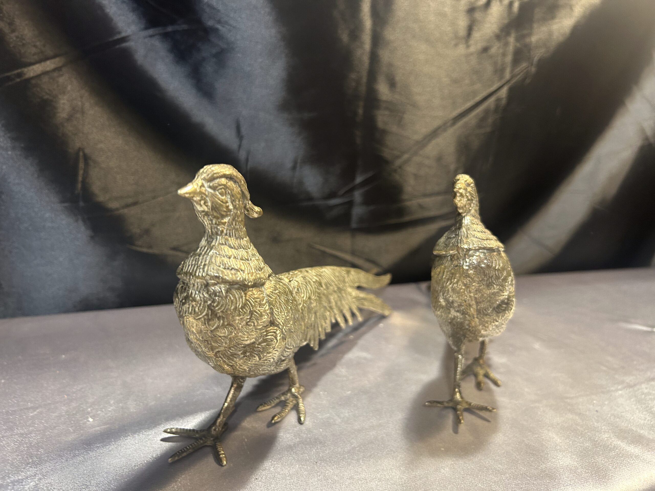 Zestaw Dwóch Ptaków z Mosiądzu Pobiał – Kogut i Kurka z Długimi Ogonami