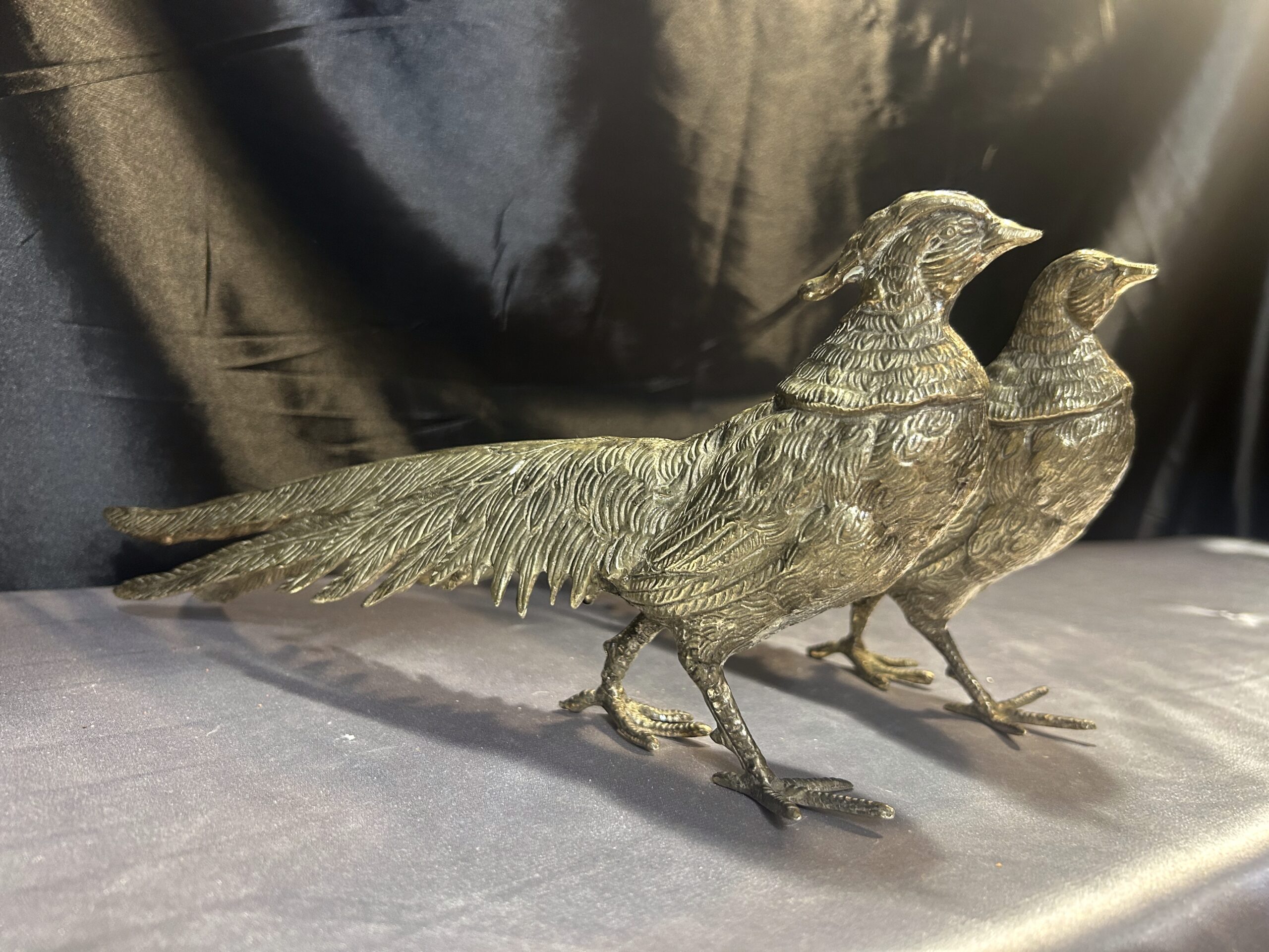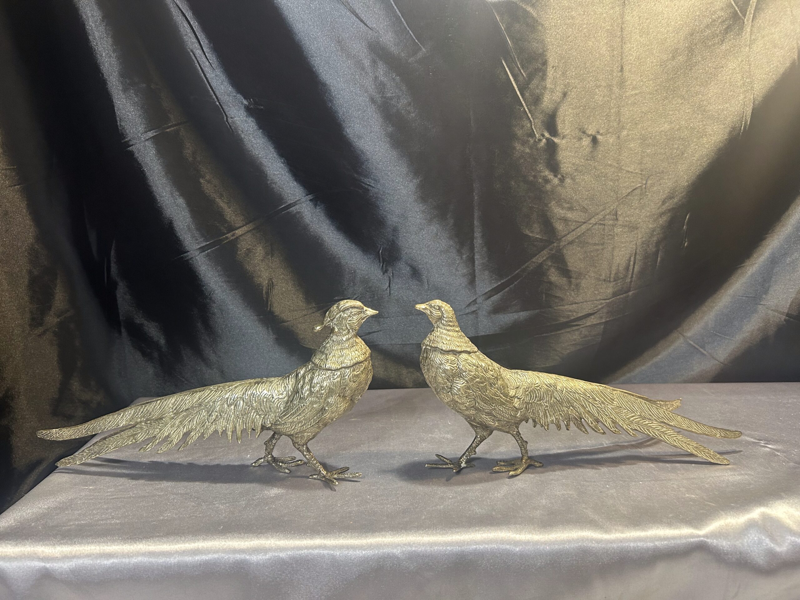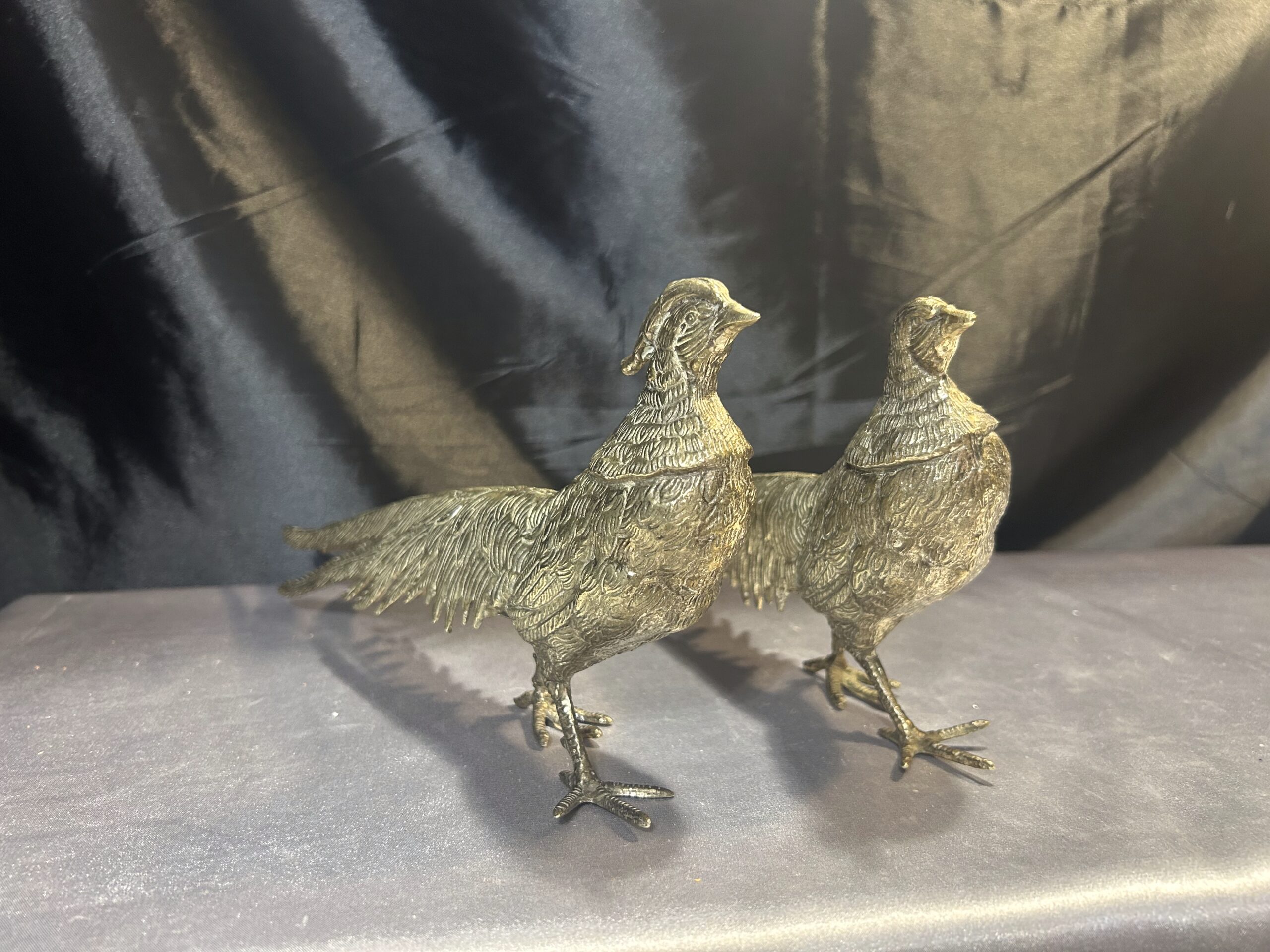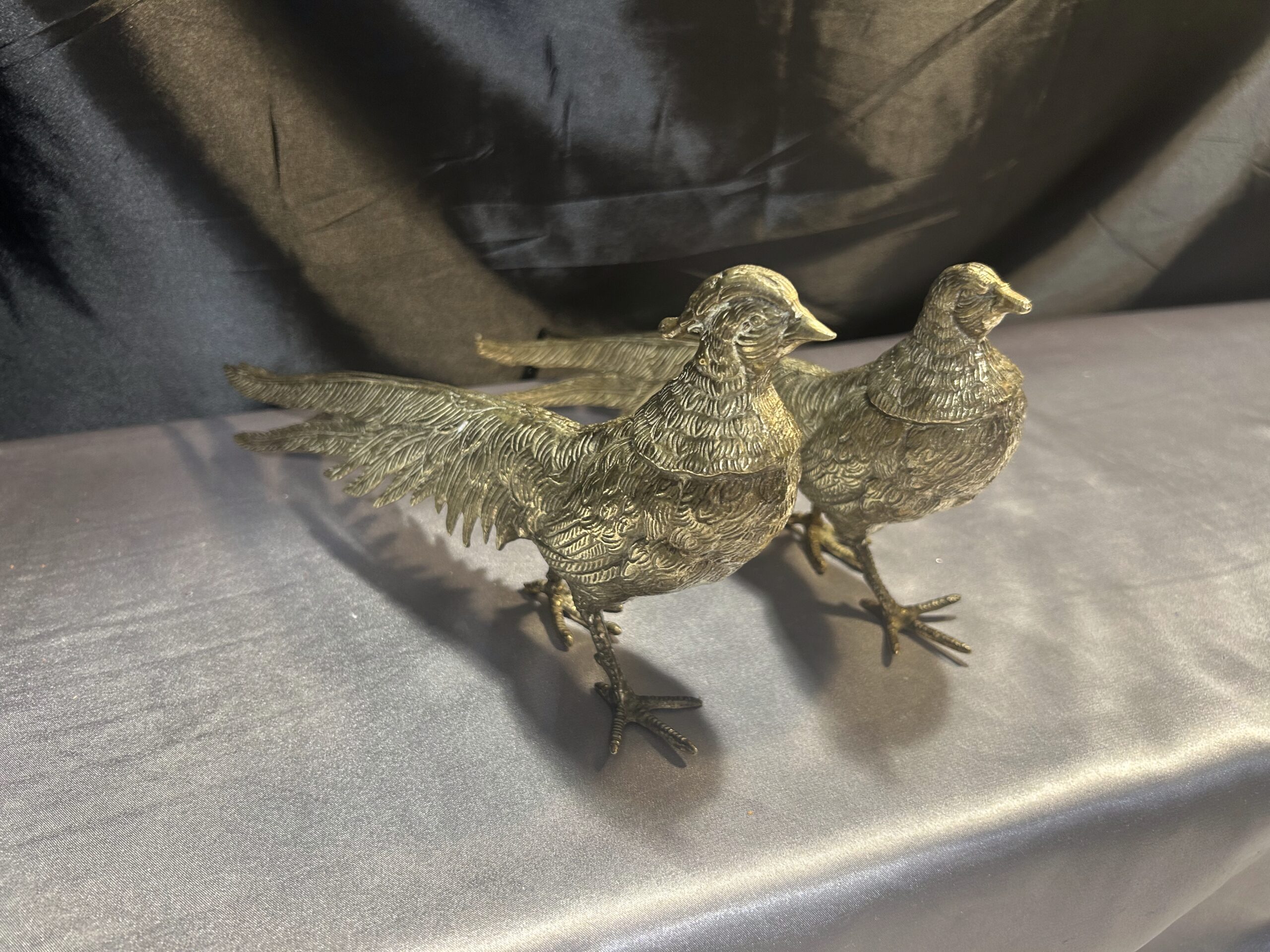 Zestaw Dwóch Ptaków z Mosiądzu Pobiał – Kogut i Kurka z Długimi Ogonami