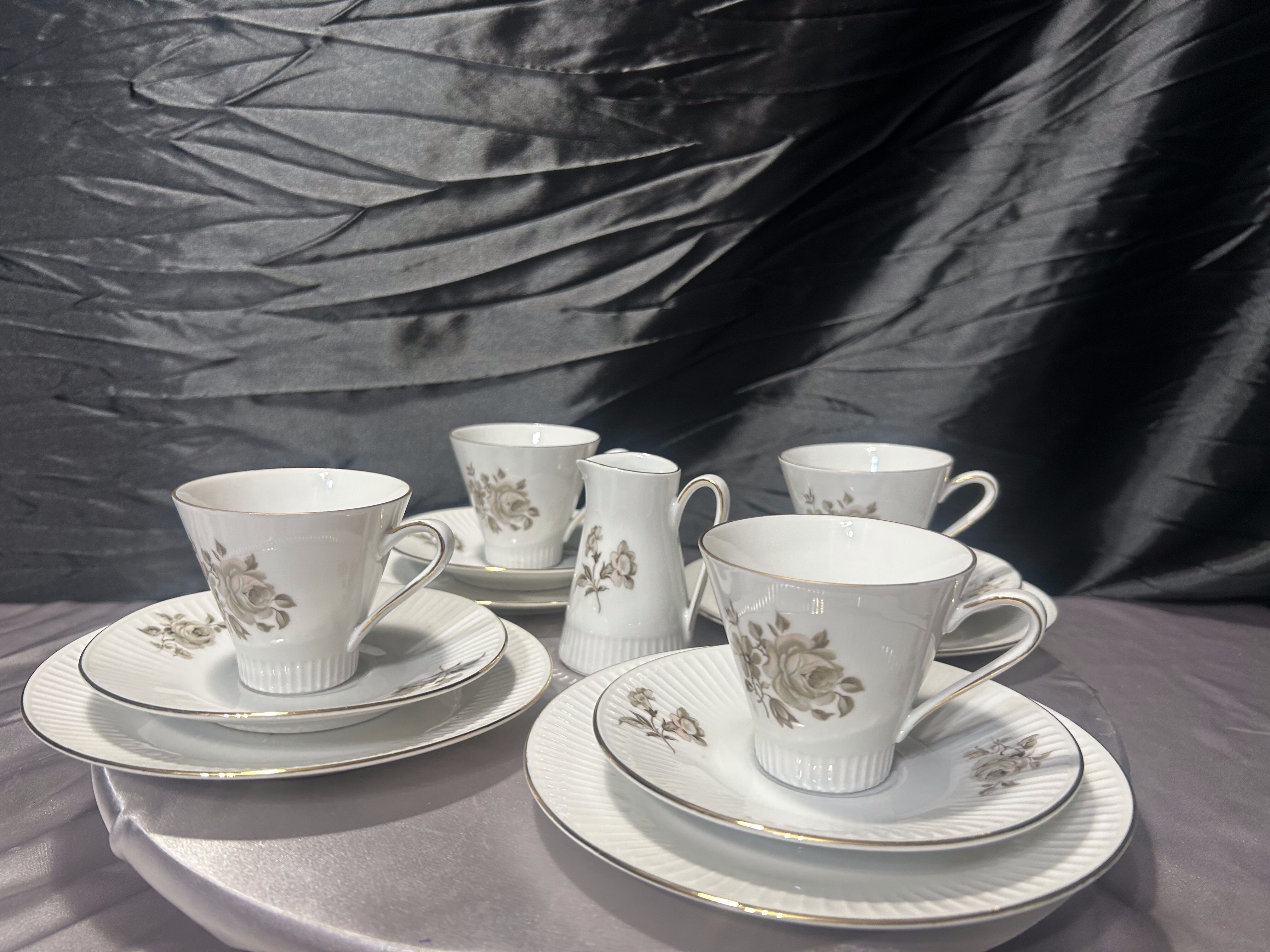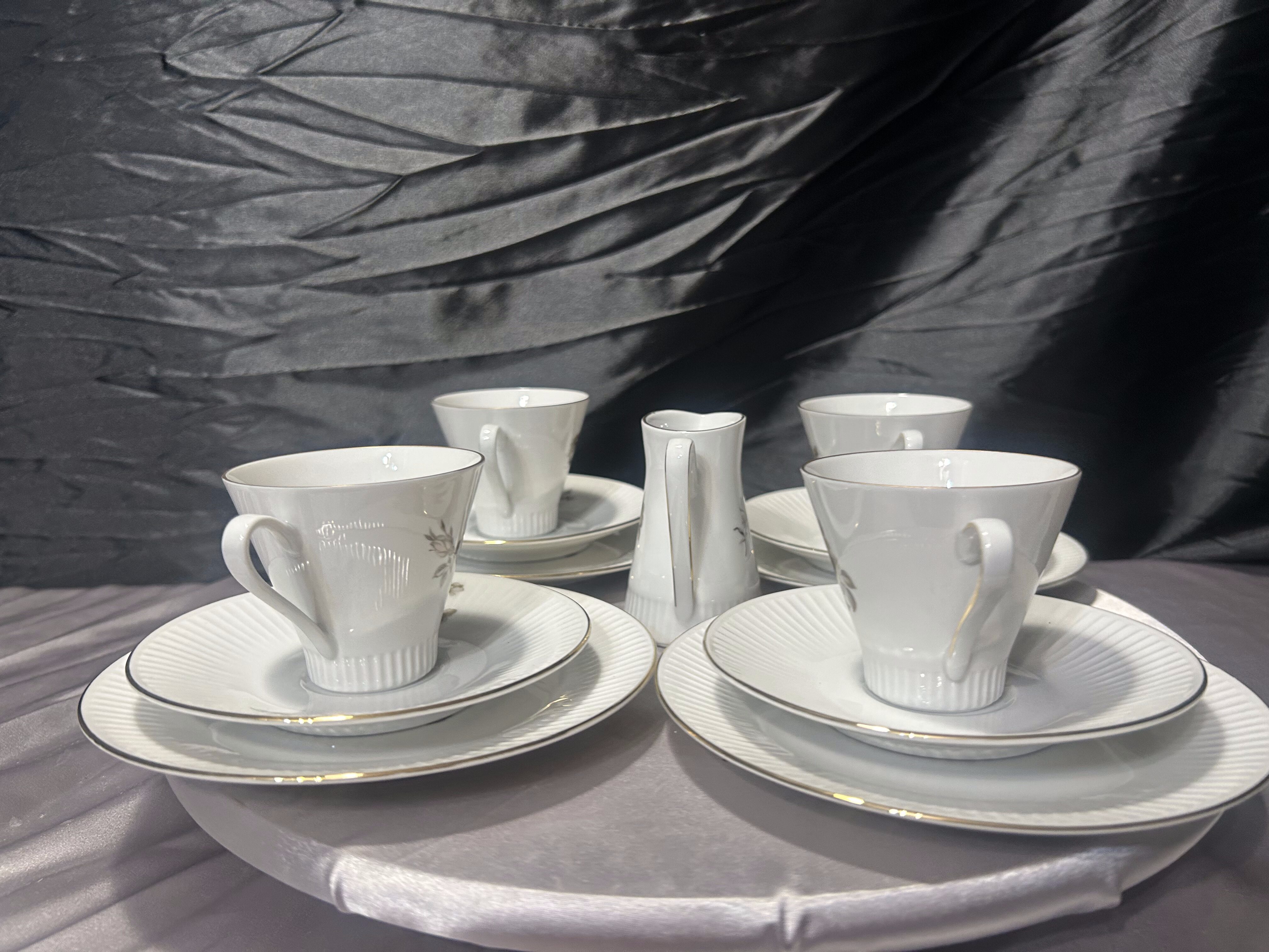 - Zestaw filiżanek trio Eschenbach Bavaria z mlecznikiem – porcelana niemiecka – klasyczna elegancja