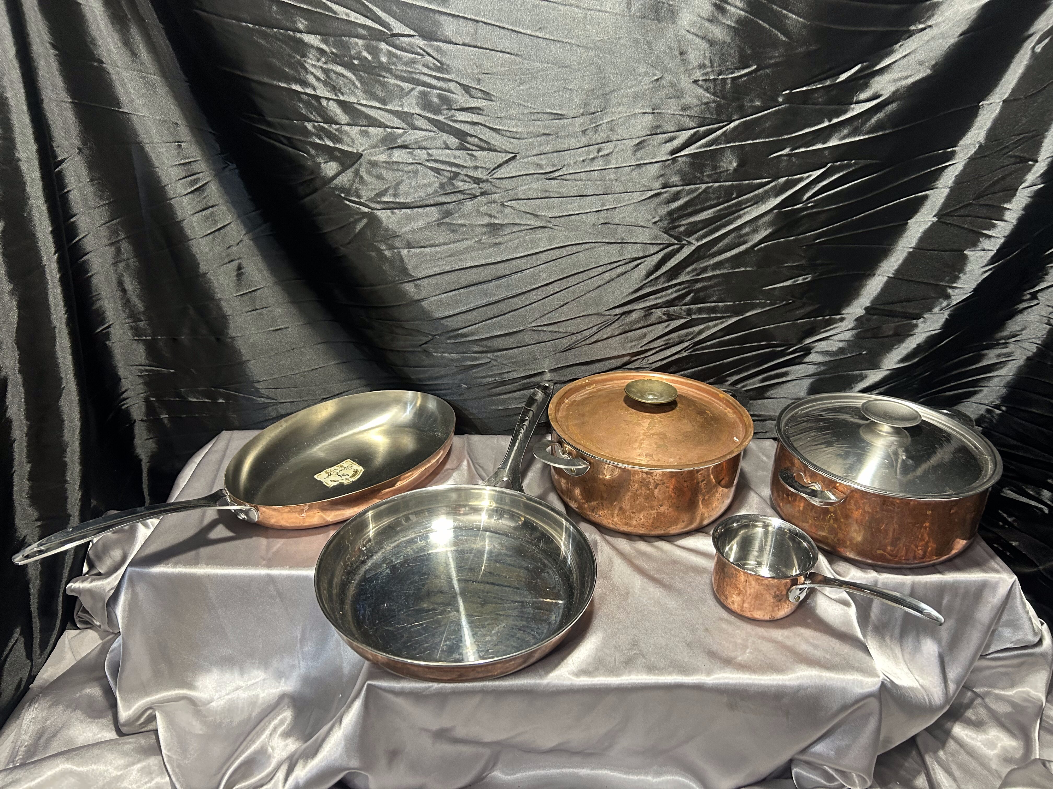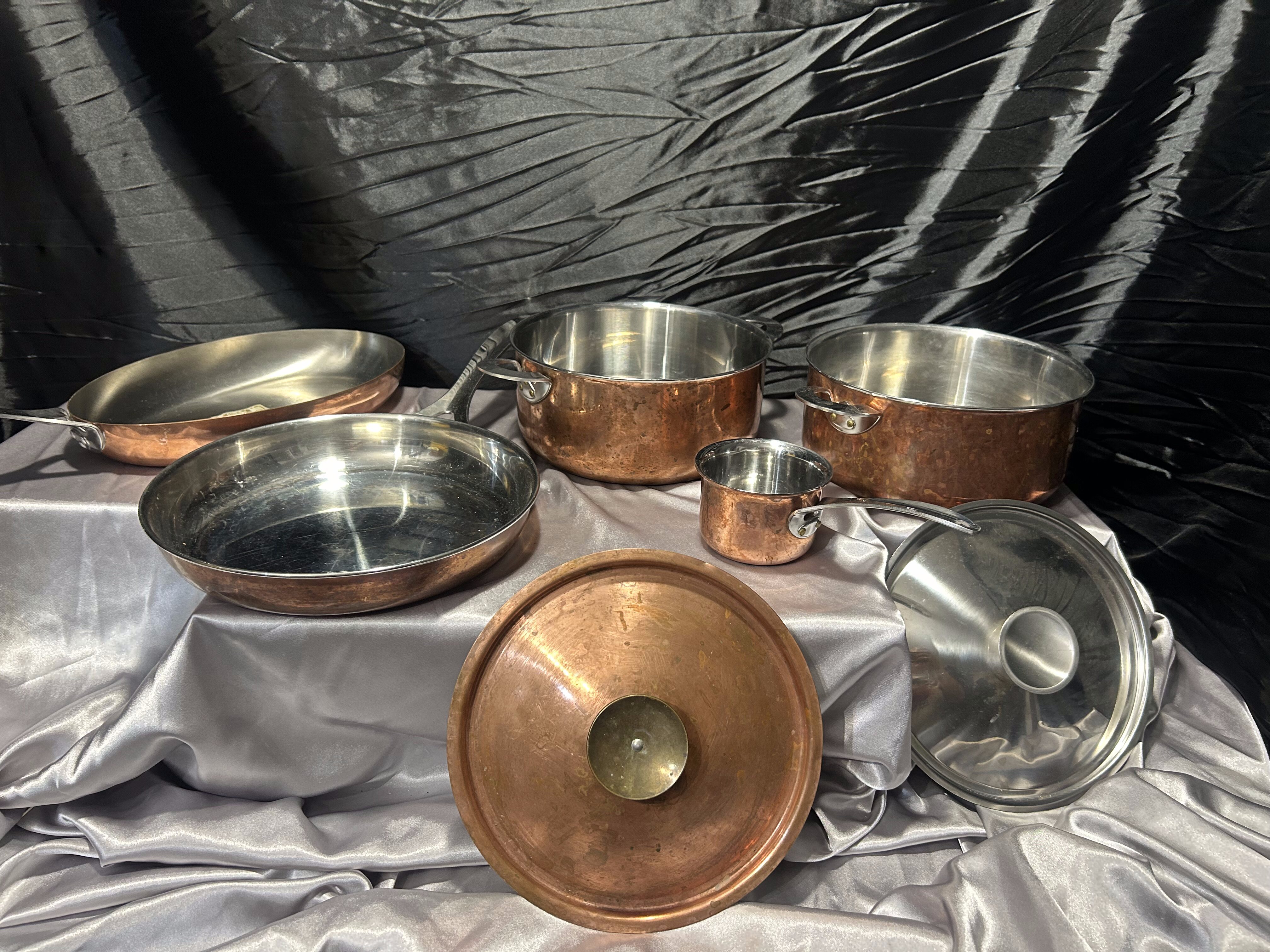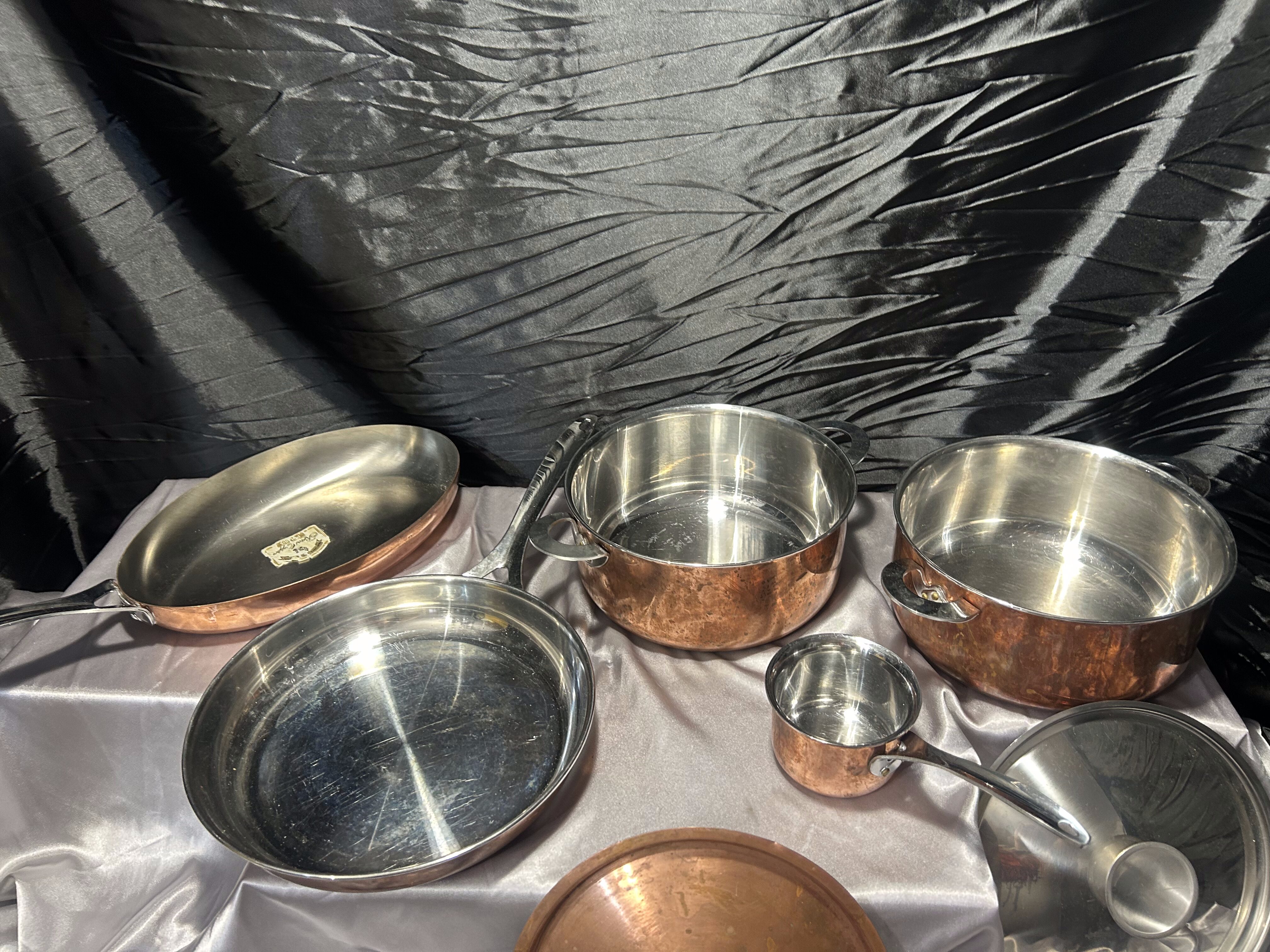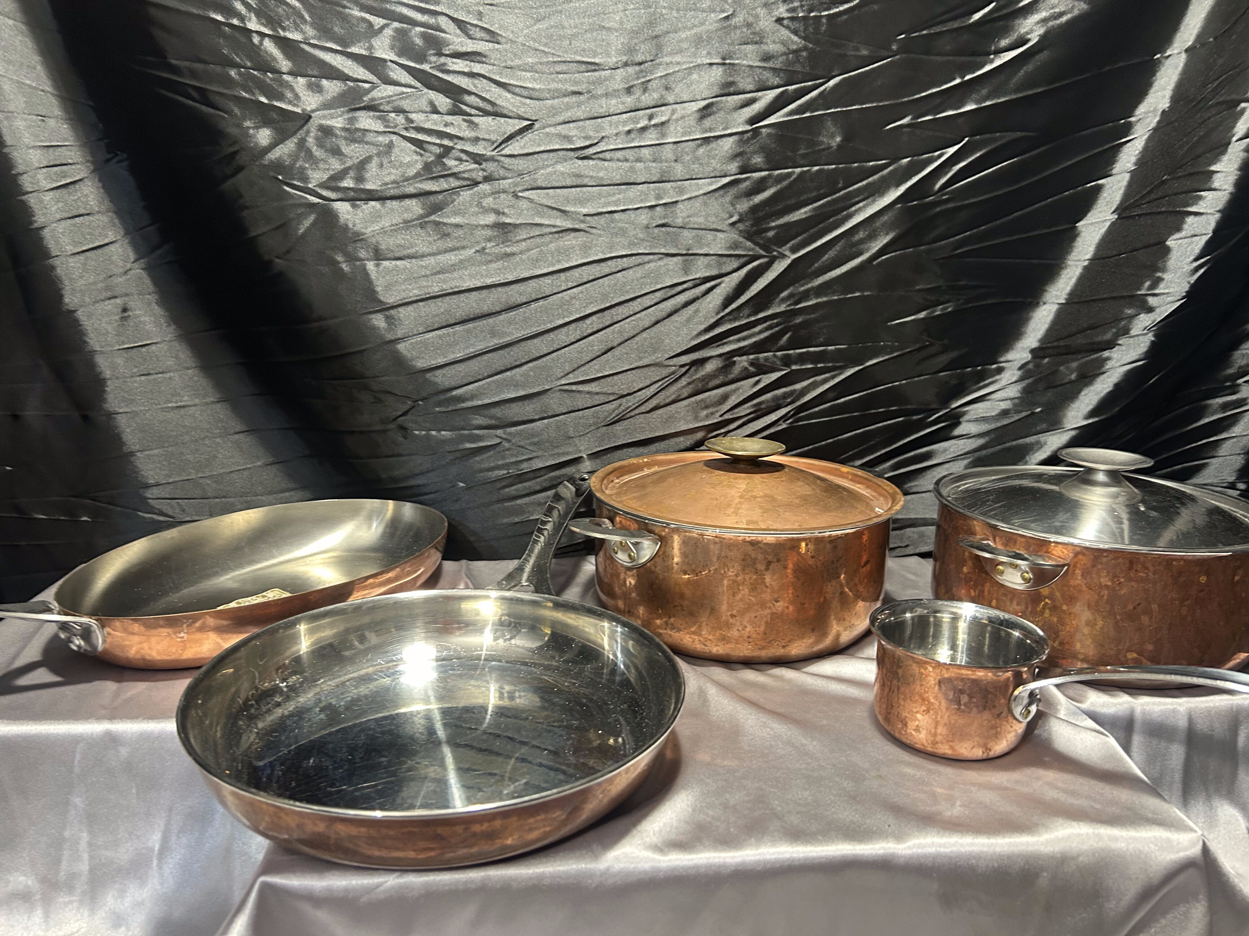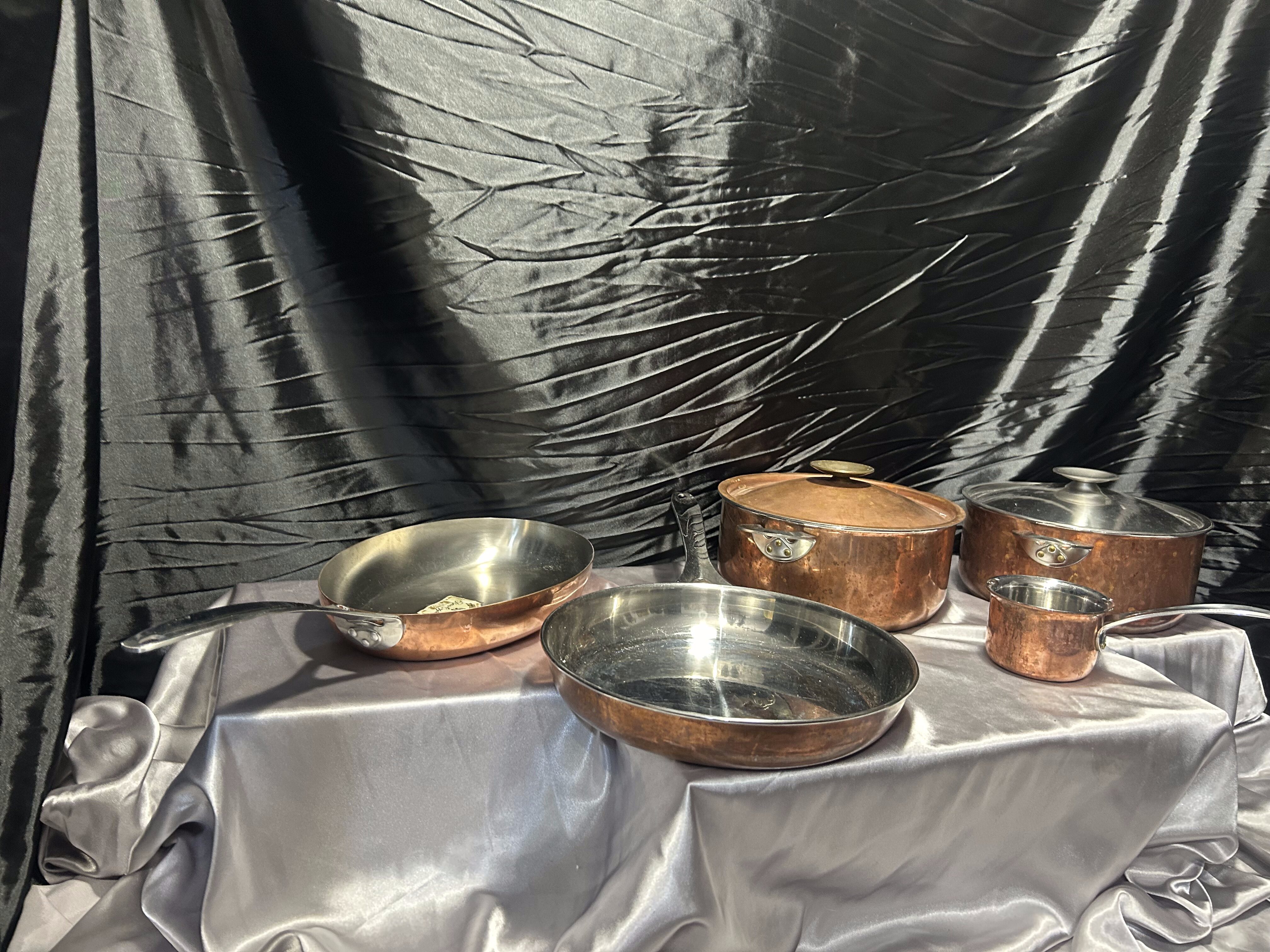 Zestaw garnków i patelni miedzianych Polaris – sygnowany komplet kuchenny – klasyka rzemiosła