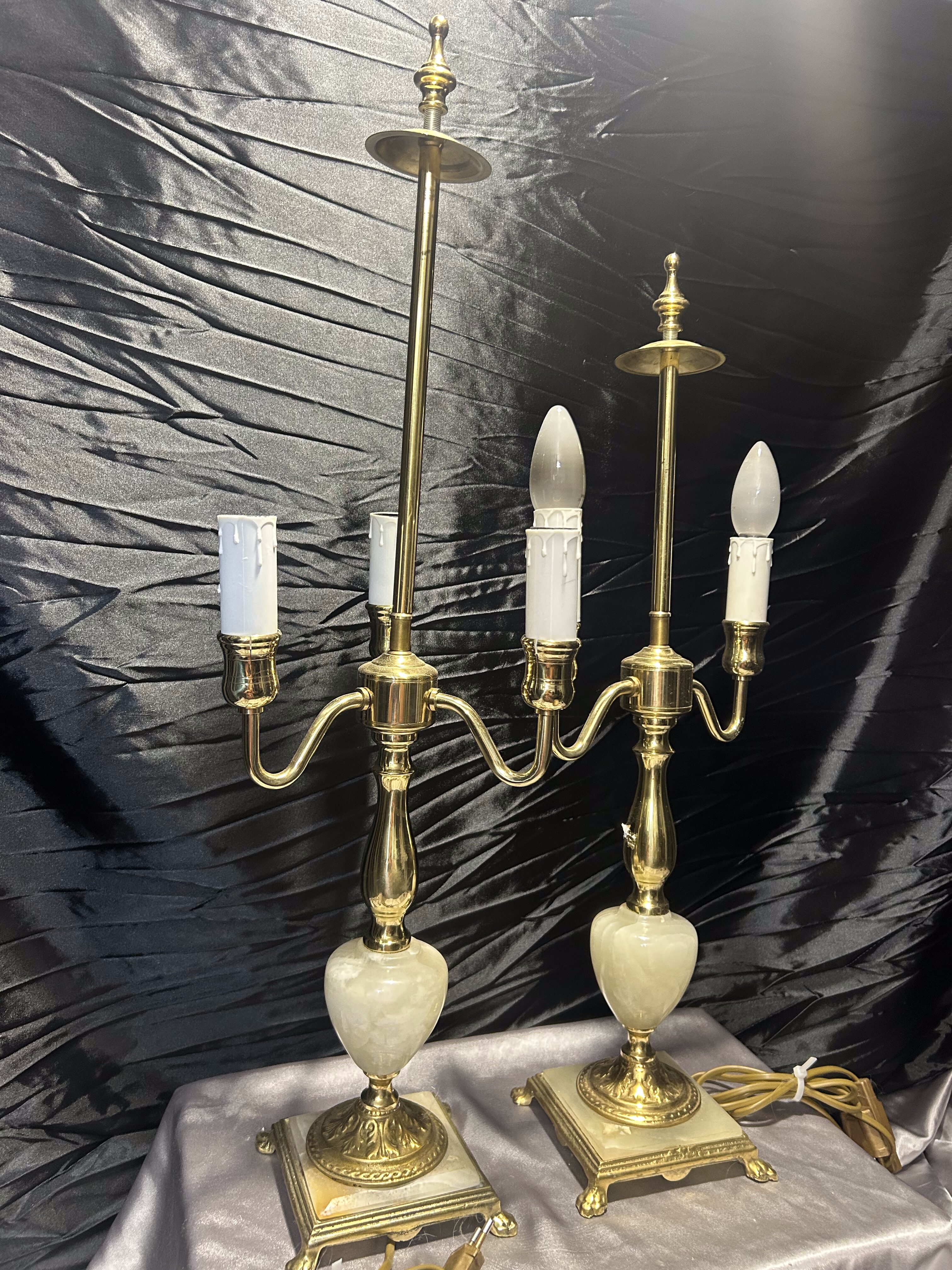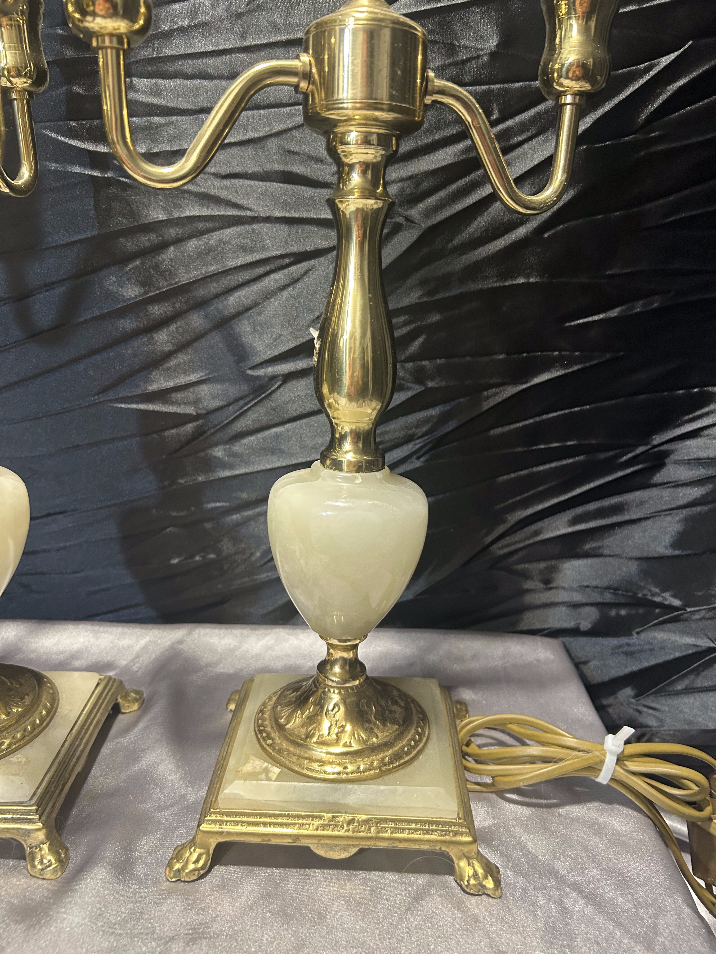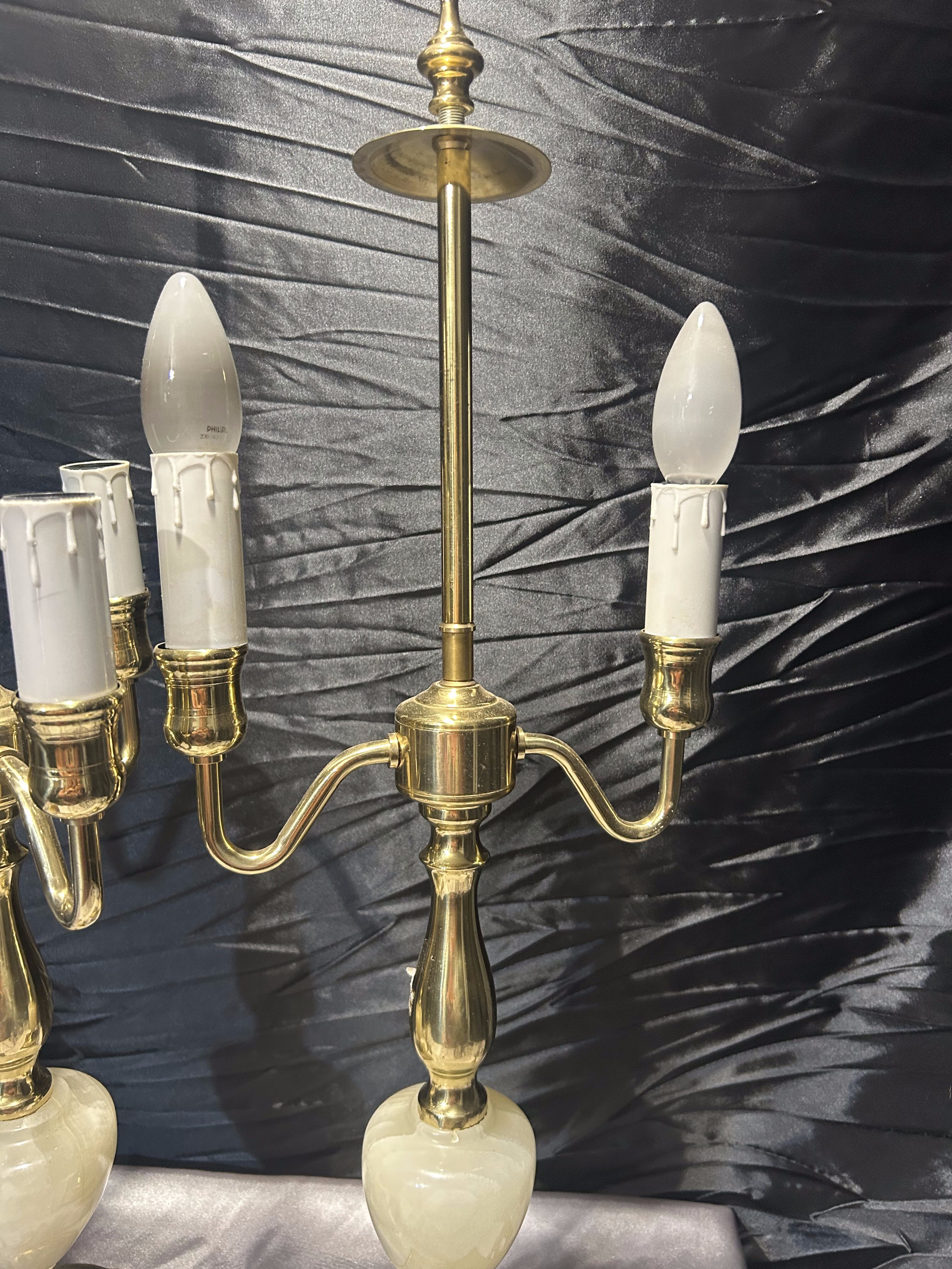 Zestaw lamp mosiężnych z onyksu – klasyczne oświetlenie w stylu vintage – komplet 2 sztuki
