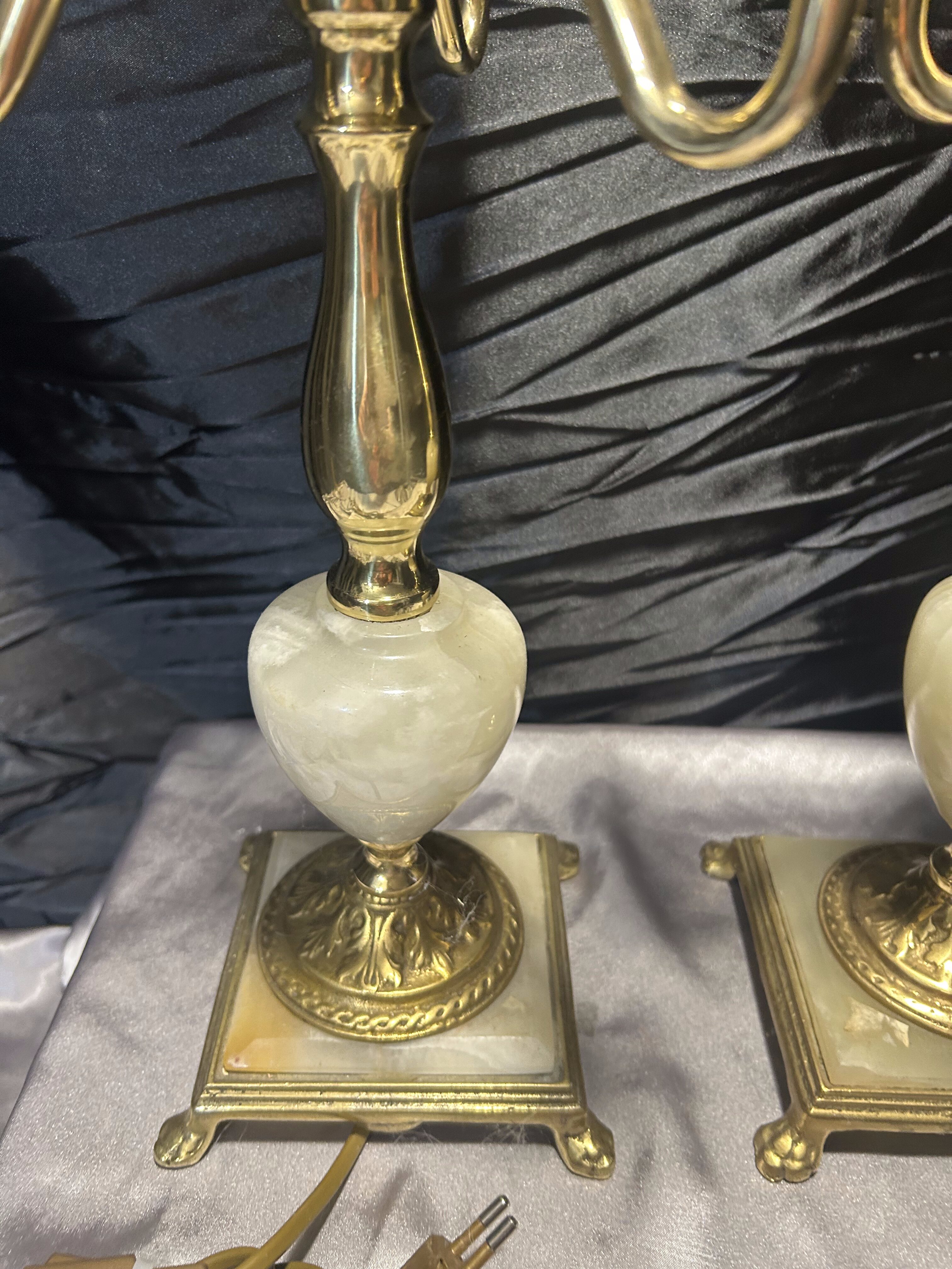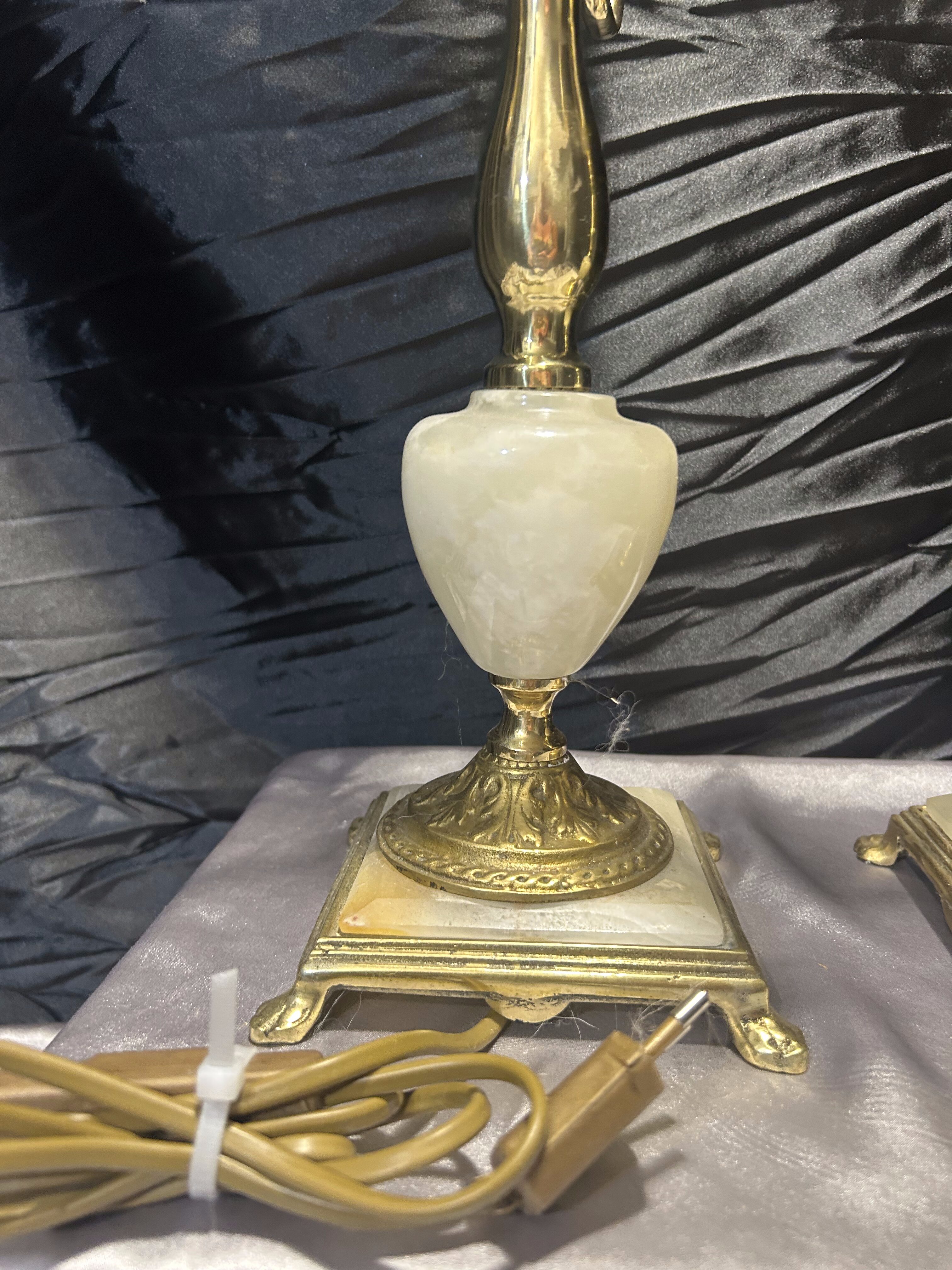 - Zestaw lamp mosiężnych z onyksu – klasyczne oświetlenie w stylu vintage – komplet 2 sztuki