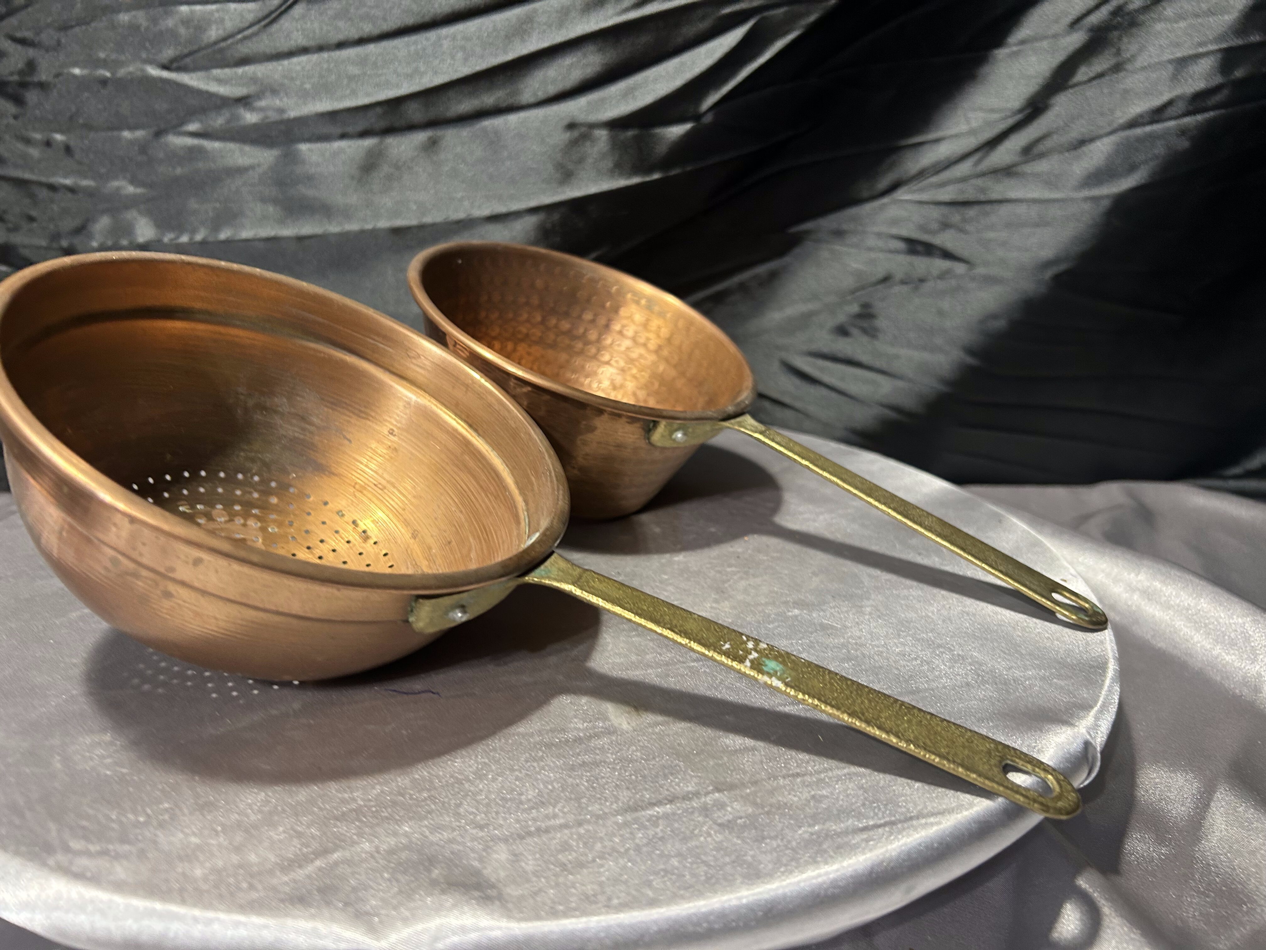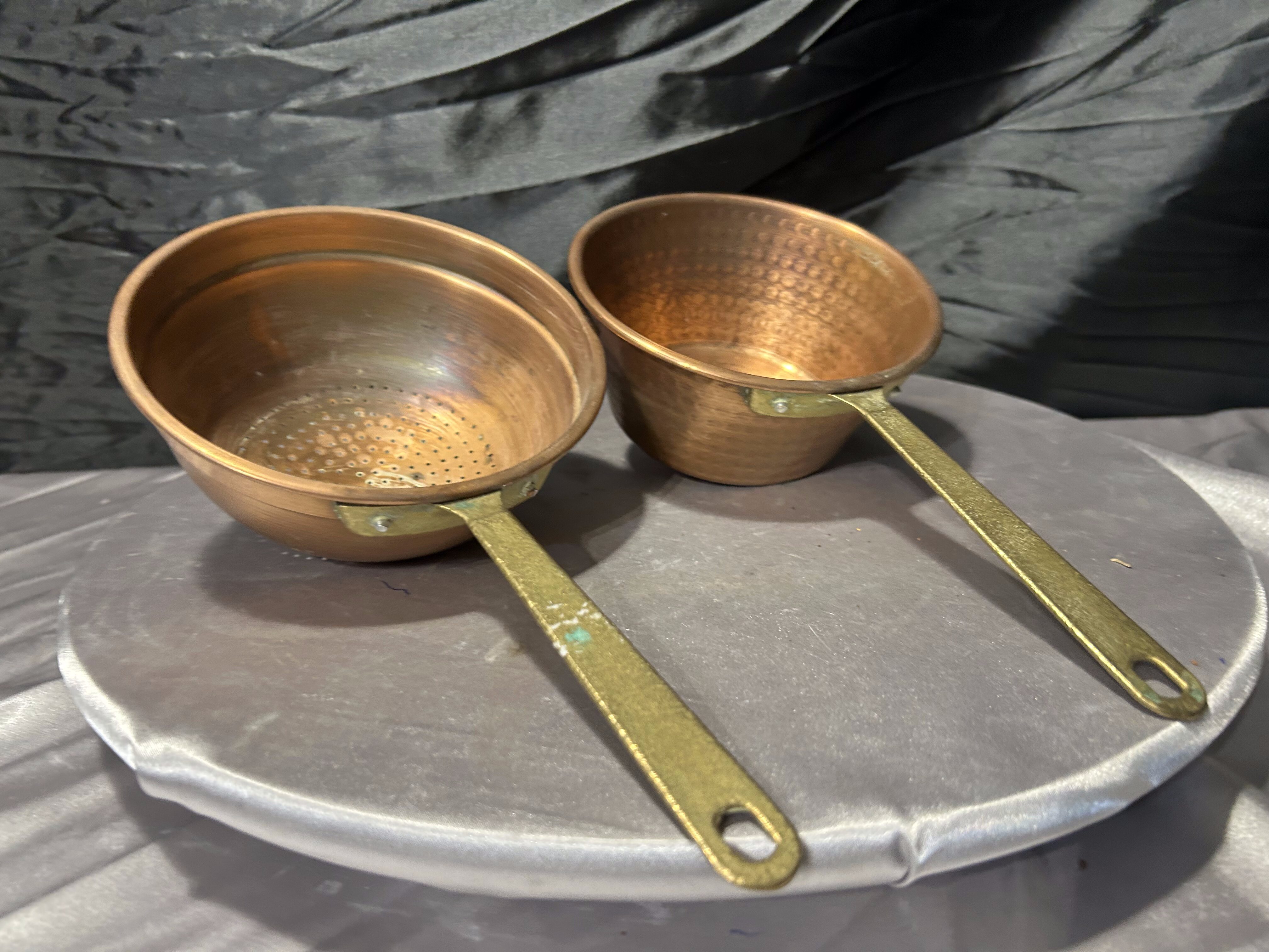 - Zestaw miedzianych naczyń kuchennych – łyżka cedzakowa i chochla