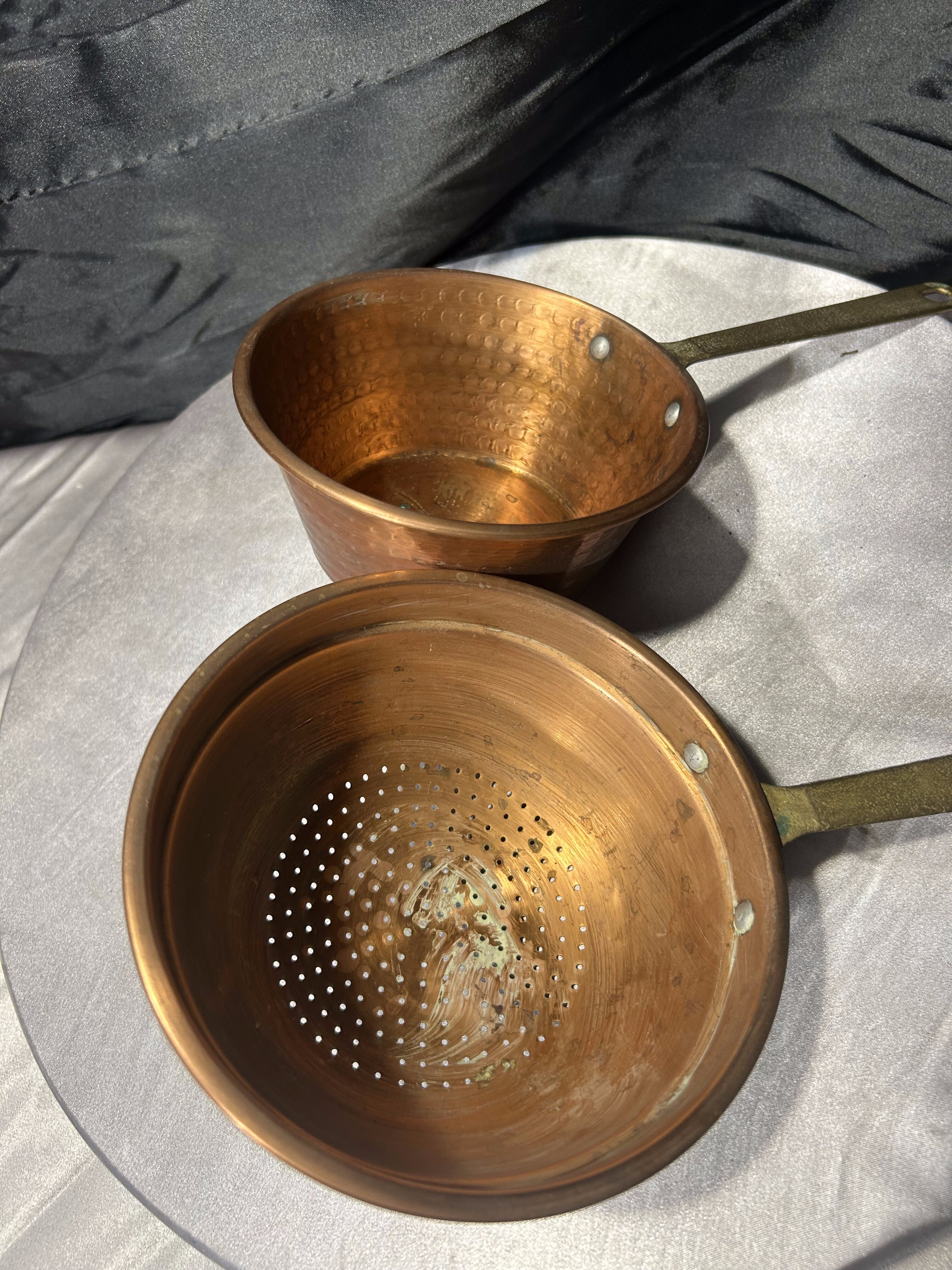 Zestaw miedzianych naczyń kuchennych – łyżka cedzakowa i chochla