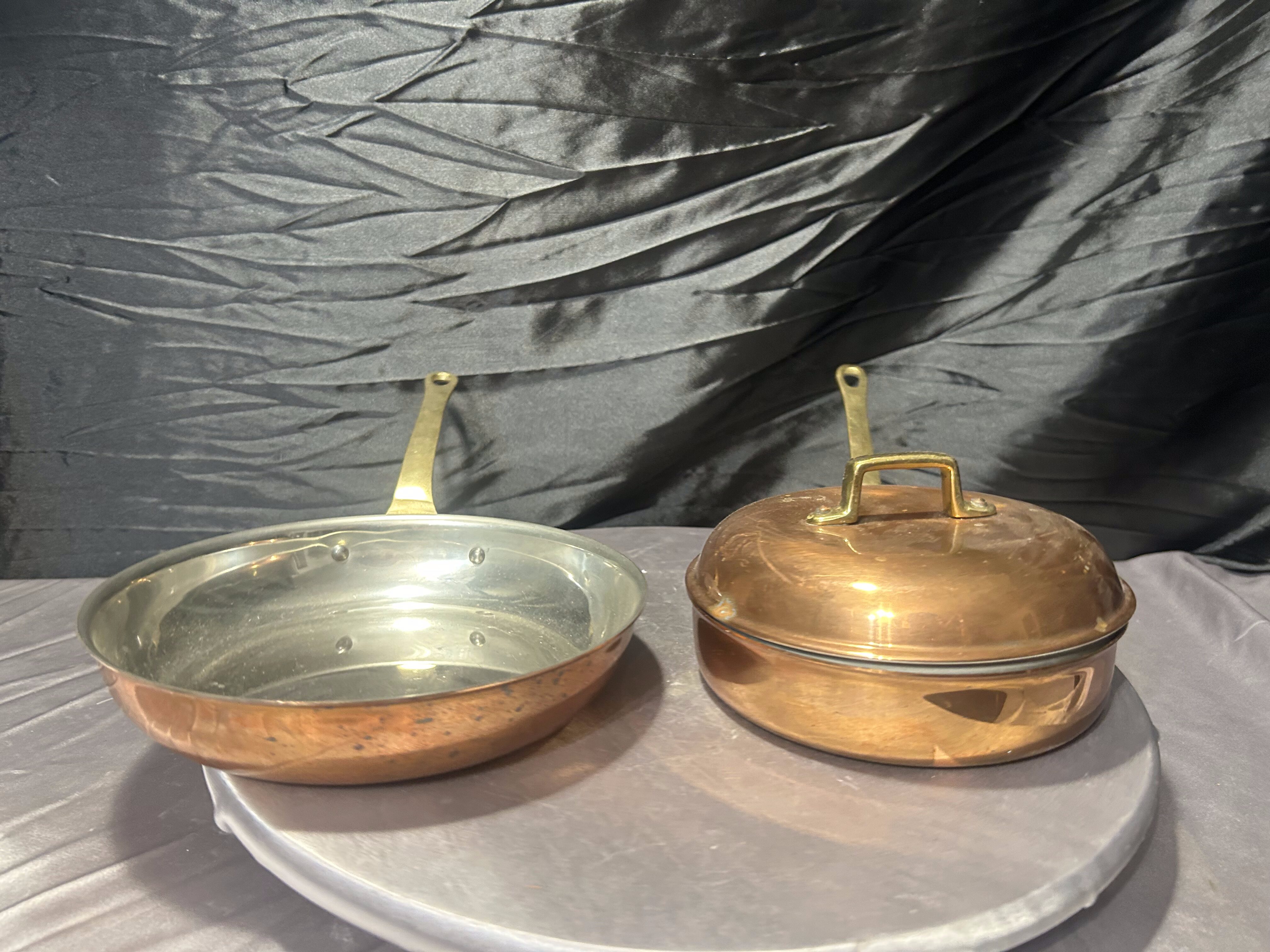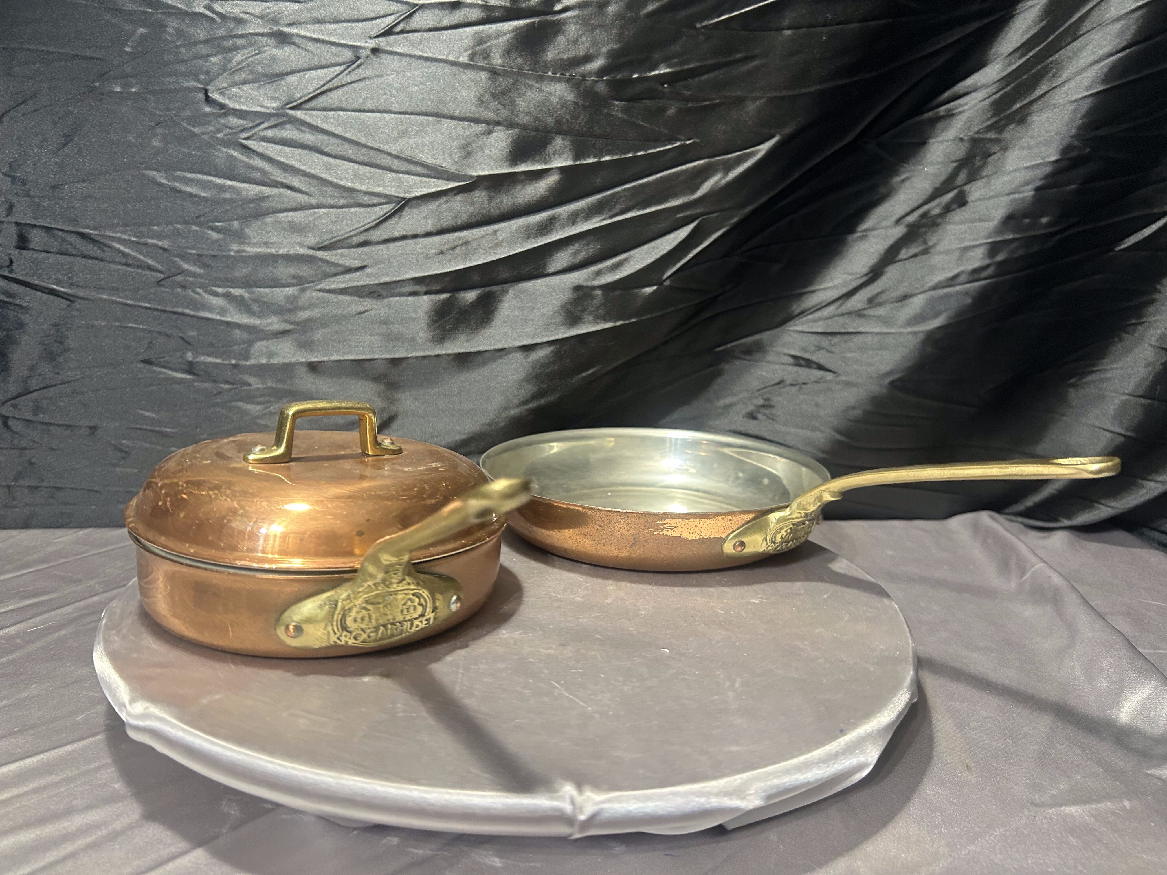 Zestaw miedzianych patelni Krogarhuset z pokrywką – profesjonalna miedź