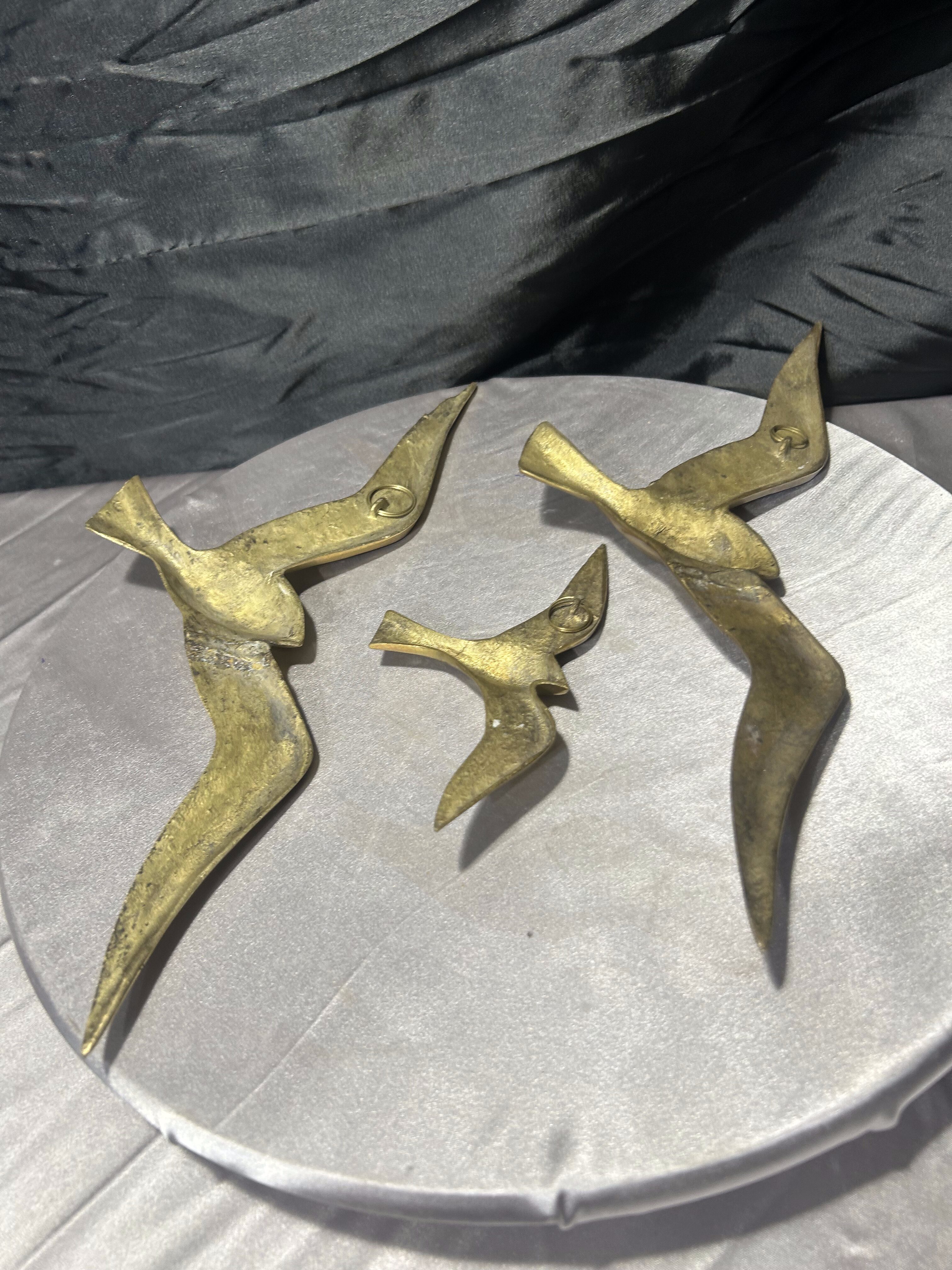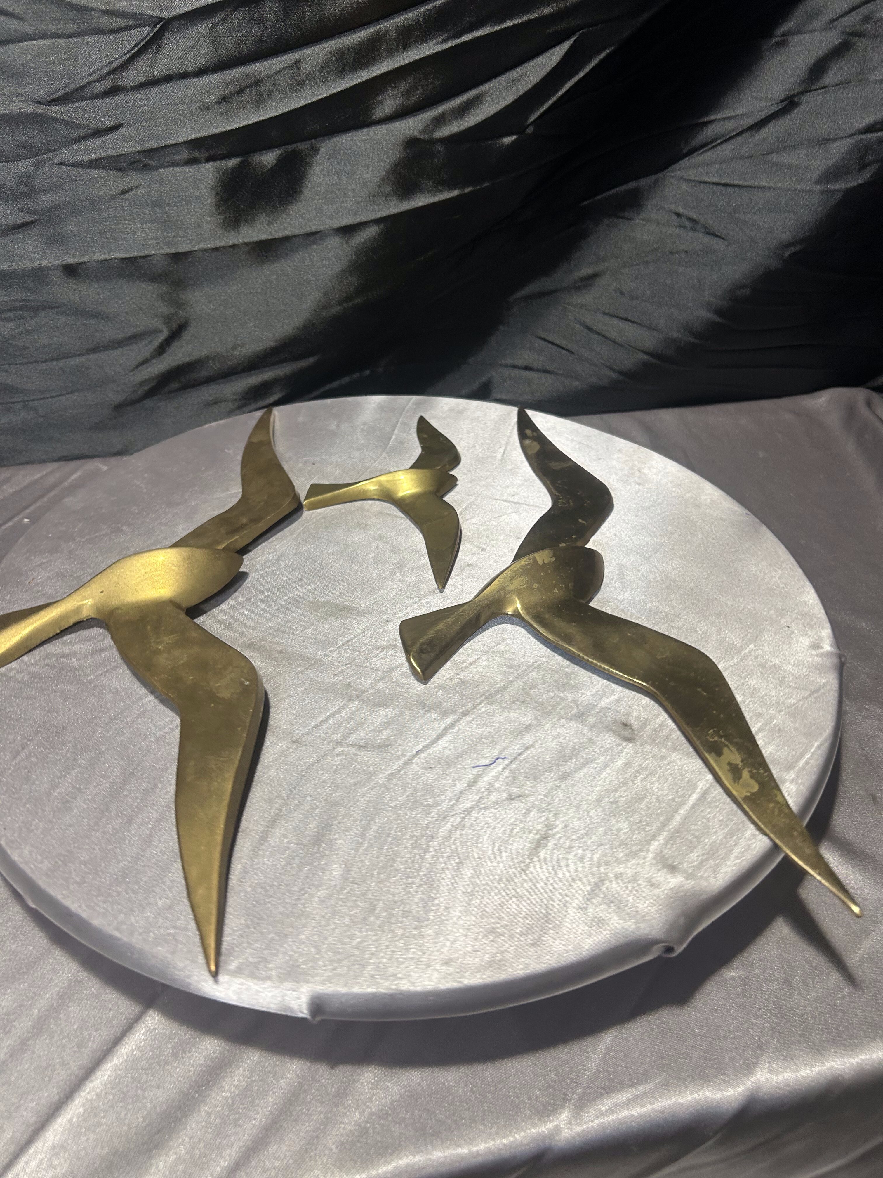 Zestaw mosiężnych ptaków na ścianę – dekoracja marynistyczna – 3 szt.