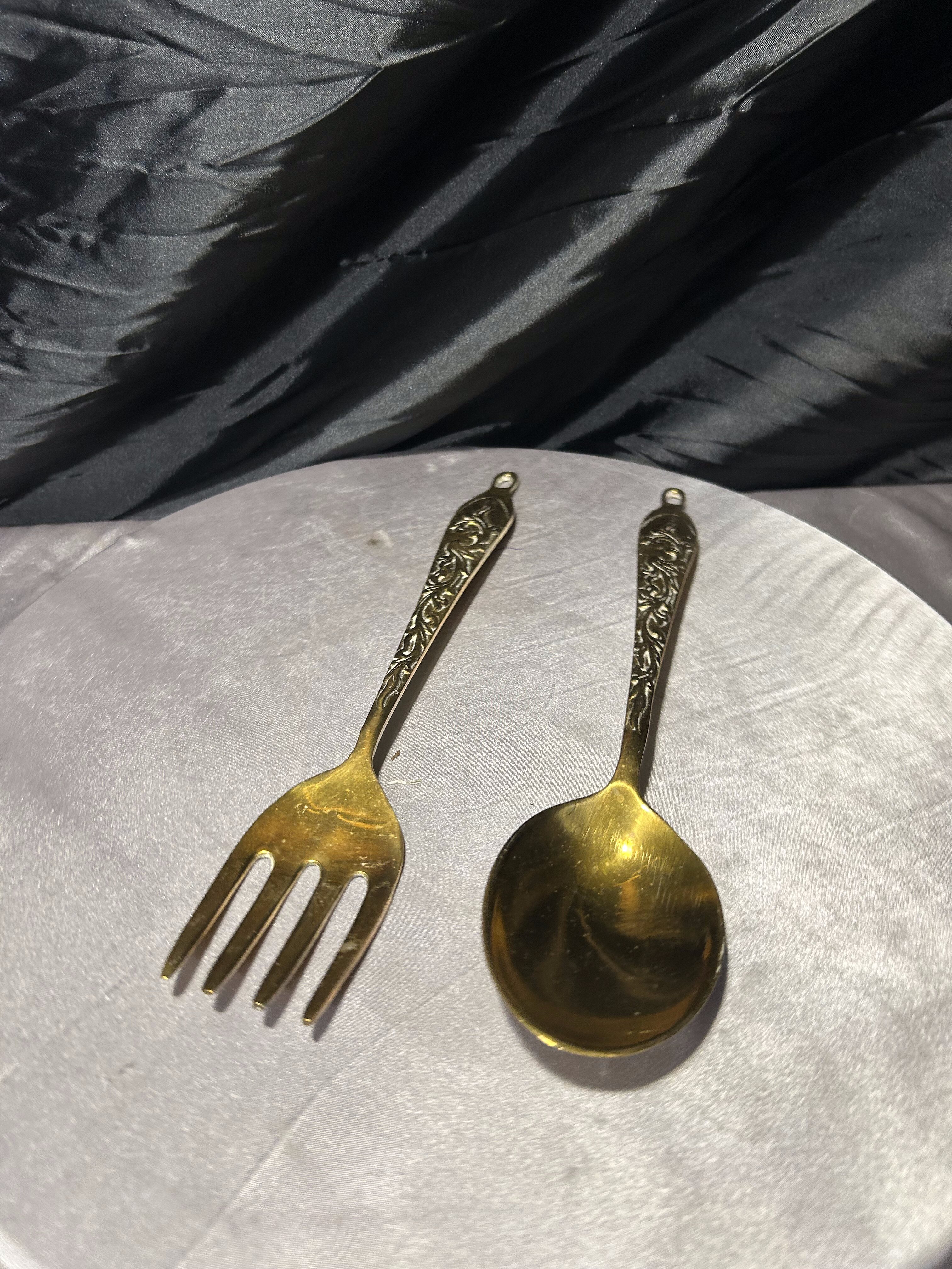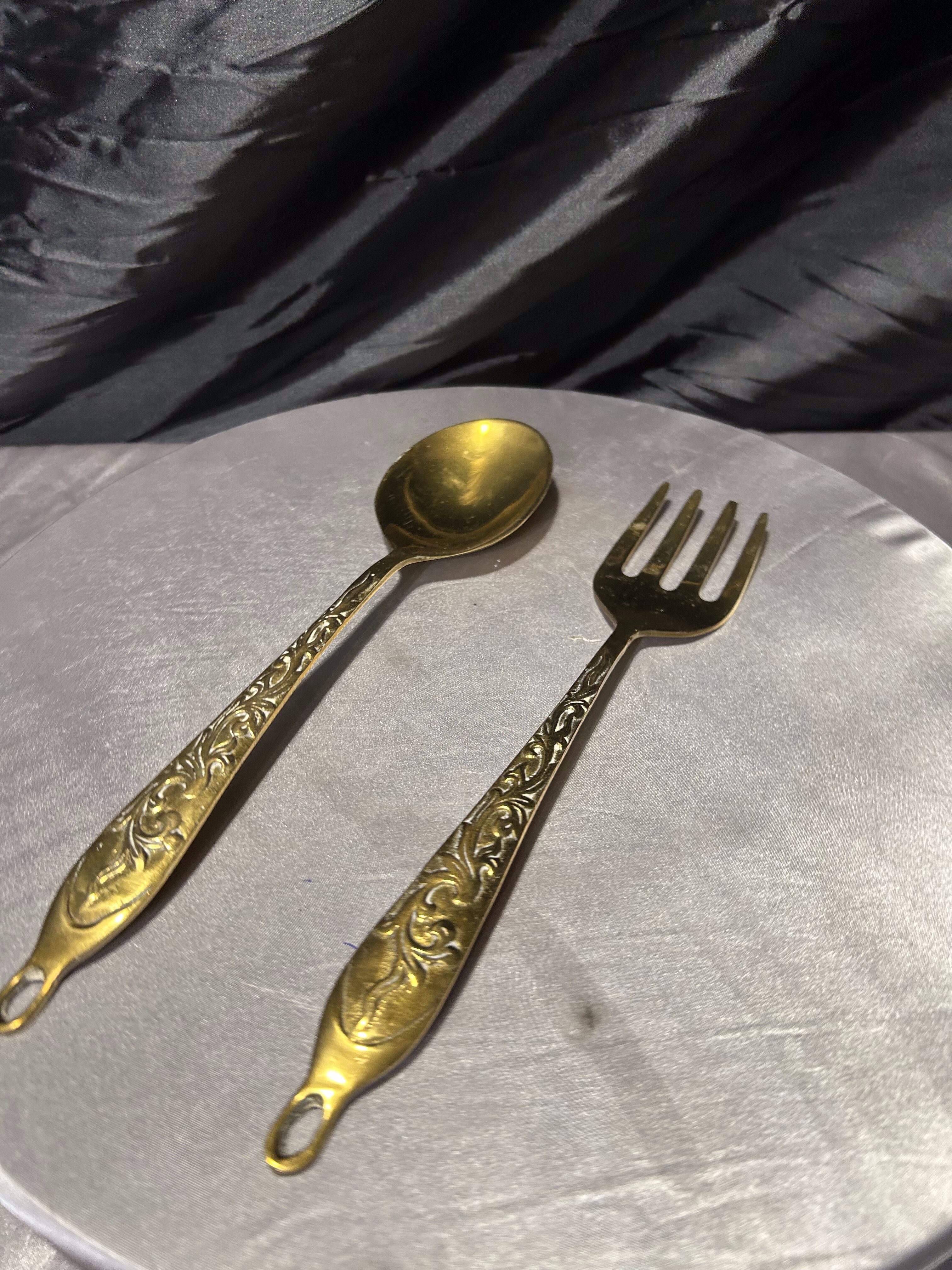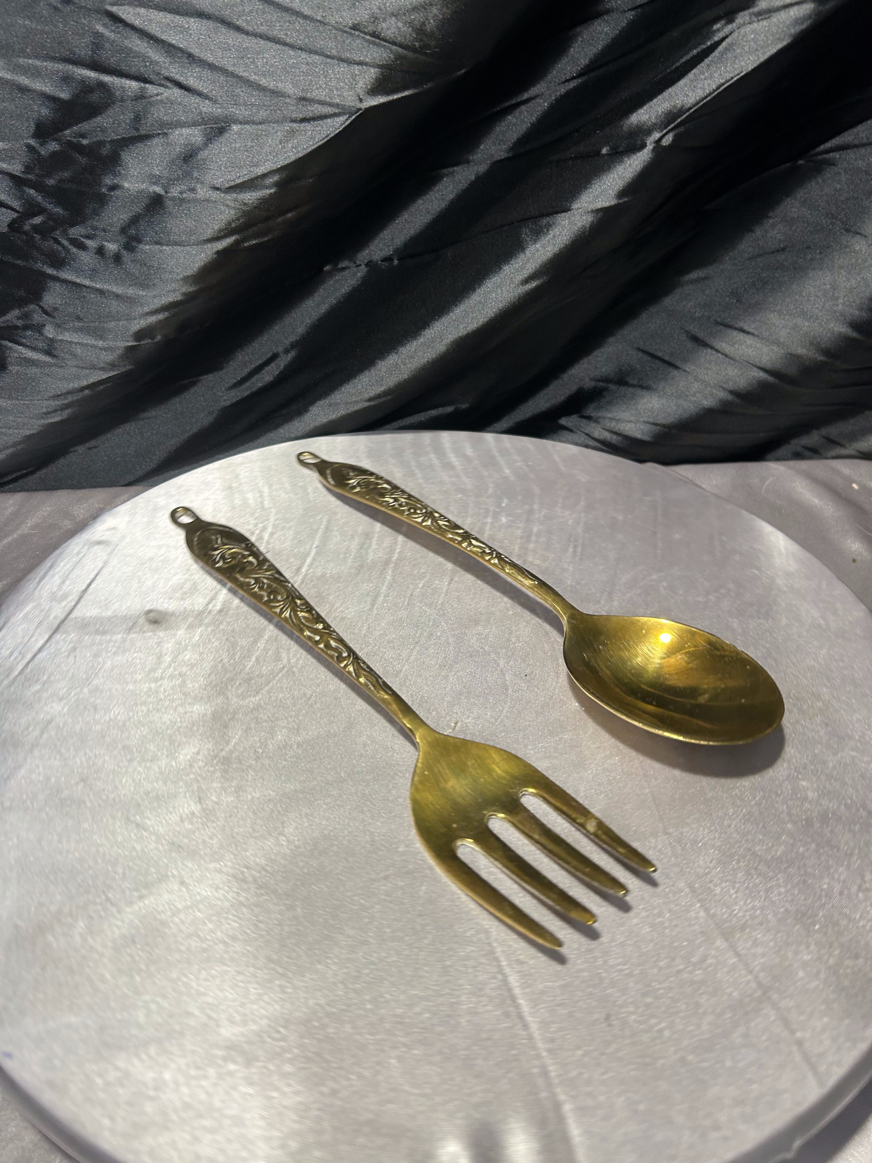 Zestaw ozdobny z mosiądzu – dekoracyjny widelec i łyżka – kunsztowne, ręcznie zdobione