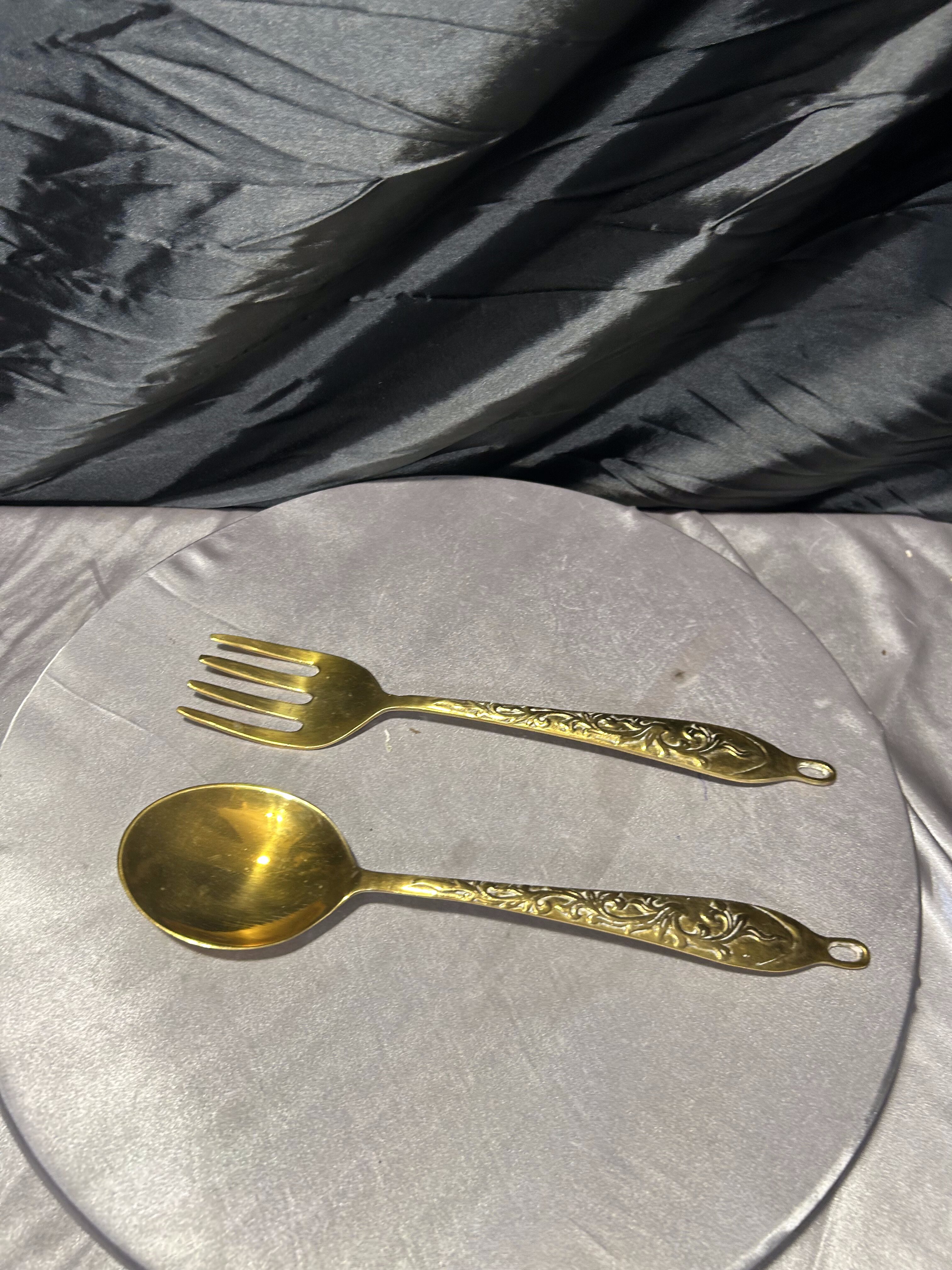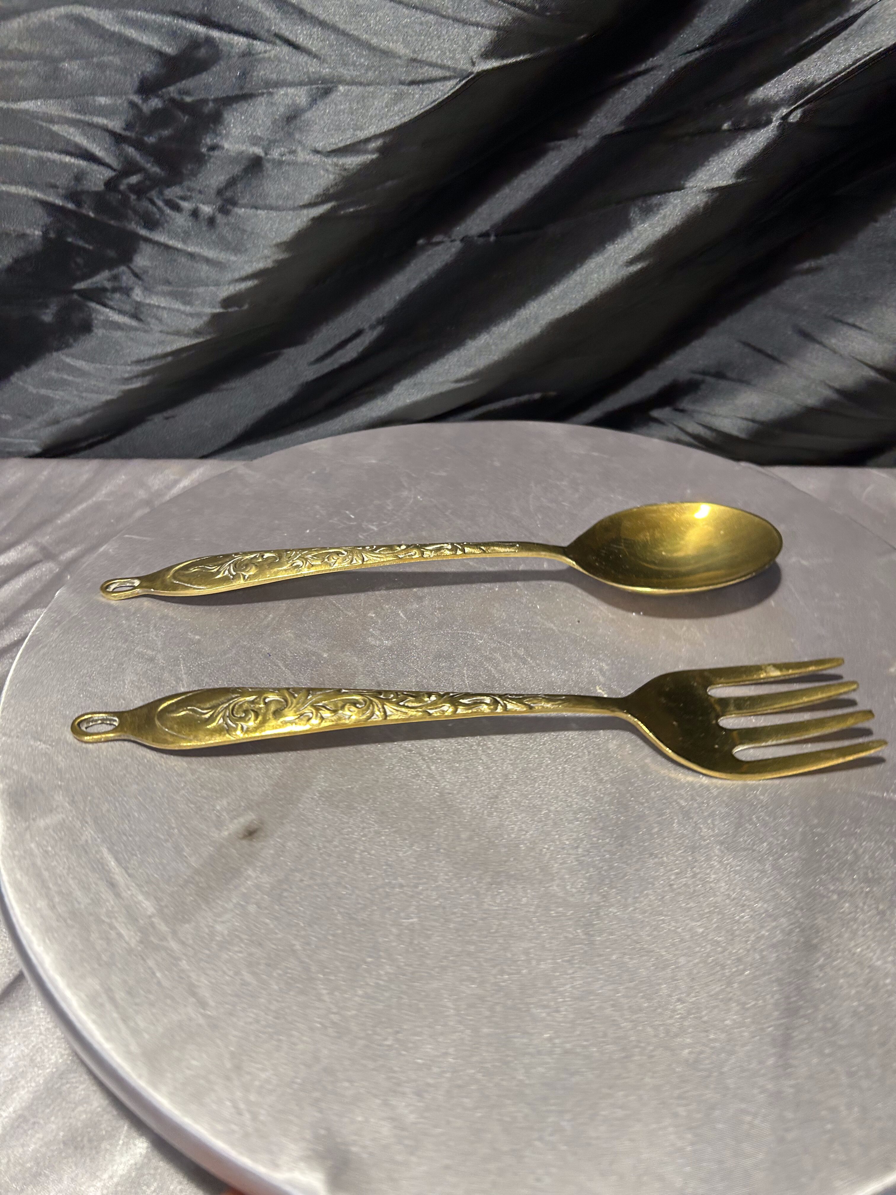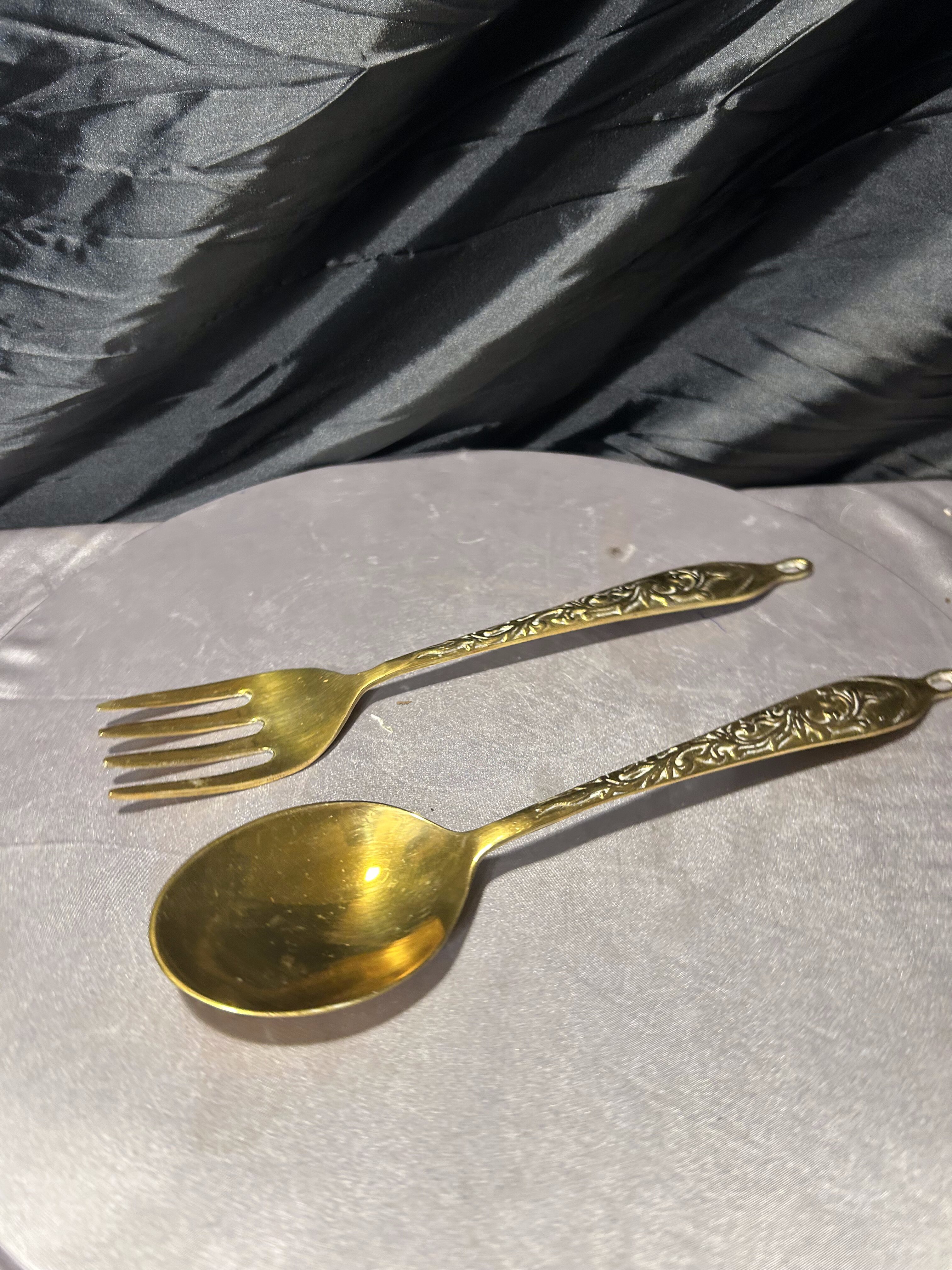 Zestaw ozdobny z mosiądzu – dekoracyjny widelec i łyżka – kunsztowne, ręcznie zdobione