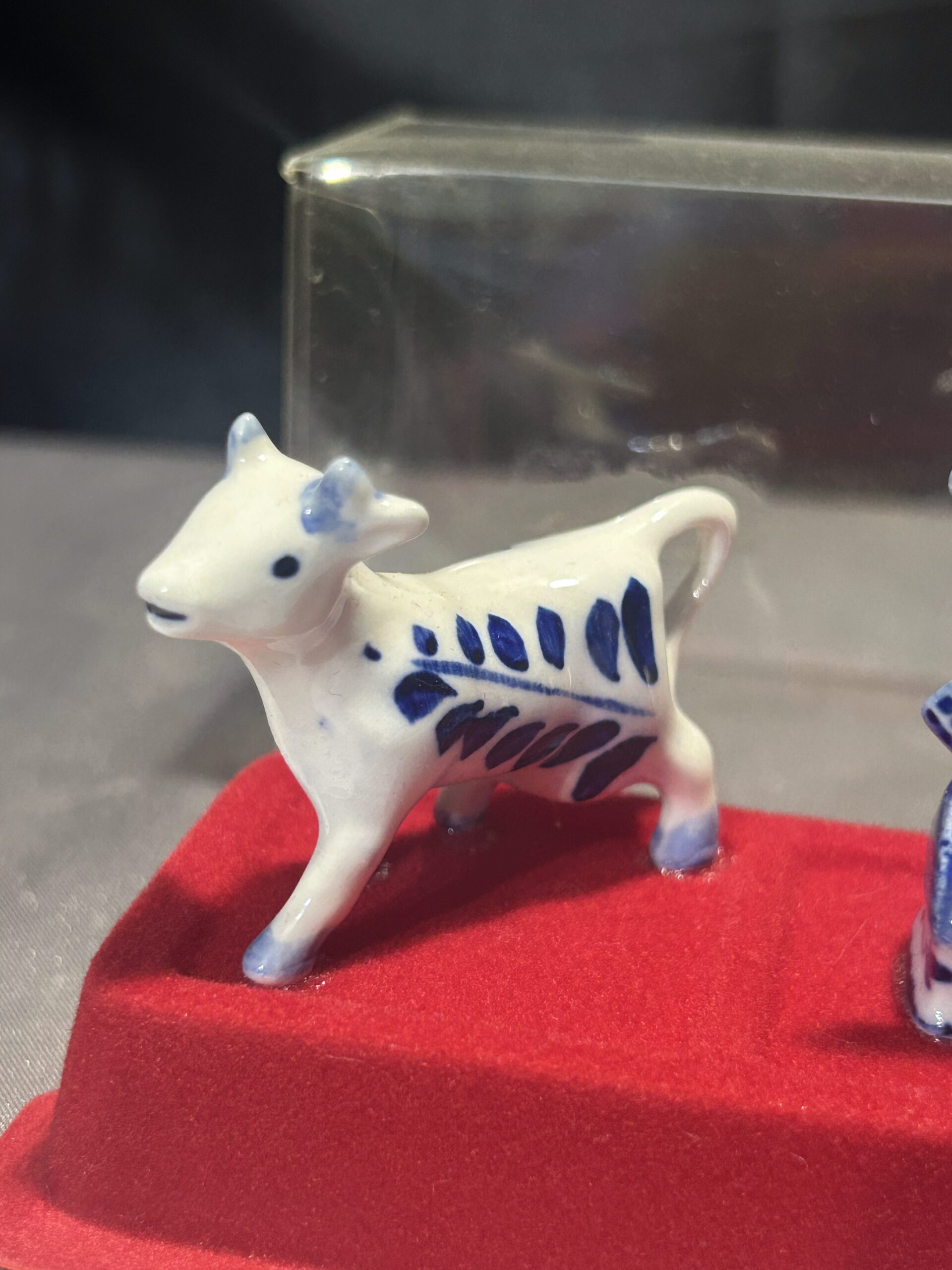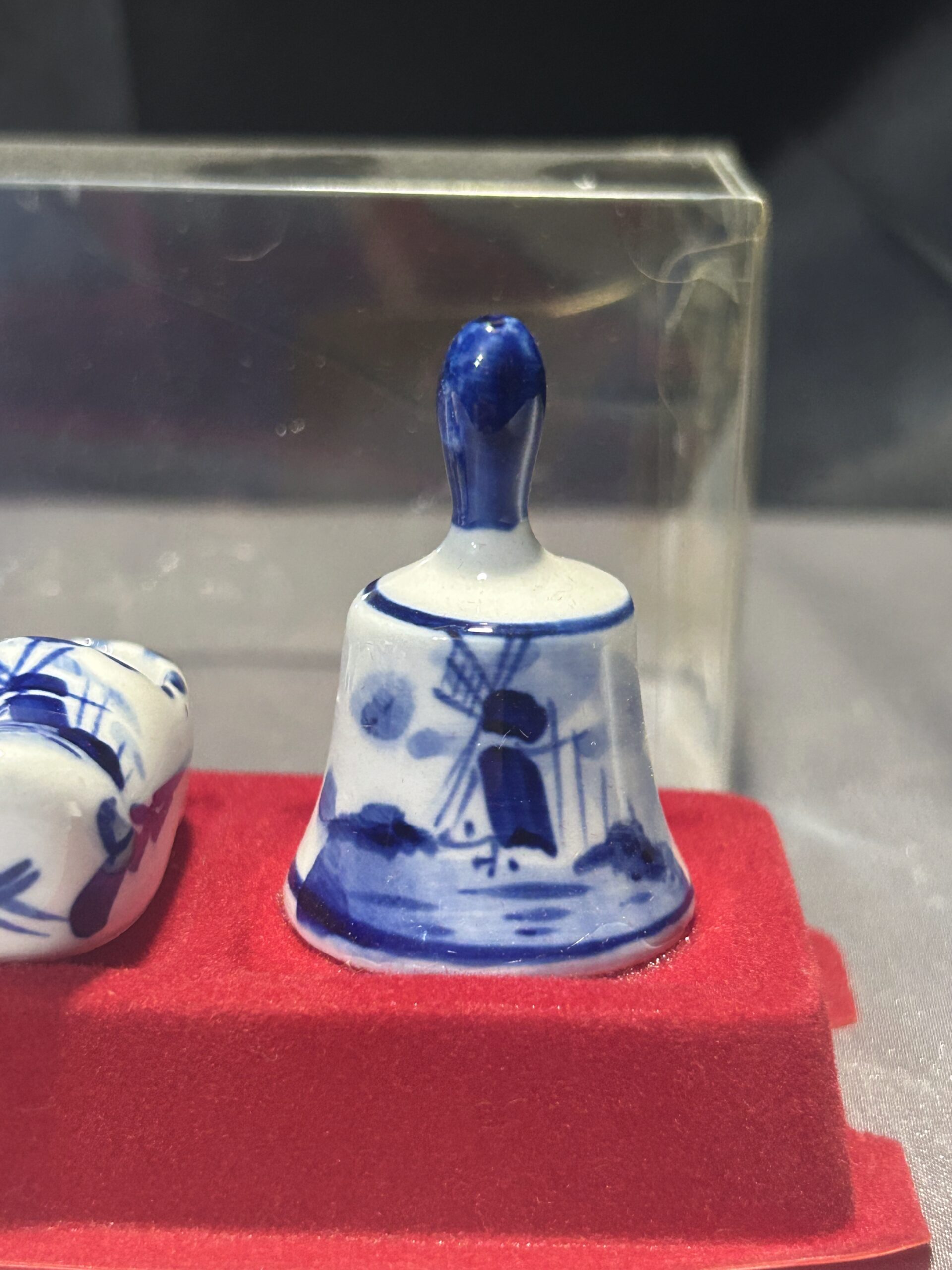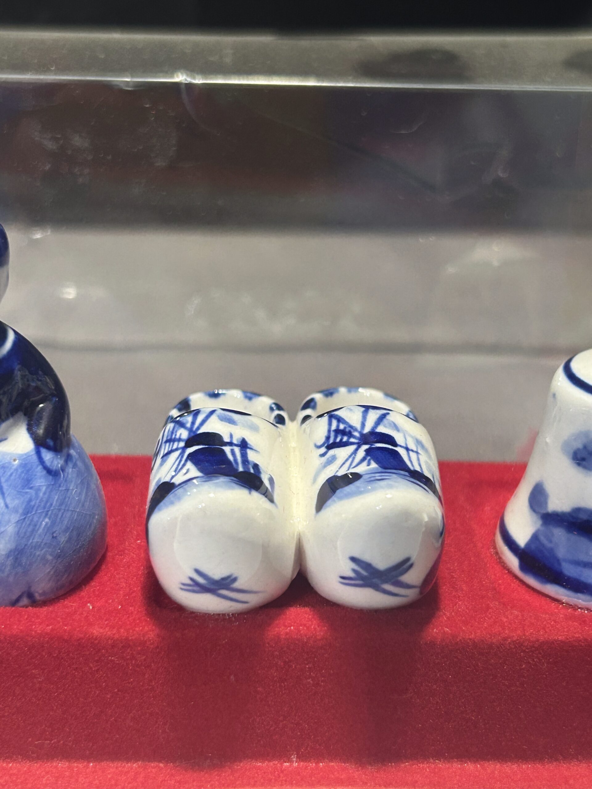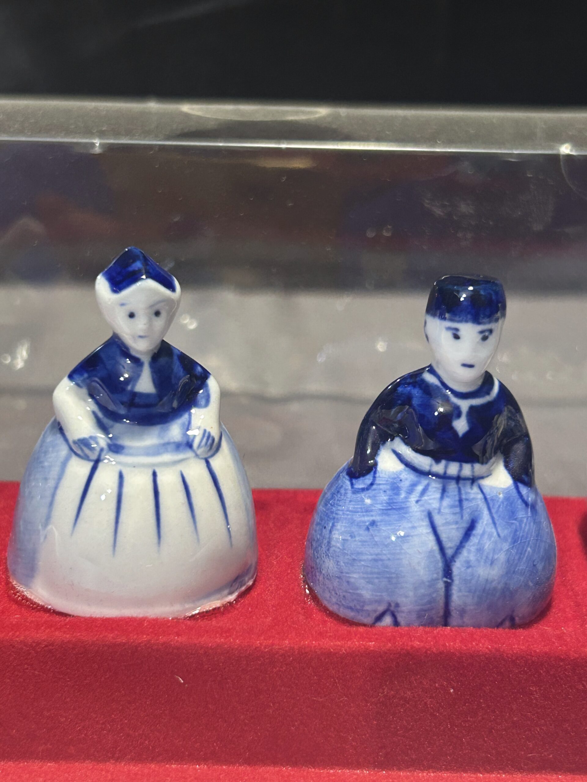 Unikalny zestaw figurek ceramicznych w biało-niebieskiej kolorystyce, inspirowany holenderską kulturą i tradycją. Figurki ułożone są na czerwonej filcowej podstawie i zabezpieczone przezroczystą pokrywką, co czyni ten zestaw idealnym jako dekoracja lub pamiątka.