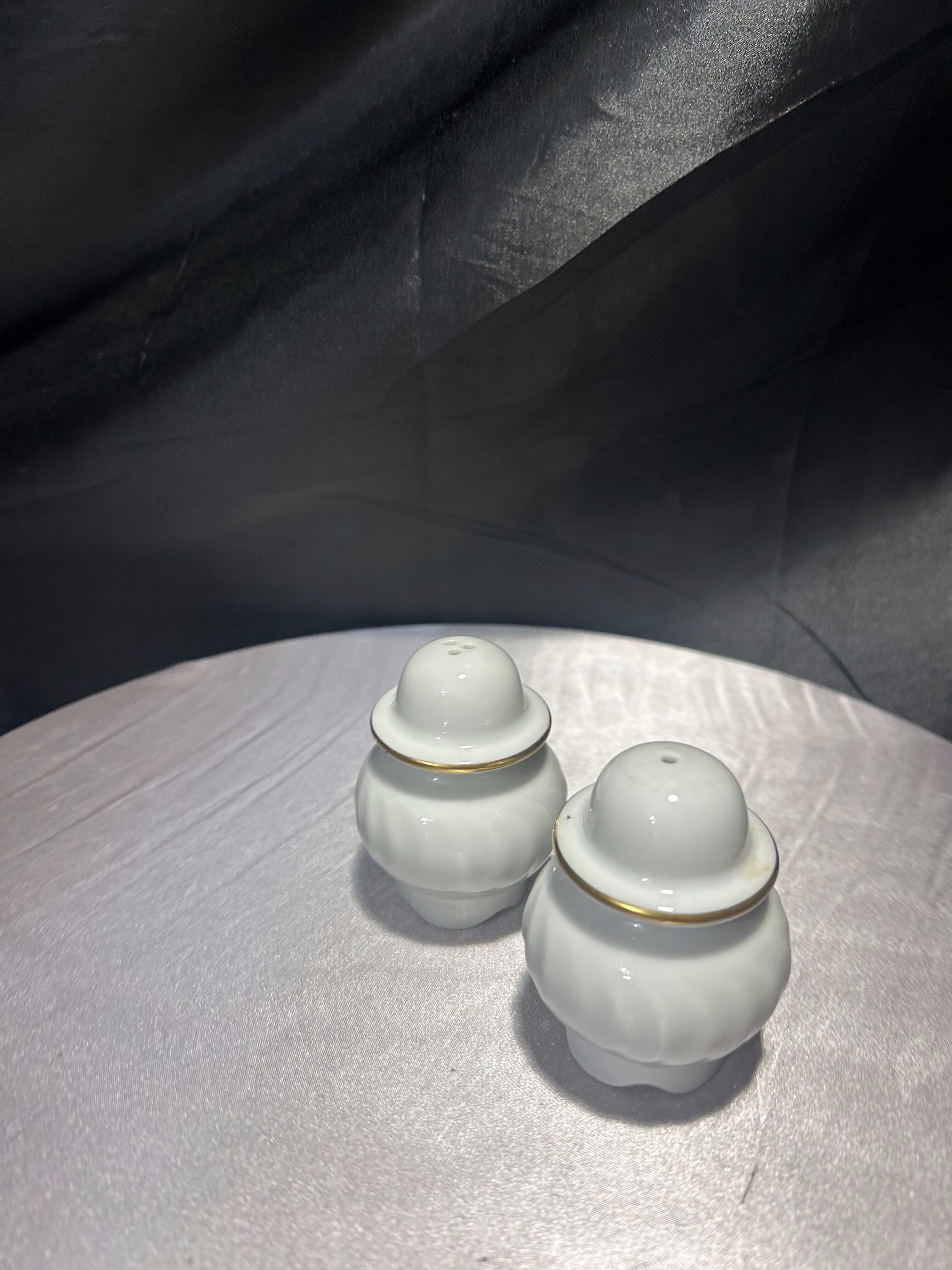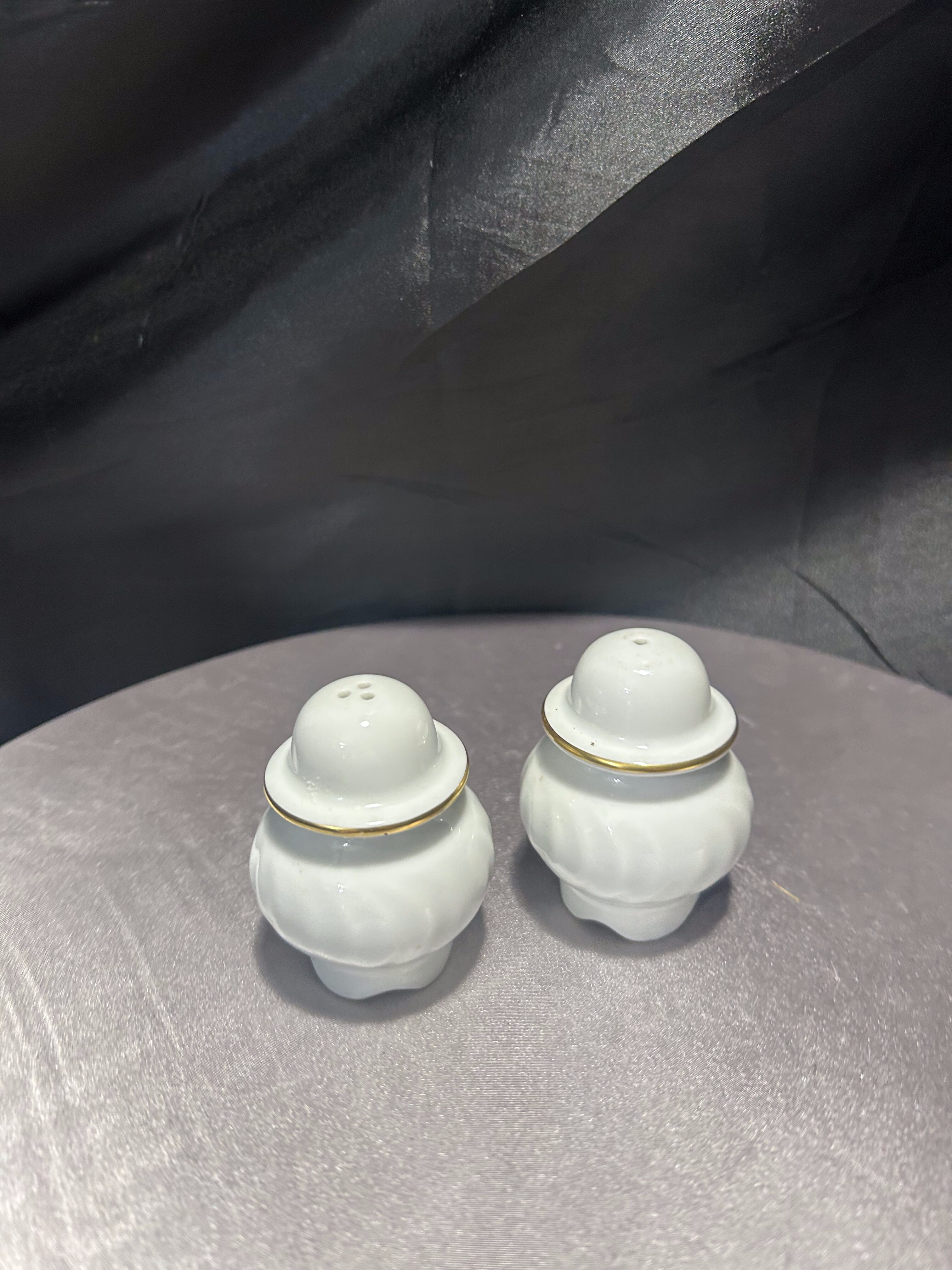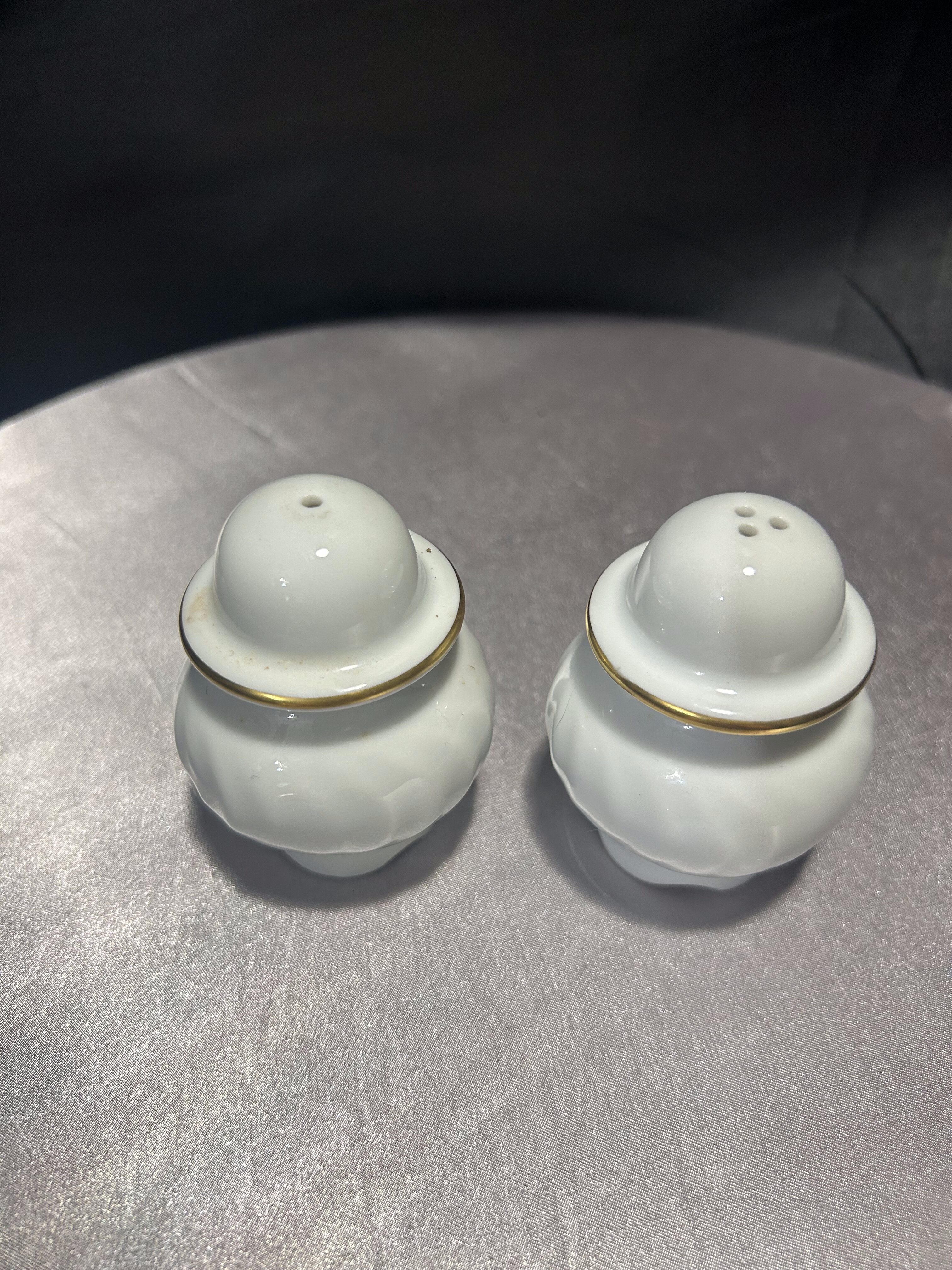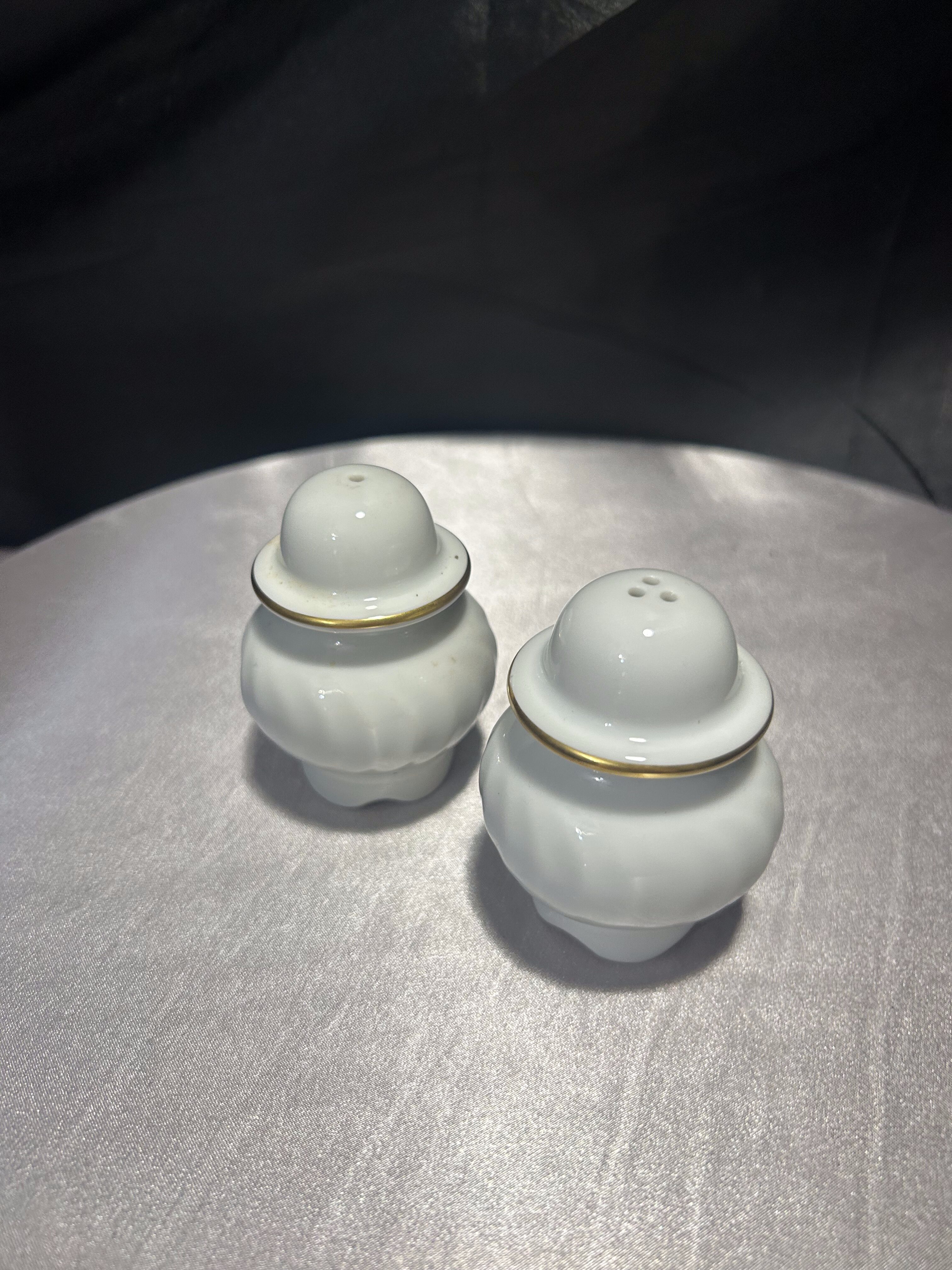 Solniczka i pieprzniczka – Ceramiczne z malowidłami – Złote obwódki, styl retro