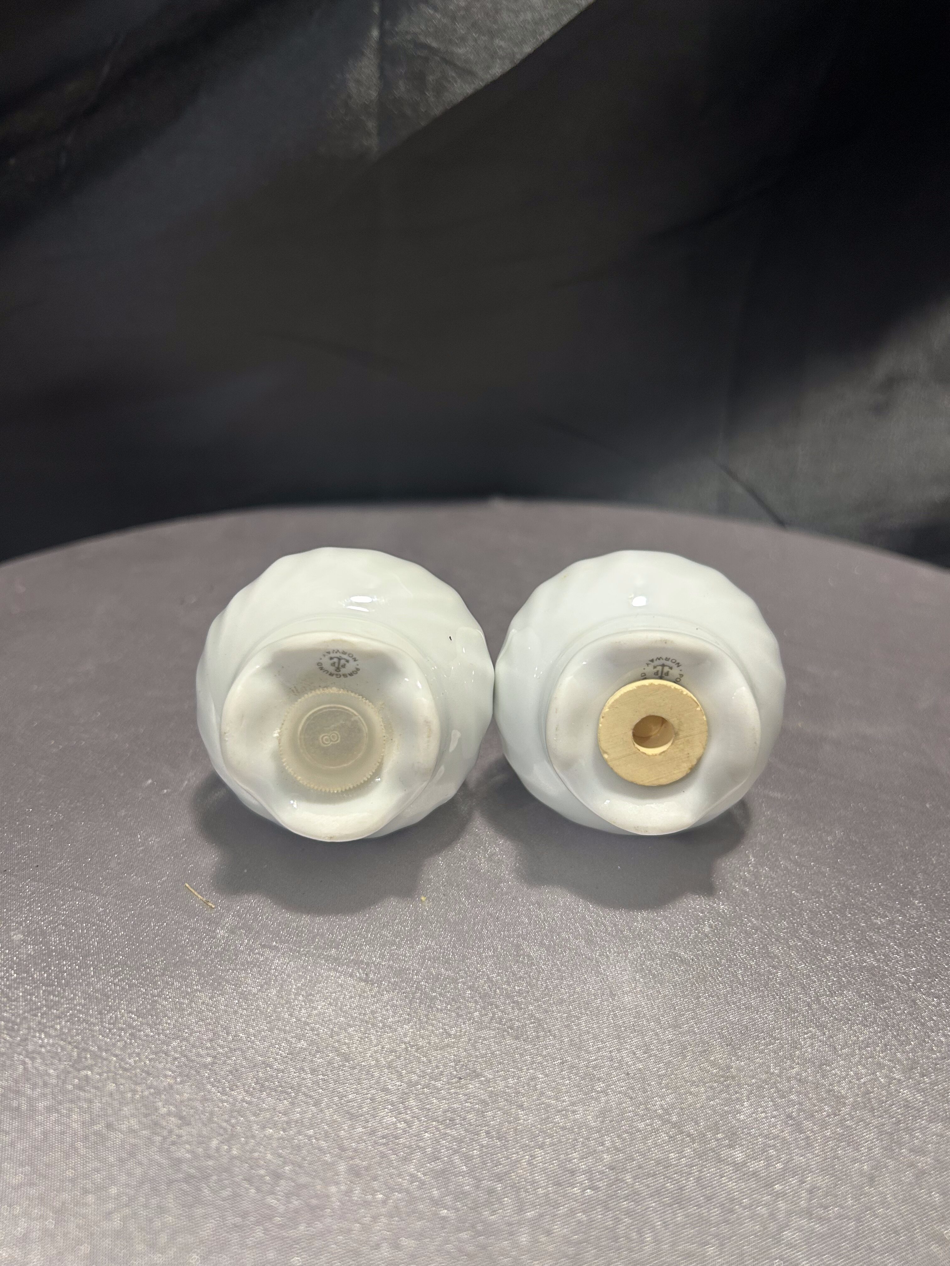 Zestaw solniczka i pieprzniczka – Porsgrund – Norwegia – klasyka skandynawskiej porcelany