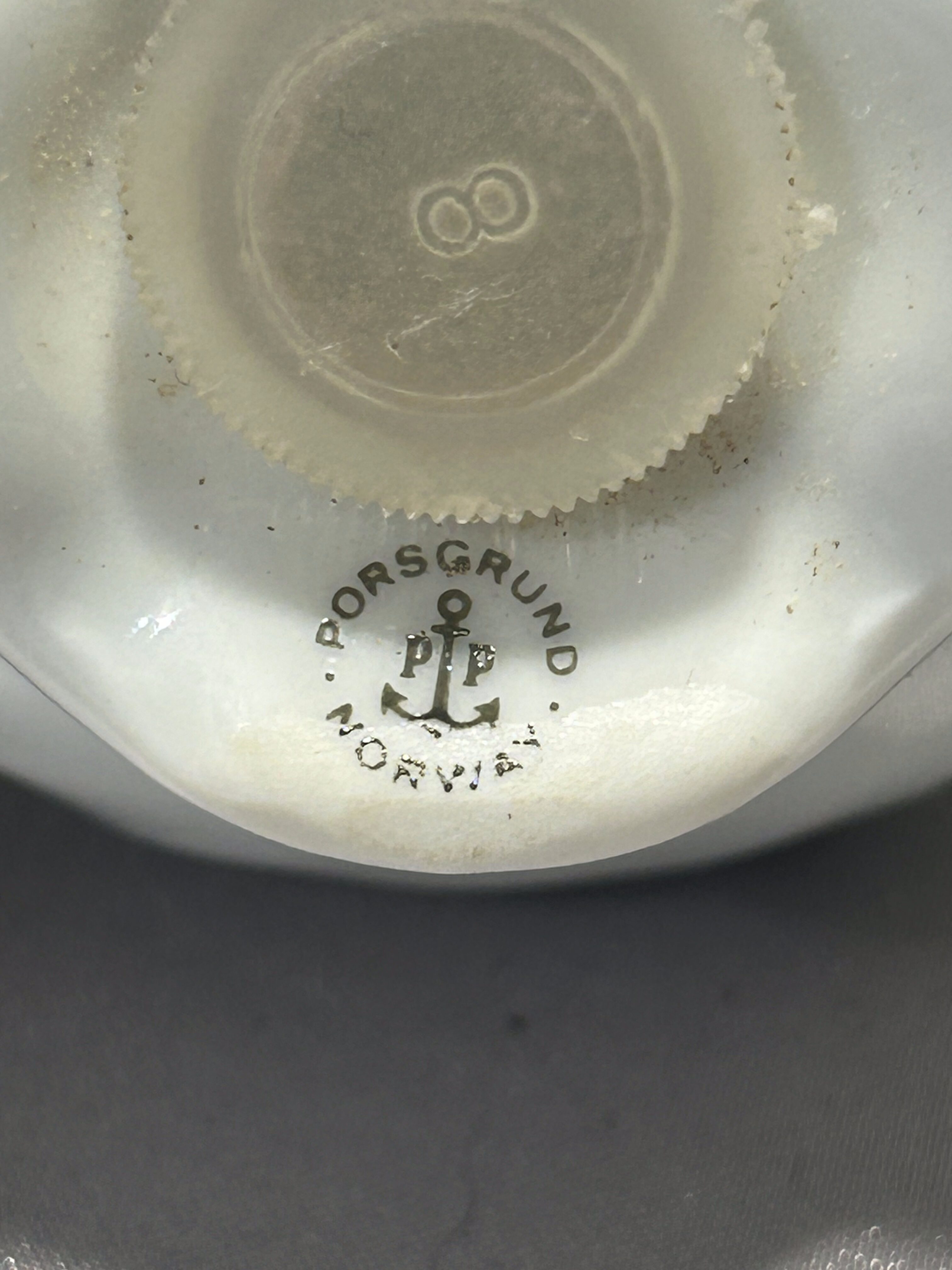 Na spodzie widnieje oryginalna sygnatura producenta: PP z kotwicą oraz napisem Porsgrund Norway, co potwierdza autentyczność wyrobu. To nie tylko praktyczne przedmioty codziennego użytku, ale również wartościowy dodatek do kolekcji skandynawskiej porcelany vintage.