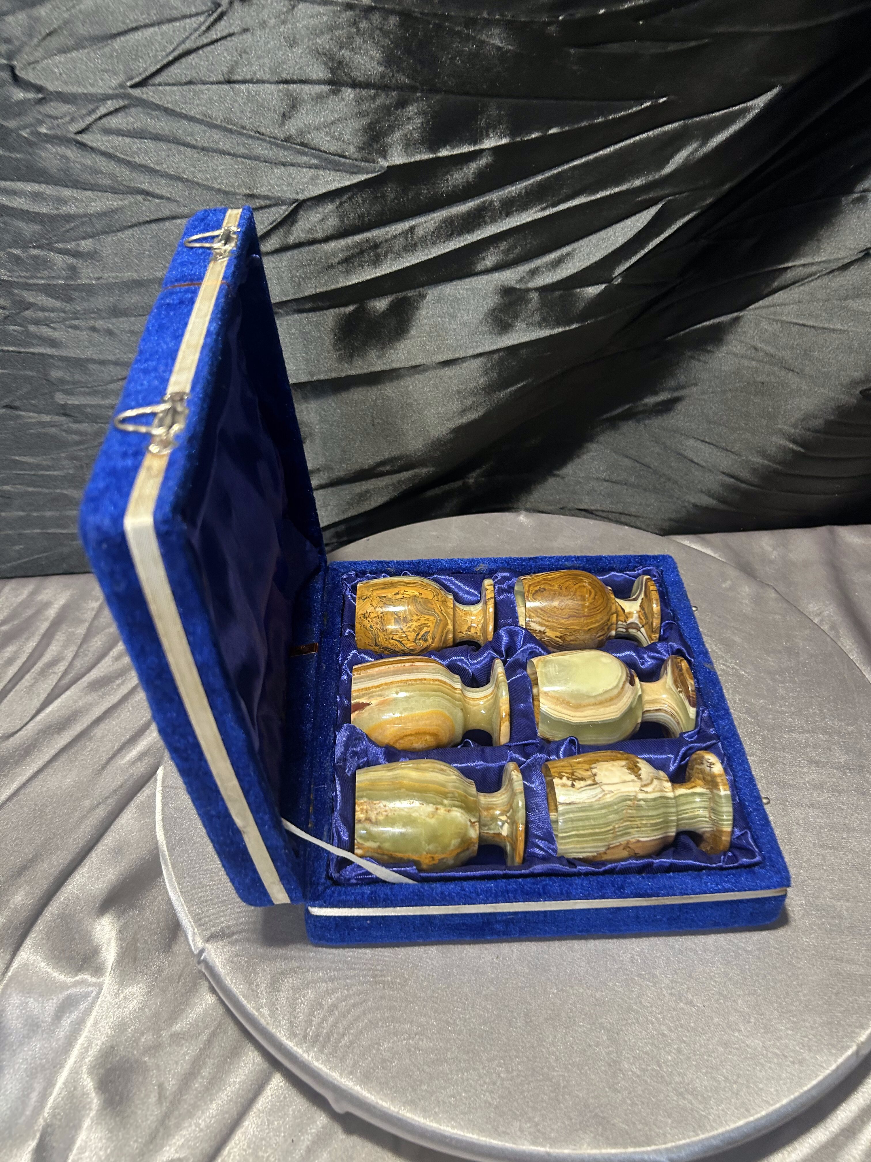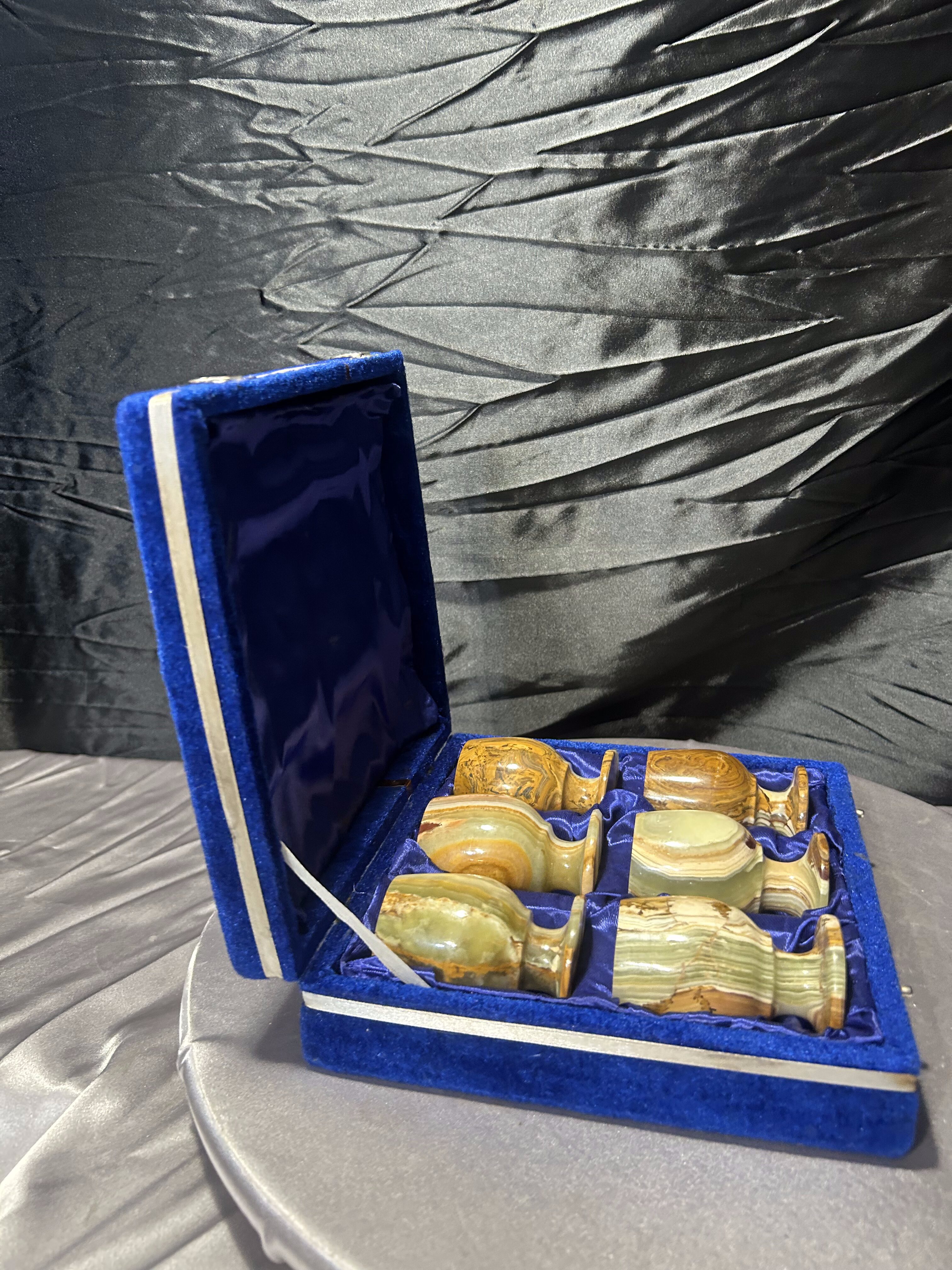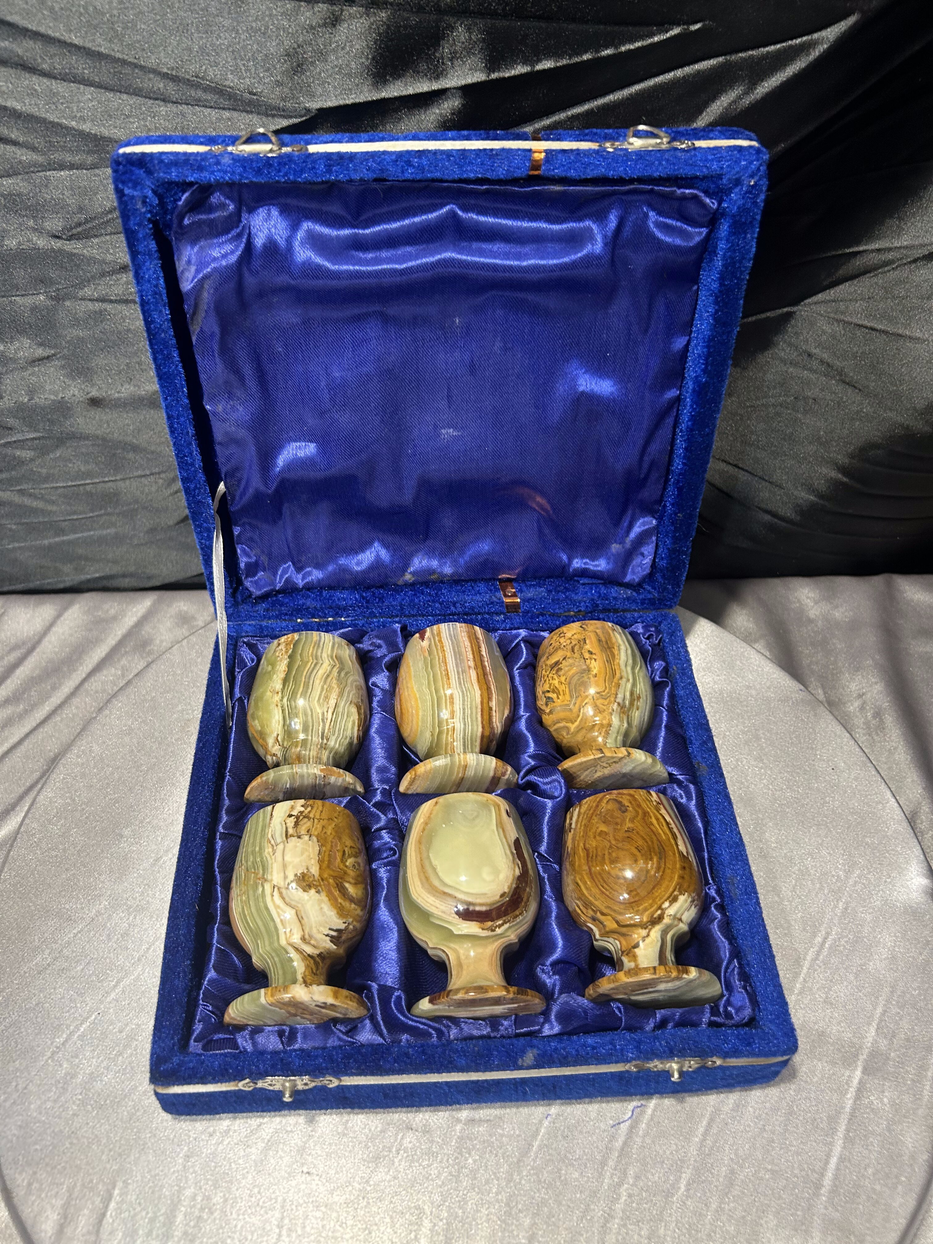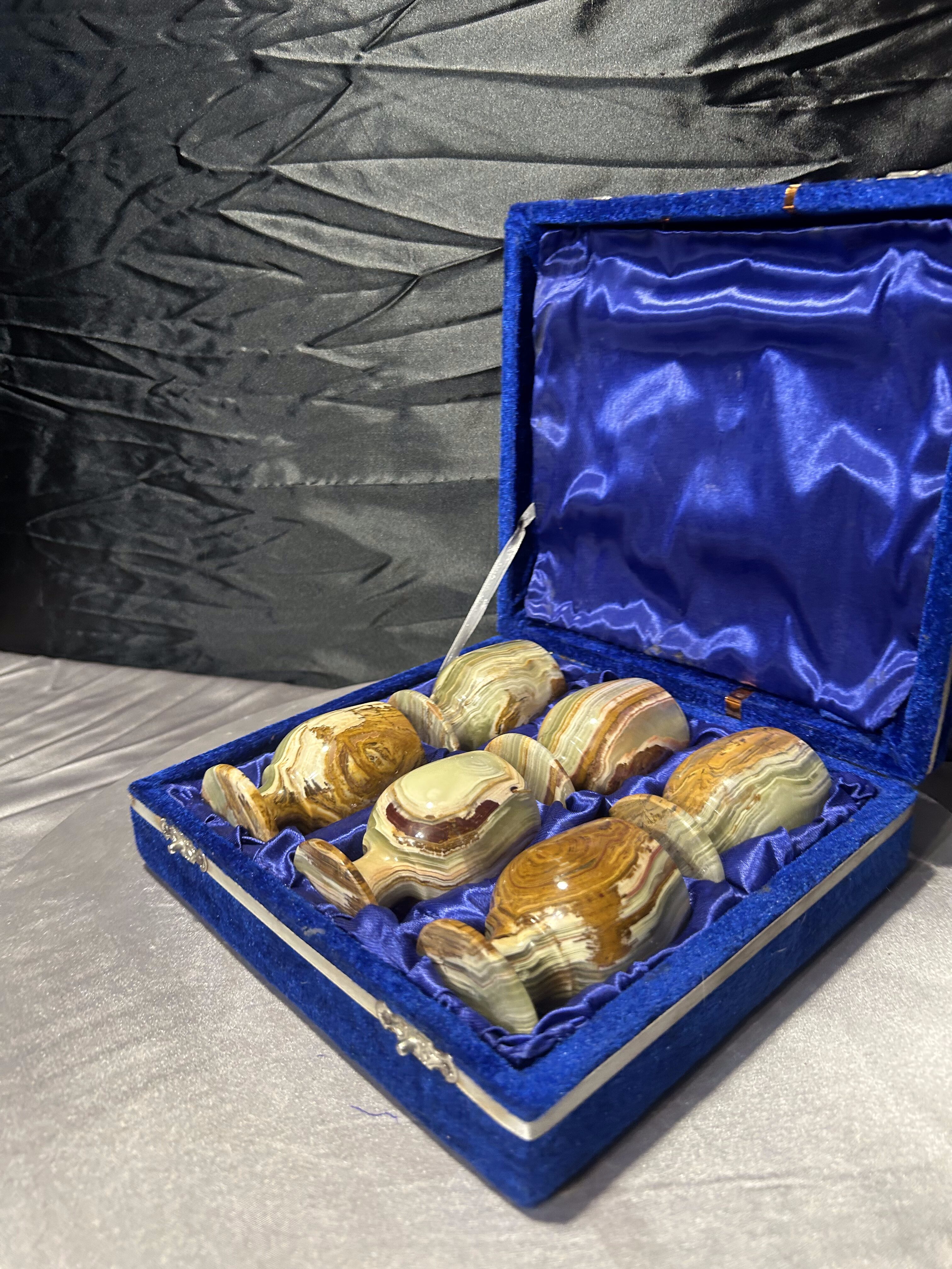 – komplet sześciu kieliszków z naturalnego onyksu