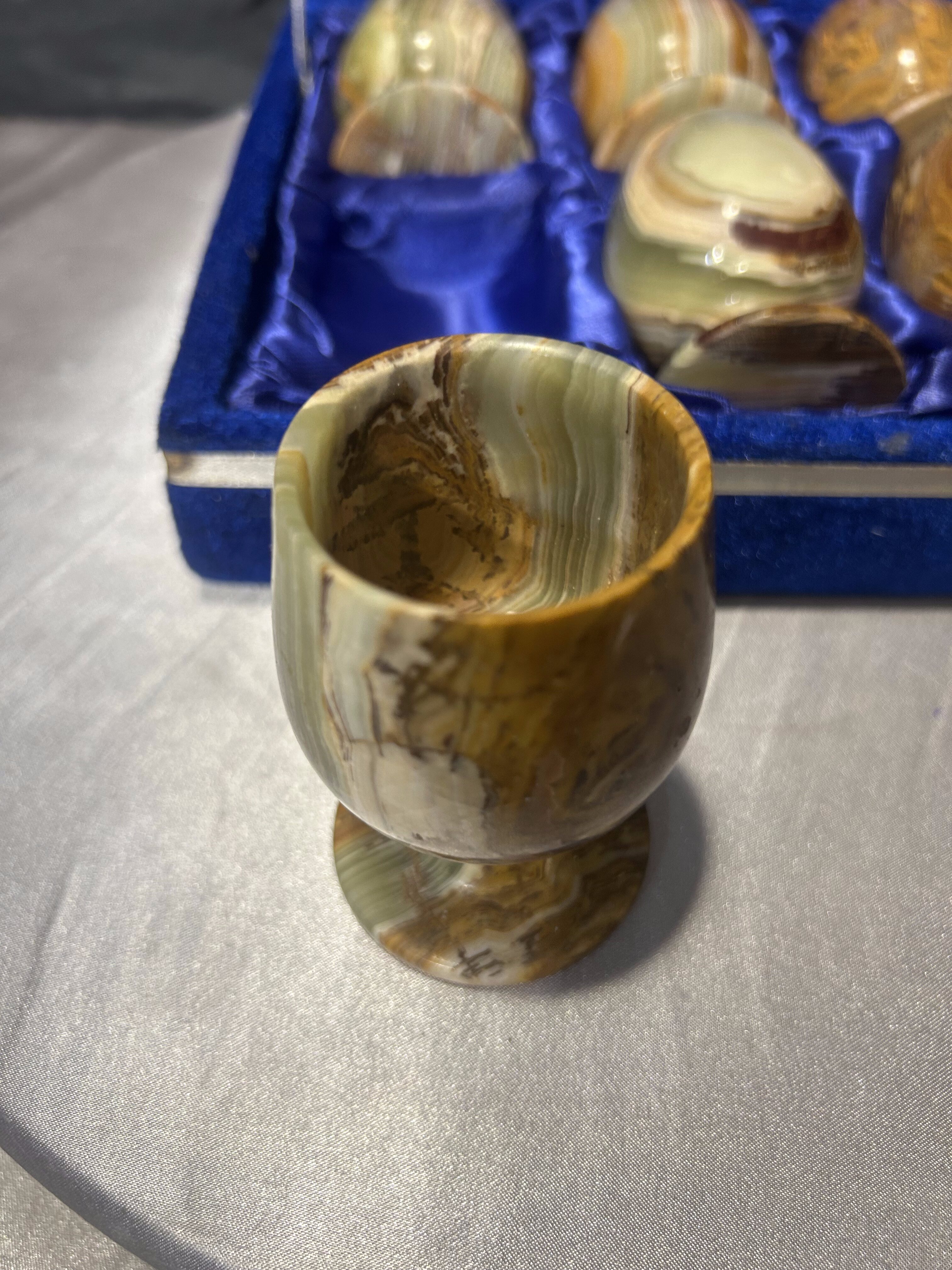 Zestaw sześciu kieliszków z onyksu – ręcznie toczone – klasyczny styl kolekcjonerski