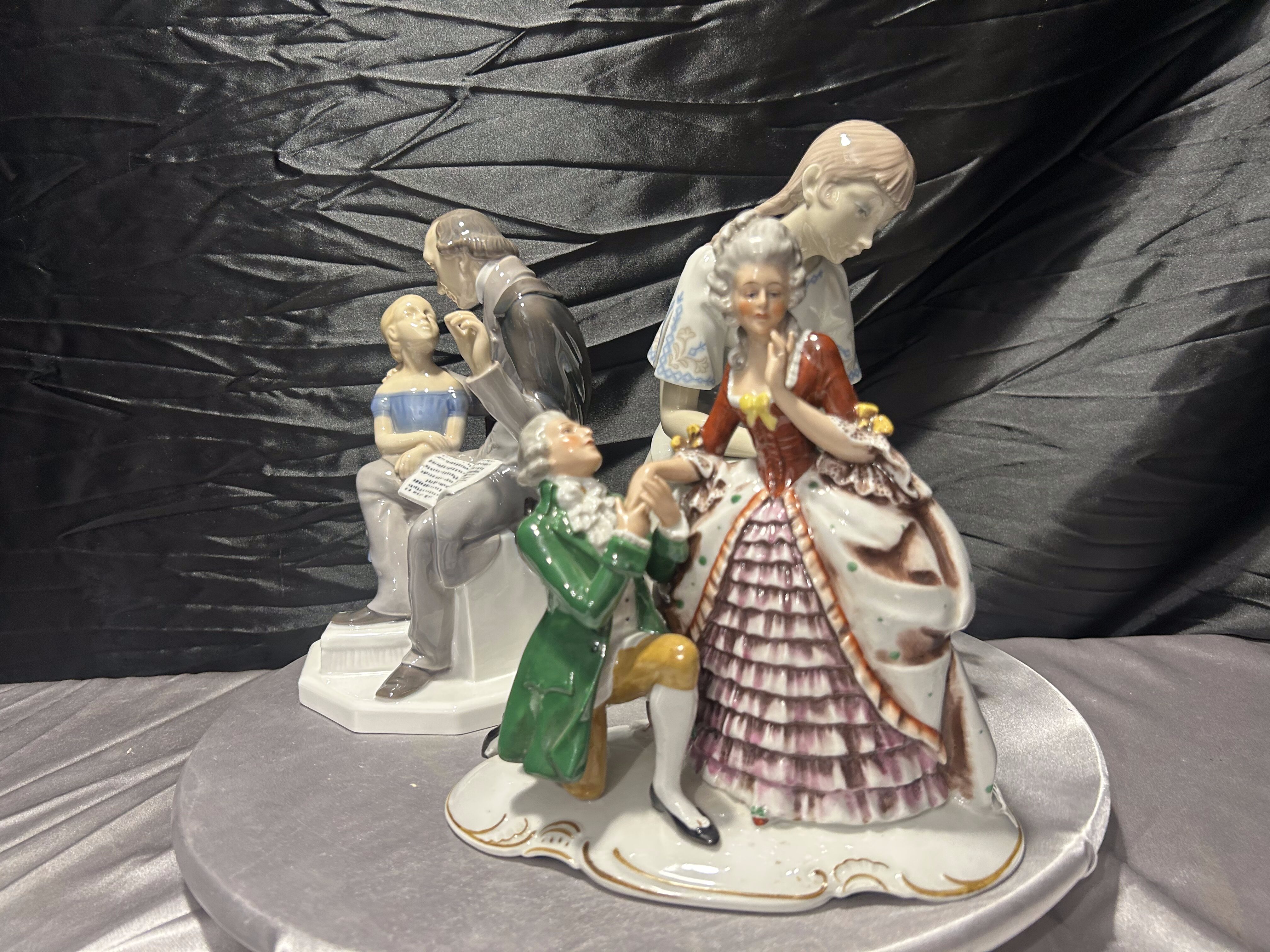 W zestawie znajdują się figurki wykonane przez znane europejskie wytwórnie, m.in. Rosenthal (Niemcy), B&G Copenhagen (Dania) oraz Wallendorf (Niemcy). Przedstawiają sceny pełne narracji i emocji – od spokojnej sceny edukacyjnej, przez subtelną kompozycję kobiecą, aż po elegancką scenkę dworską.