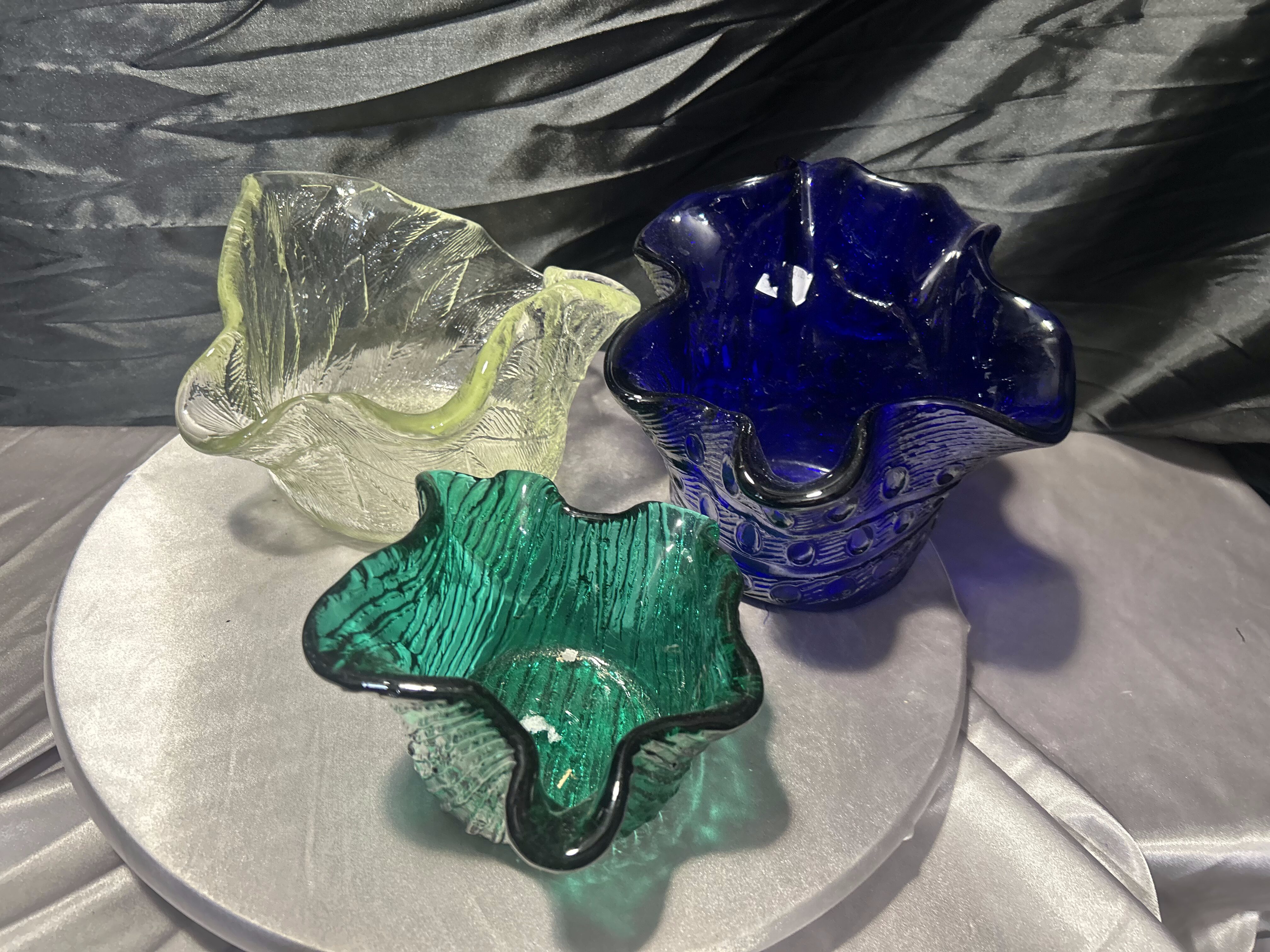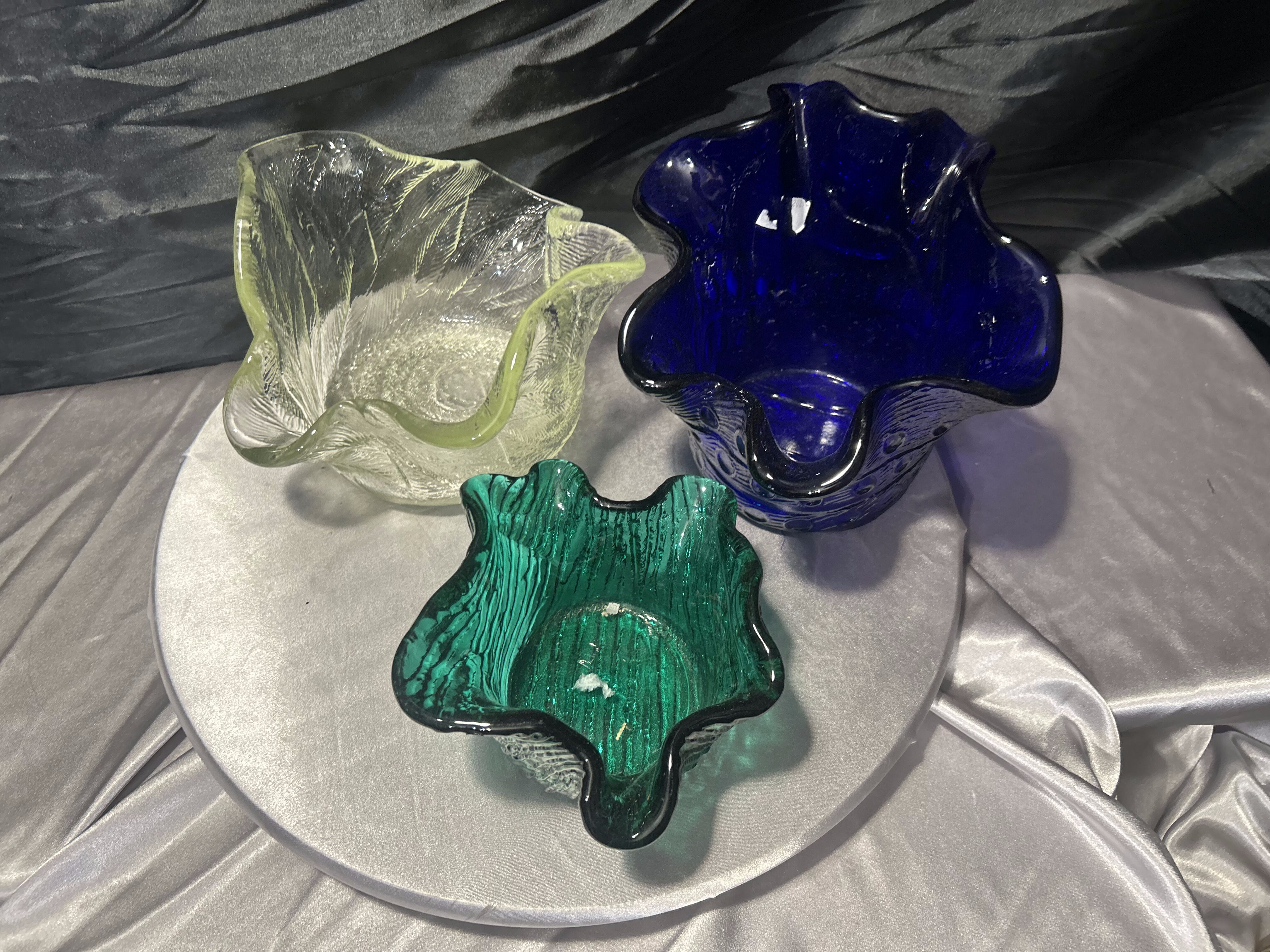 - Zestaw trzech mis ze szkła artystycznego – dekoracyjne misy kolorowe