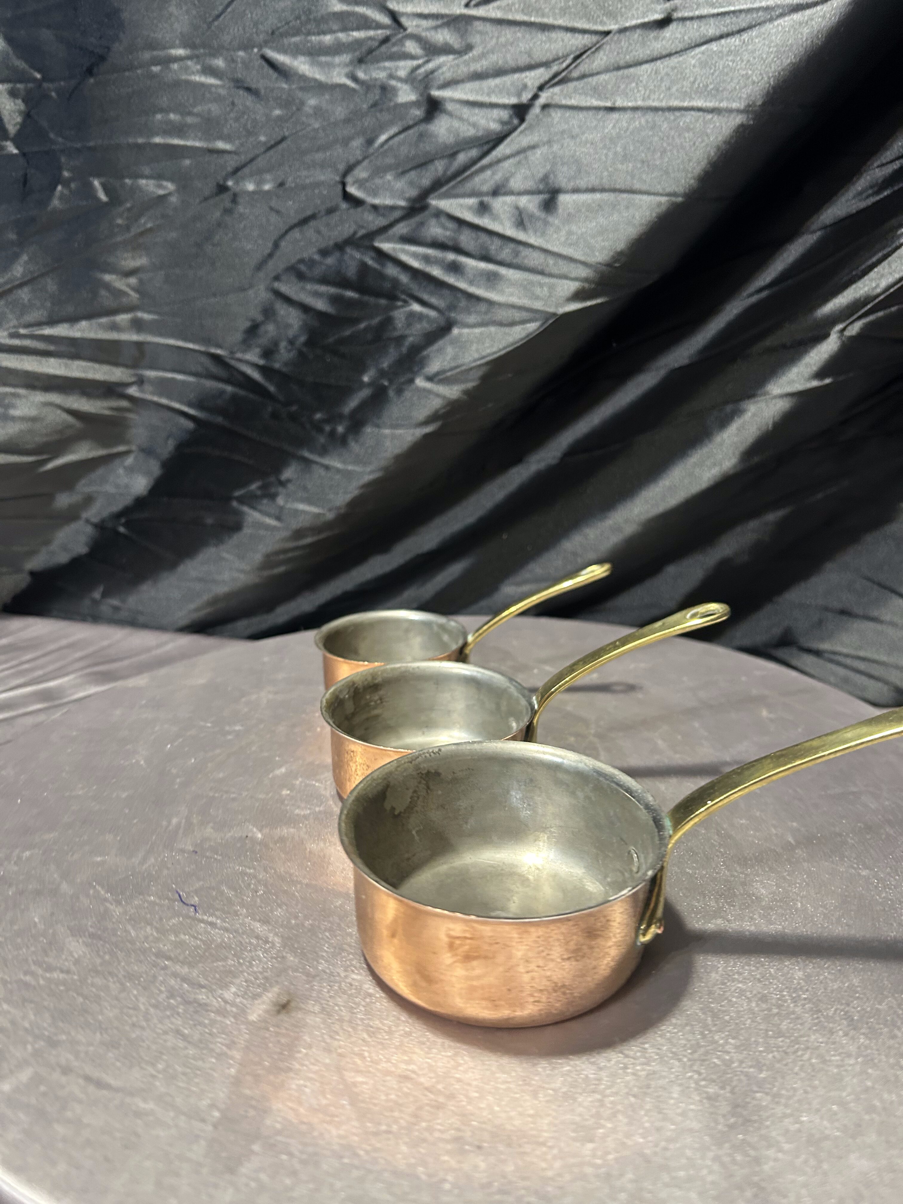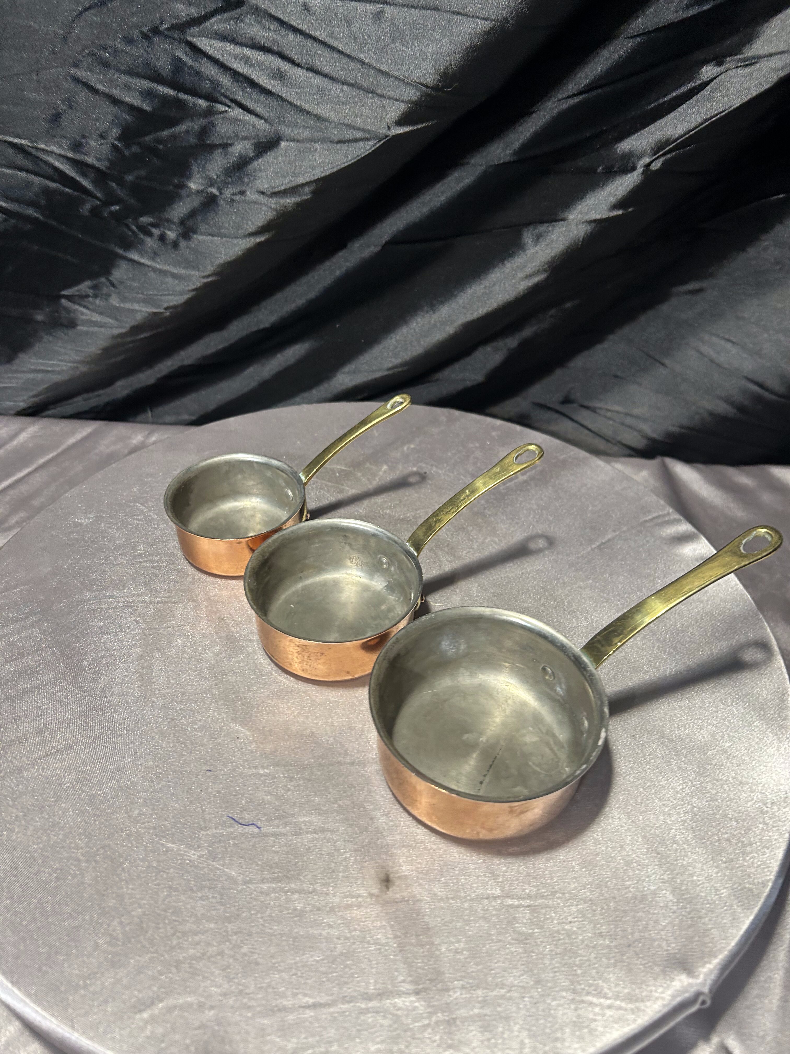 – Komplet trzech miedzianych rondelków