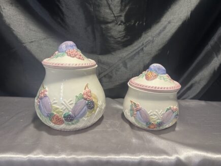 Komplet ceramicznych pojemników kuchennych – owocowy relief – pastelowe kolory