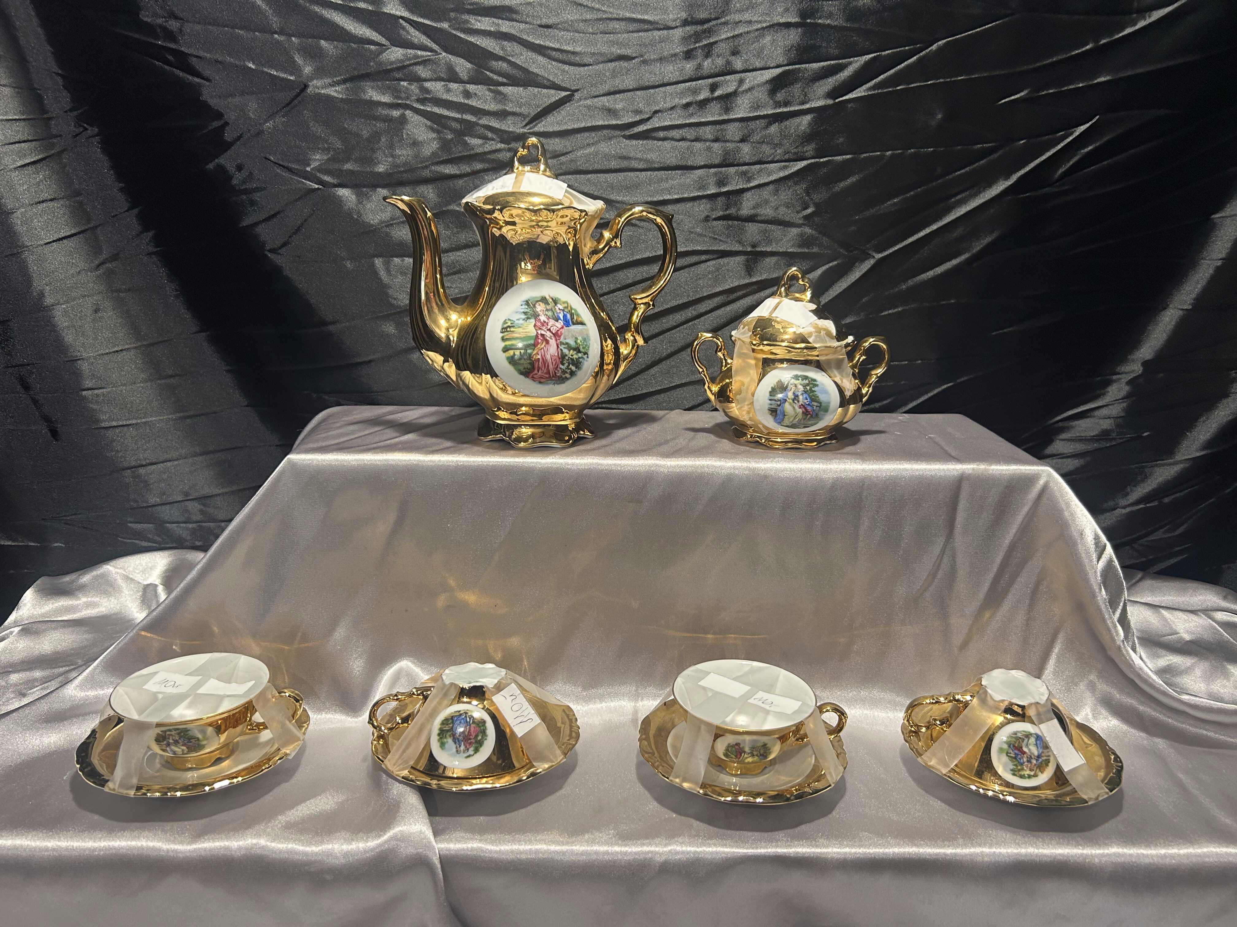 Zestaw kawowy Bavaria Waldershof Germany – pozłacany 22-karatowym złotem – 6 elementów