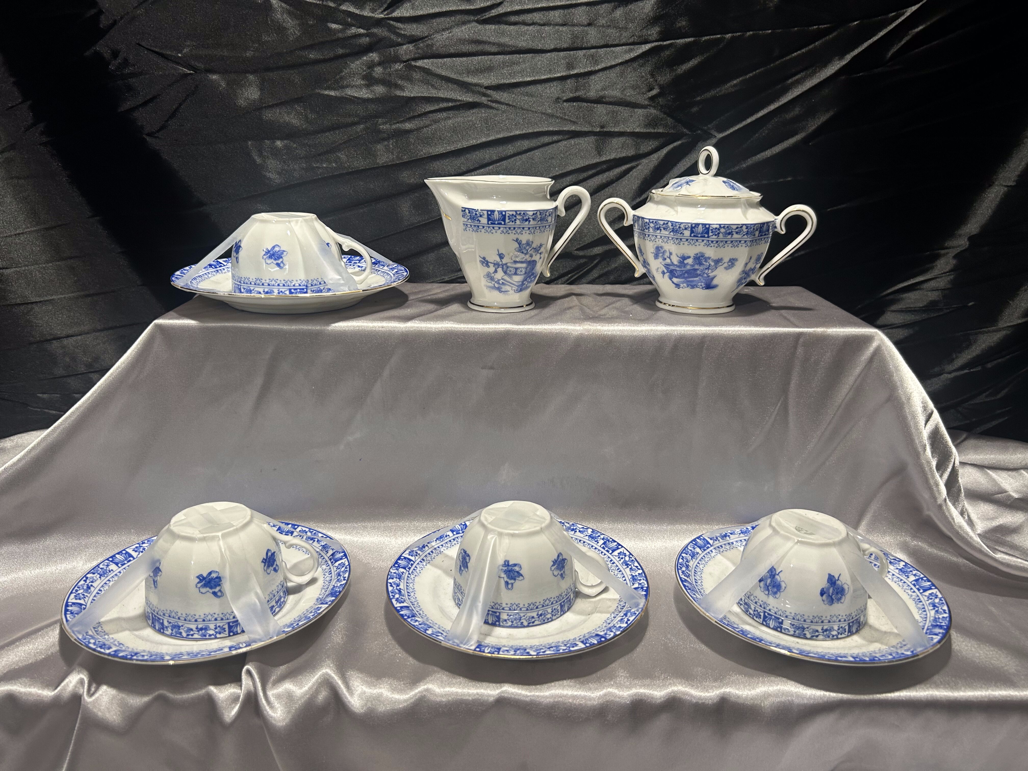Zestaw porcelanowy Kahla Rudolstadt – 4 filiżanki, mlecznik i cukiernica – Niemcy, lata 50–70