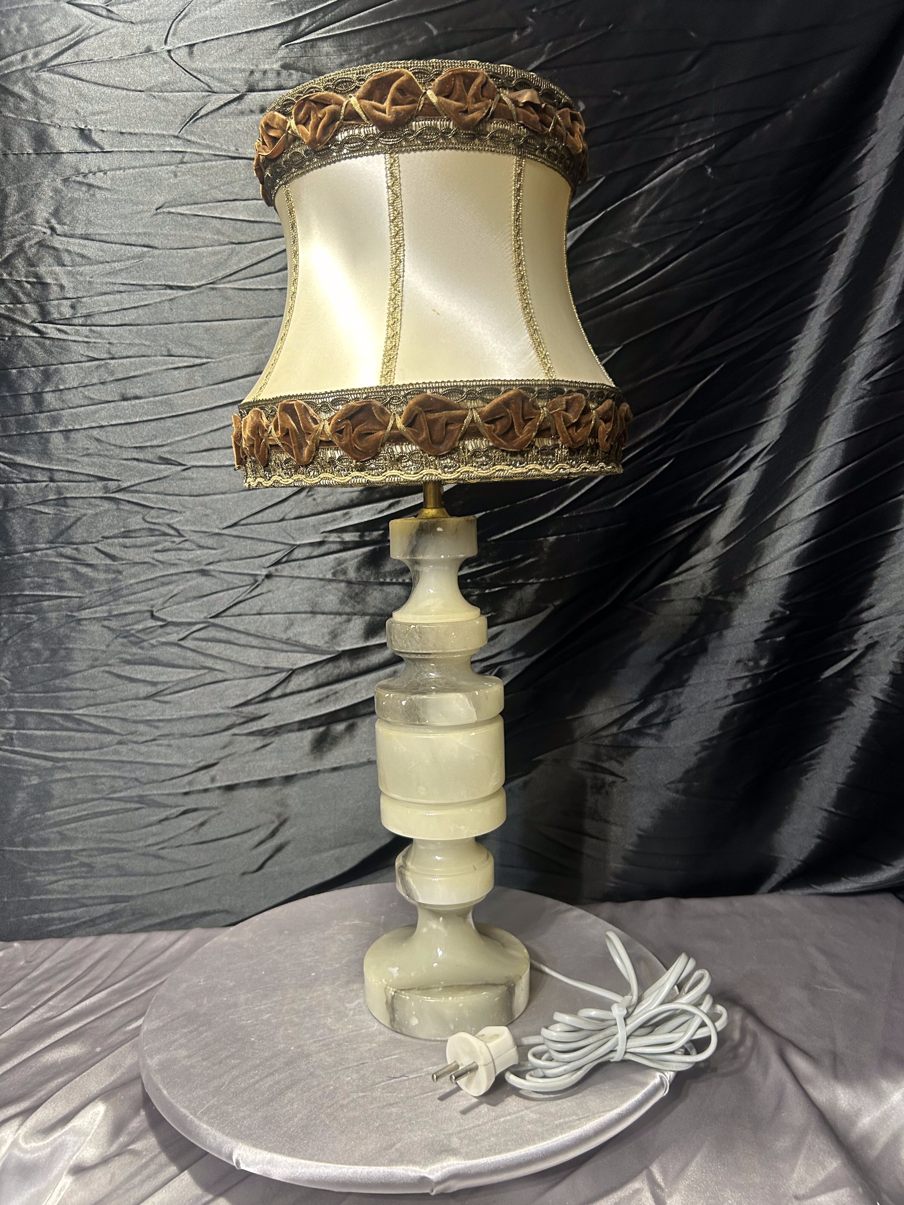 Lampa stołowa z onyksu z abażurem – duży format – klasyczny styl