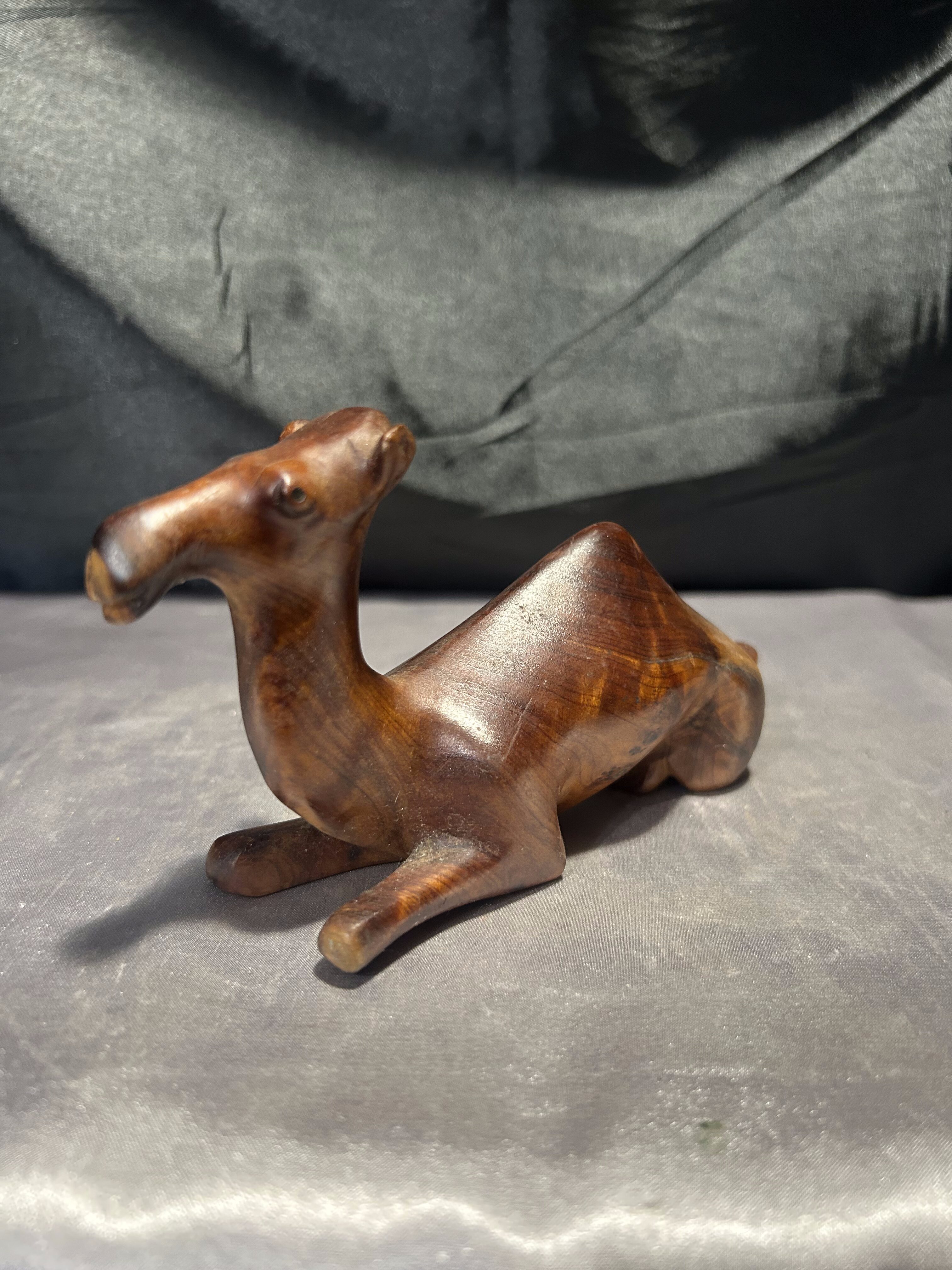 Drewniana figurka wielbłąda – siedząca pozycja – ręcznie rzeźbiona