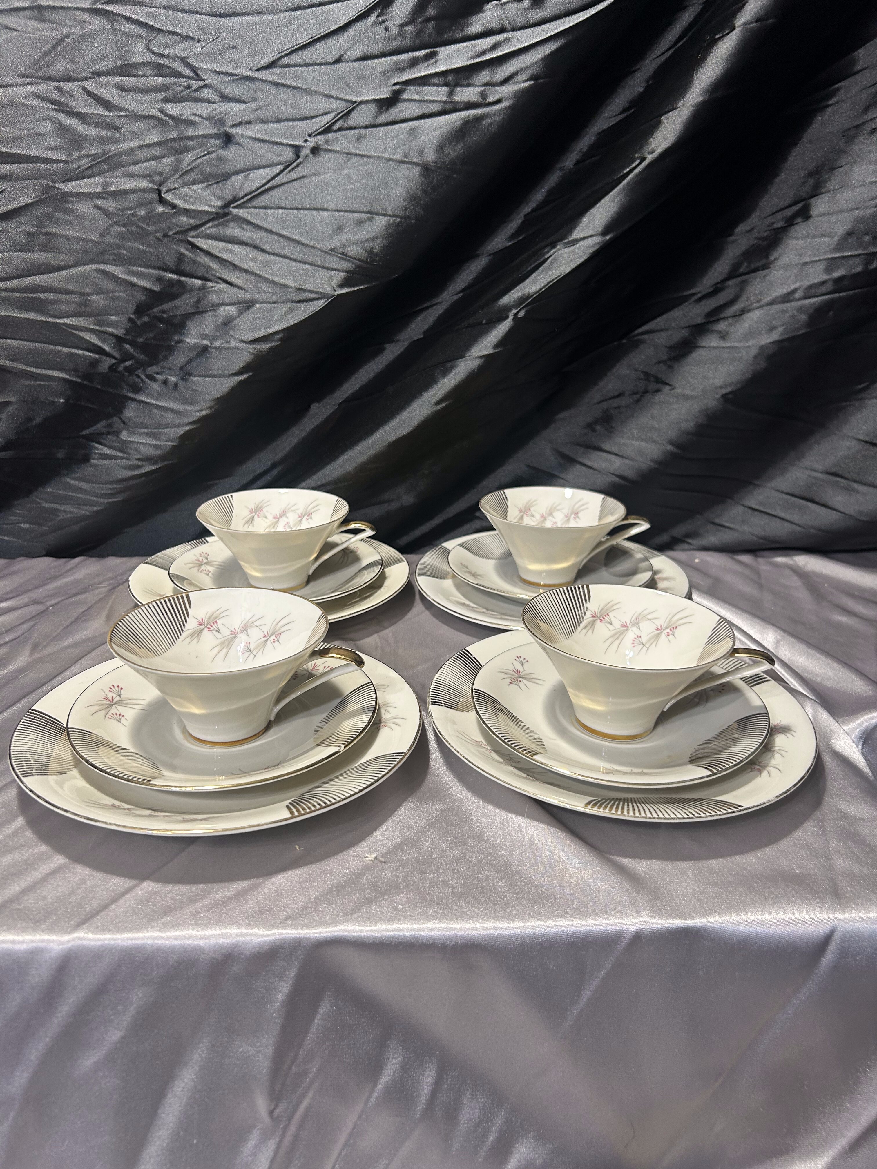 Zestaw czterech filiżanek ze spodkiem i talerzykiem – Winterling Bavaria Germany – porcelana bawarska