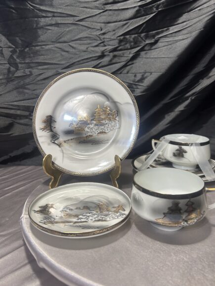 Zestaw dwóch filiżanek Kutani Trio – Japonia – porcelana kolekcjonerska