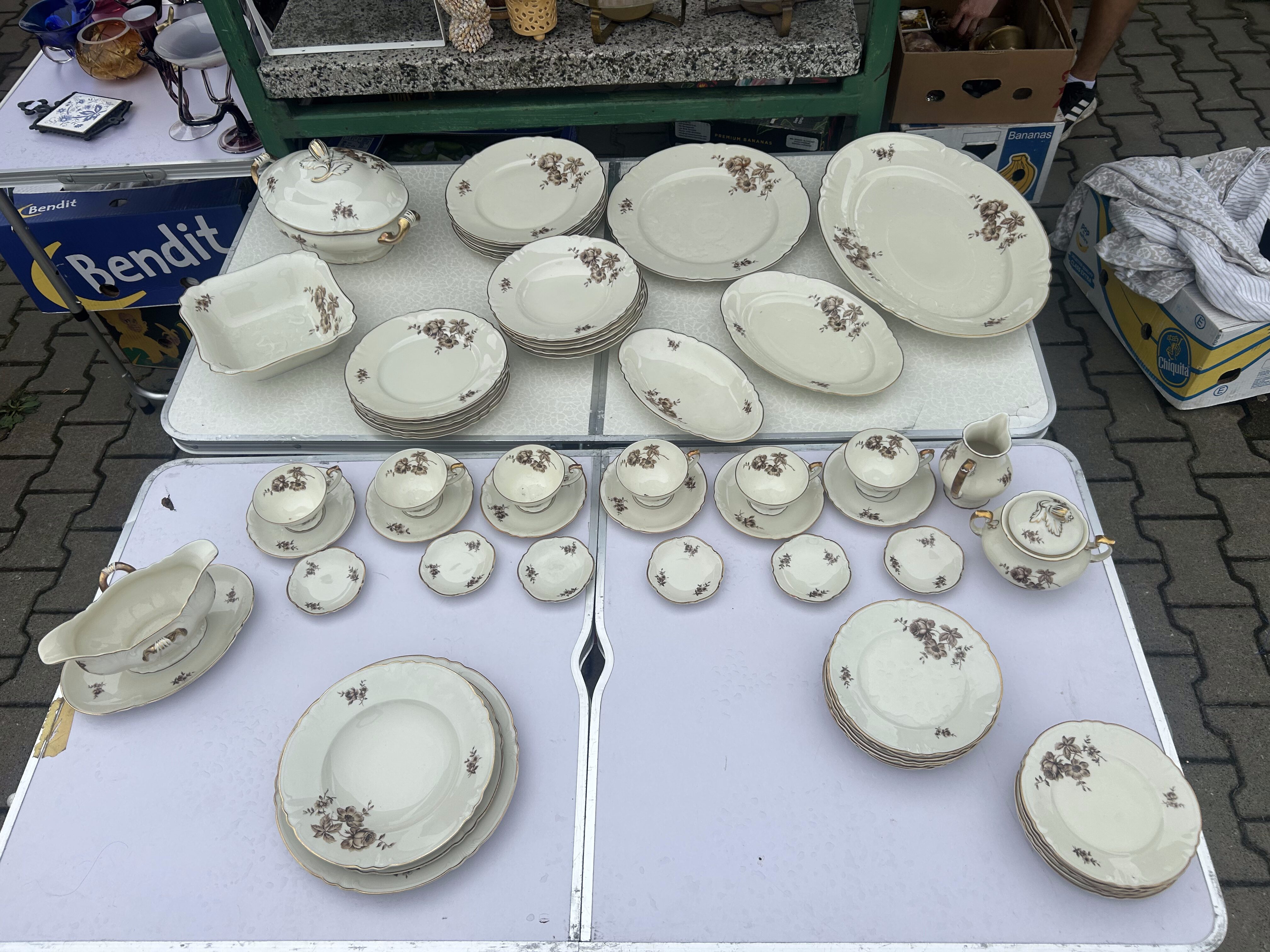 Serwis obiadowy i kawowy Hutschenreuther – Abt. Paul Müller – Niemcy – zestaw dla 6 osób – kolor śmietankowy