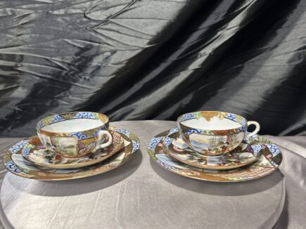Zestaw dwóch filiżanek w japońskim stylu – bogato zdobiona porcelana ręcznie malowana