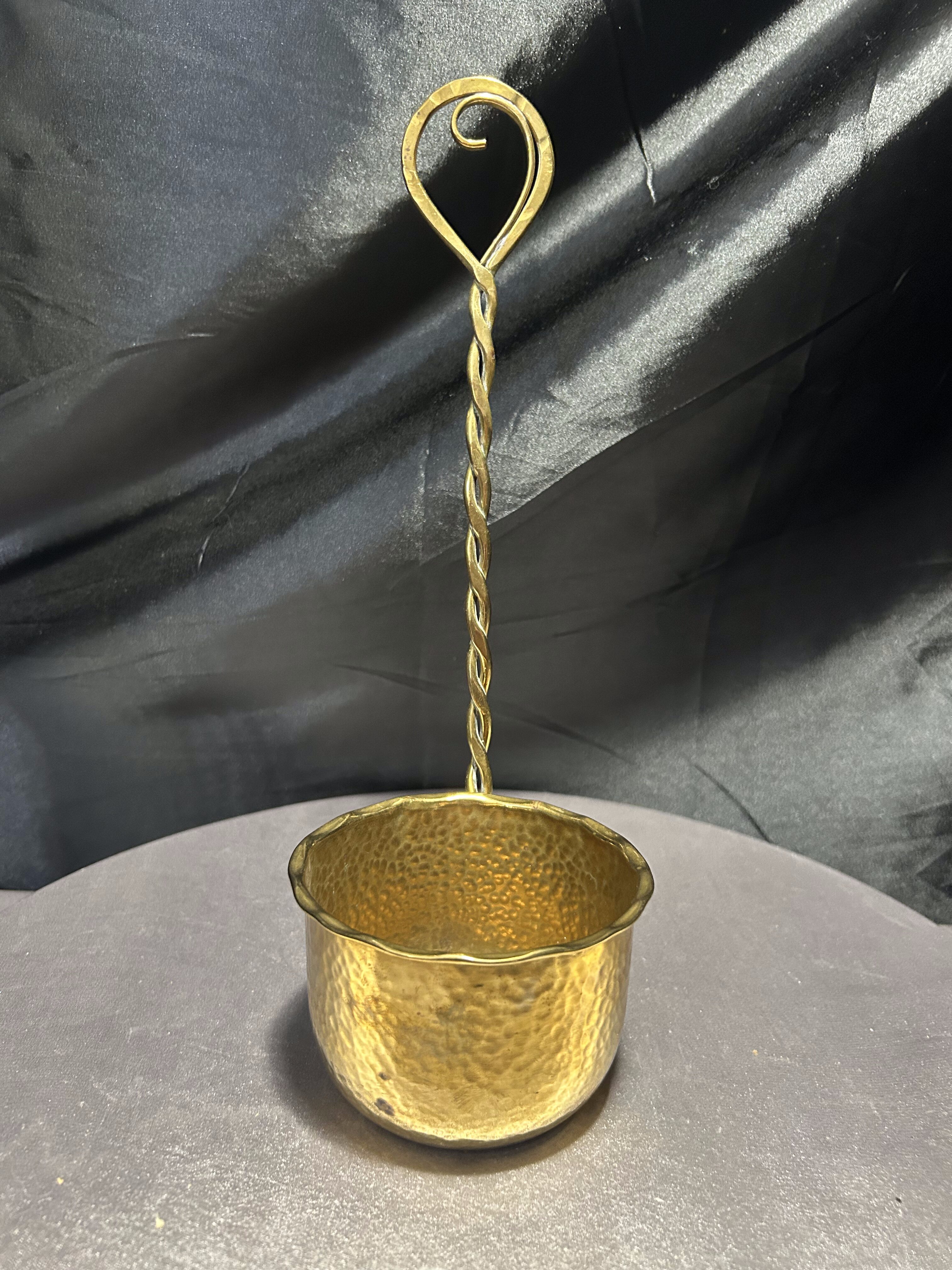 Mosiężna chochla z plecioną rączką – elegancki podbierak dekoracyjny