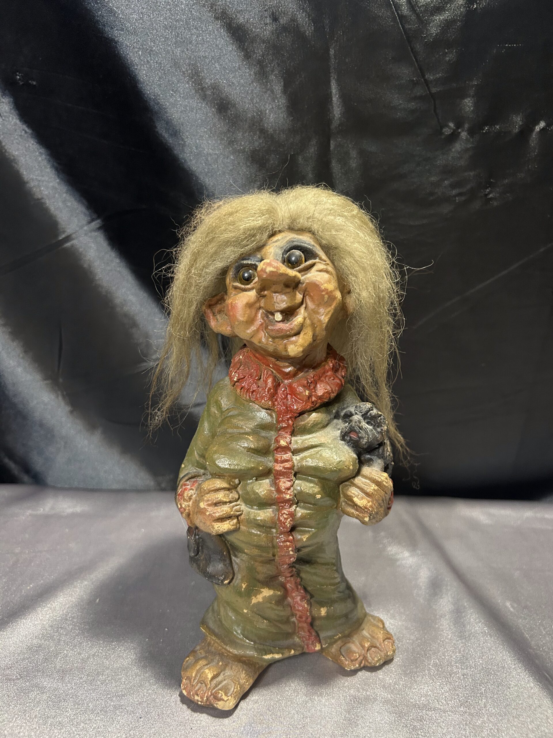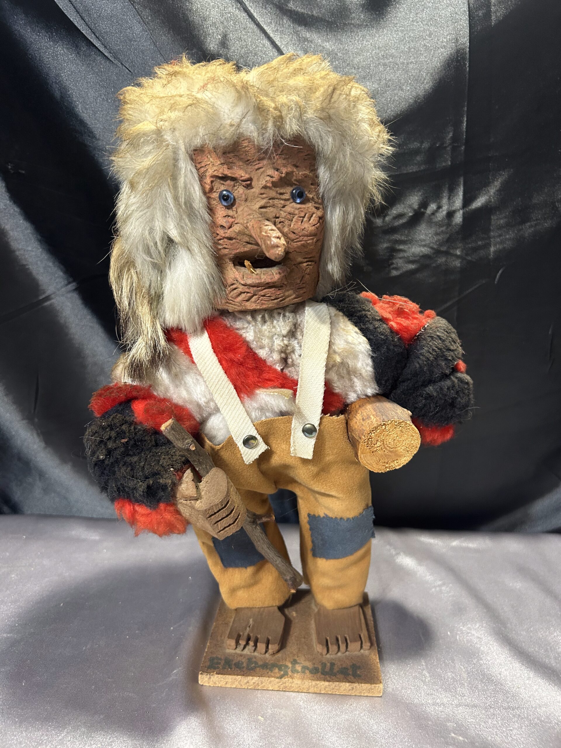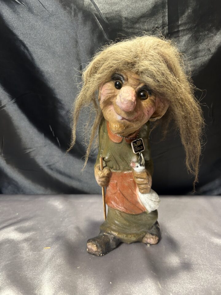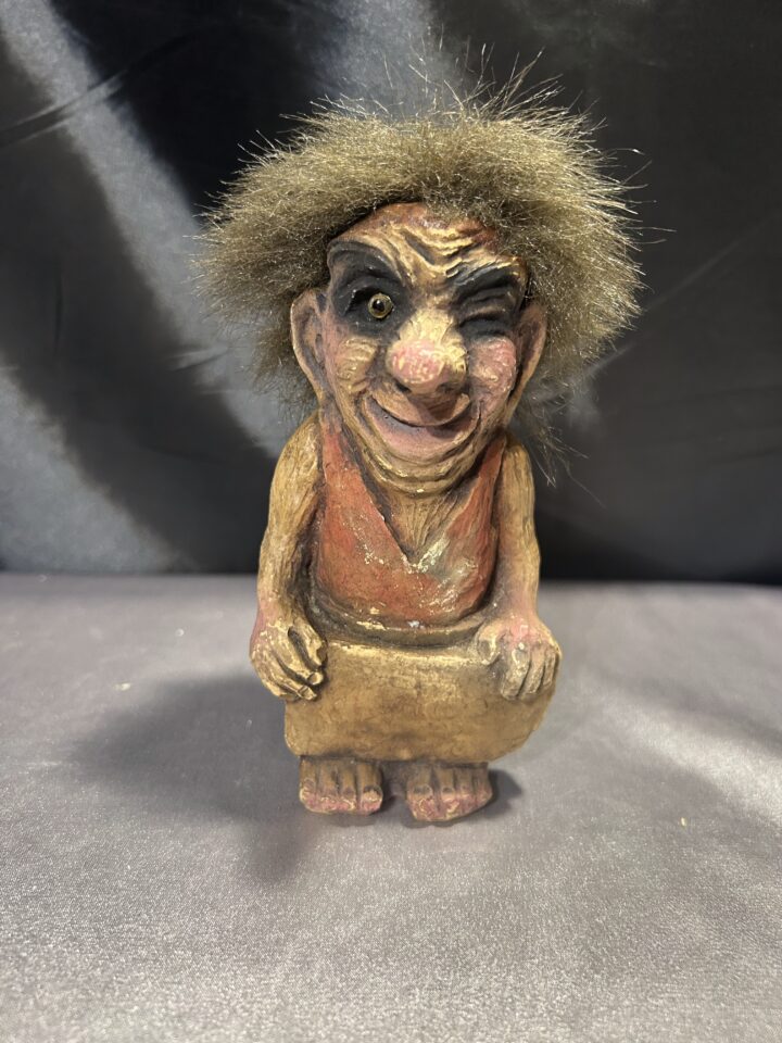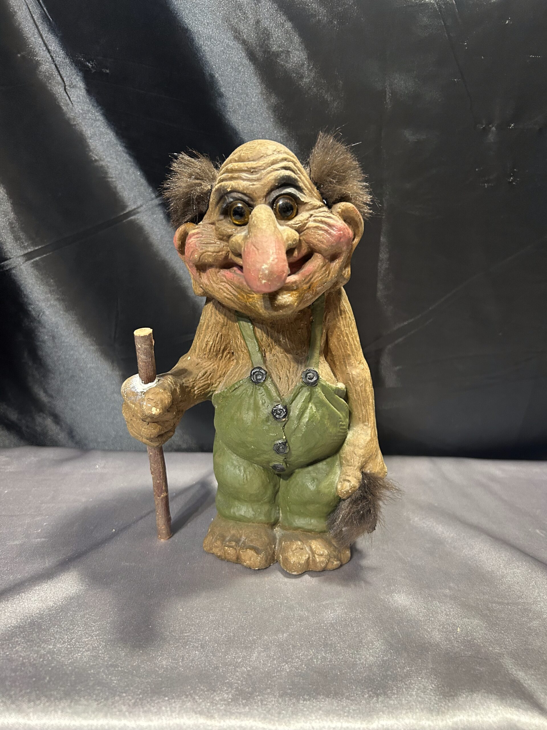 Troll z łysiną i kijem – norweska figurka, autentyczna pamiątka z Norwegii