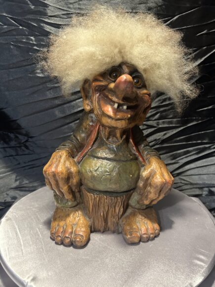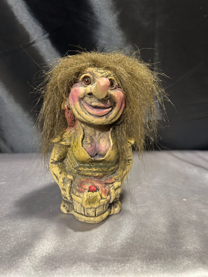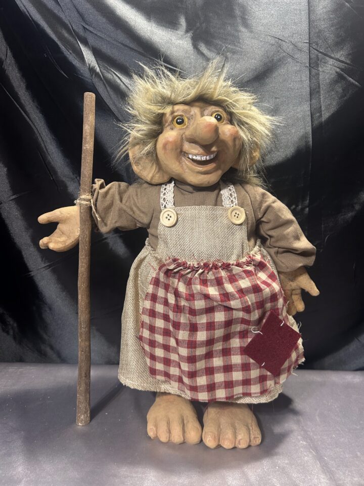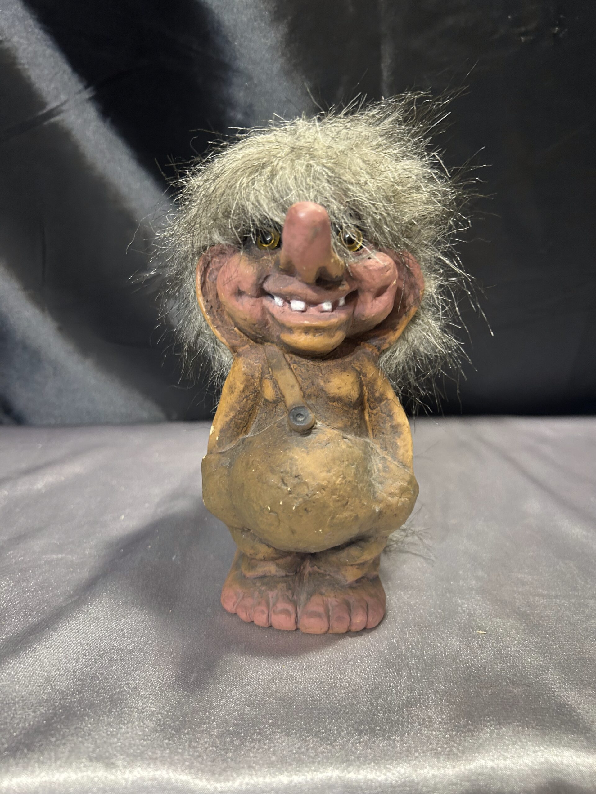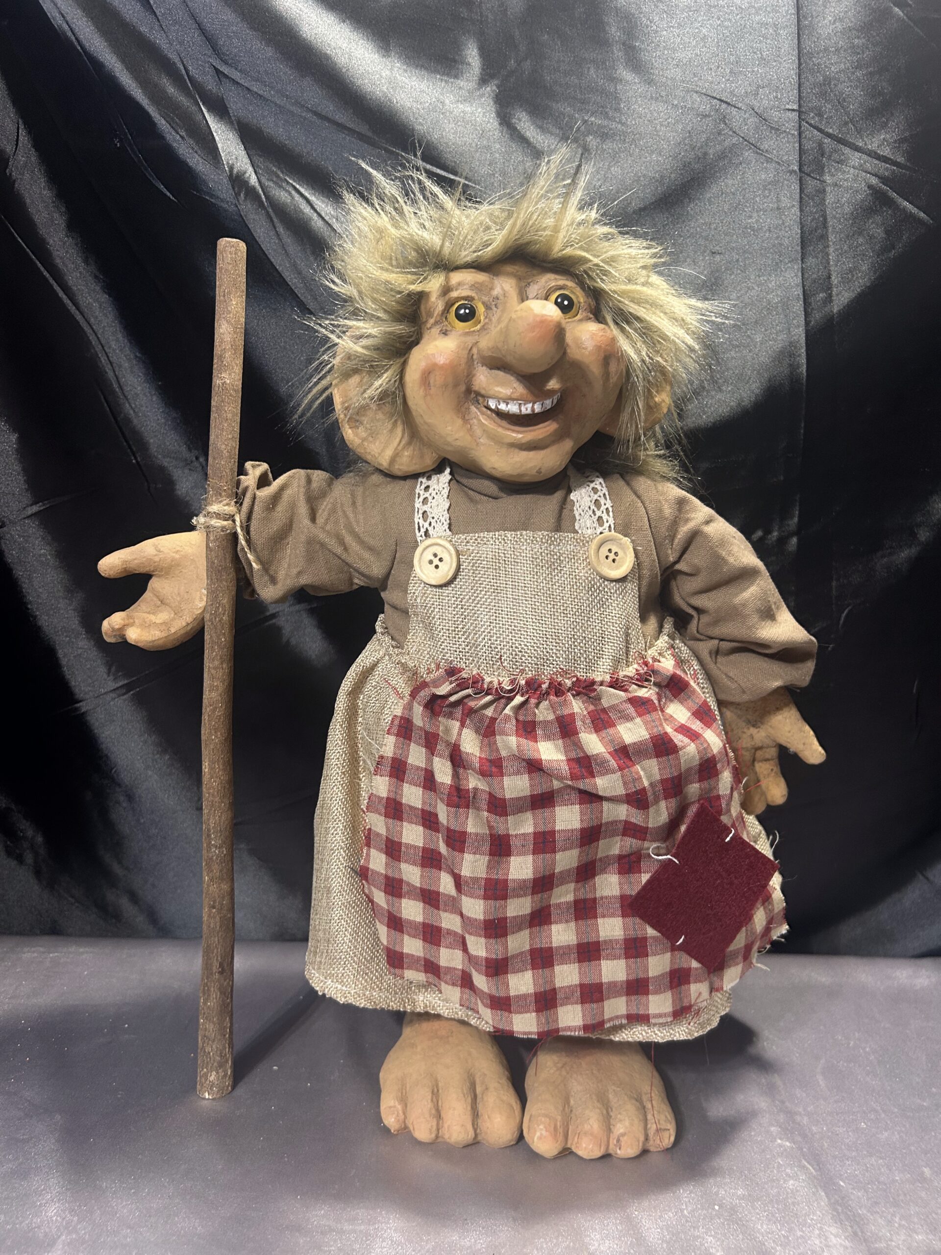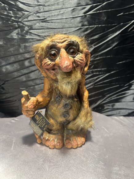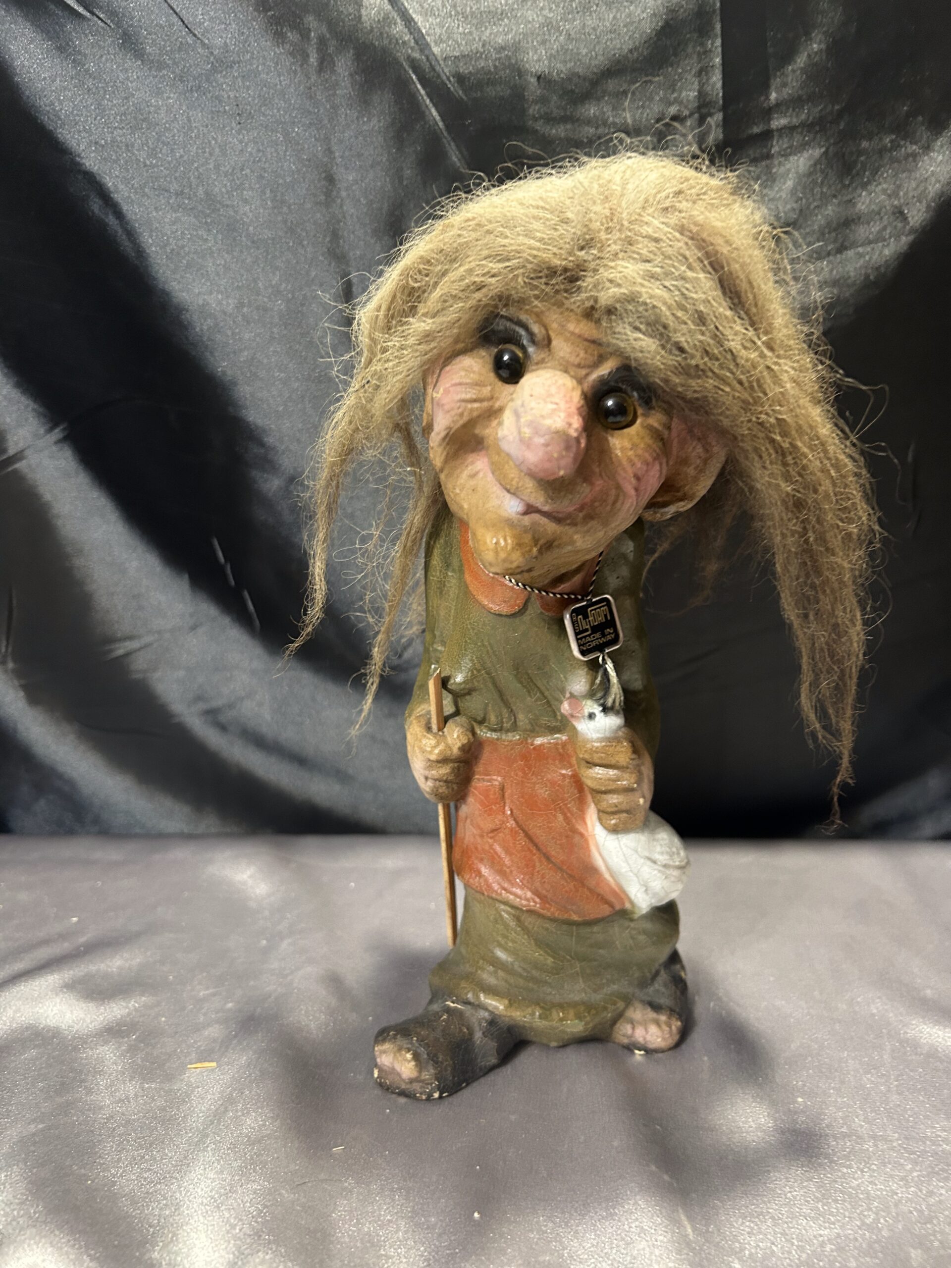 Troll z łysiną i kijem – norweska figurka, autentyczna pamiątka z Norwegii
