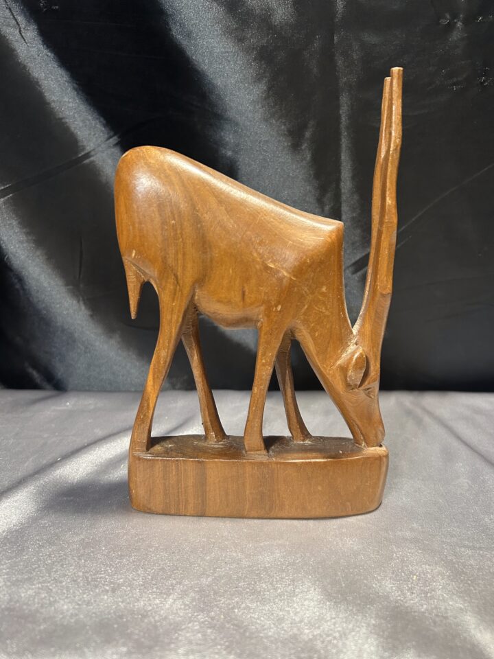 Drewniana antylopa z długimi rogami – afrykańska rzeźba z egzotycznego drewna