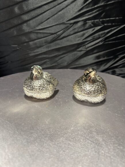 Solniczka i pieprzniczka w kształcie ptaszków, realistyczne, metalowe