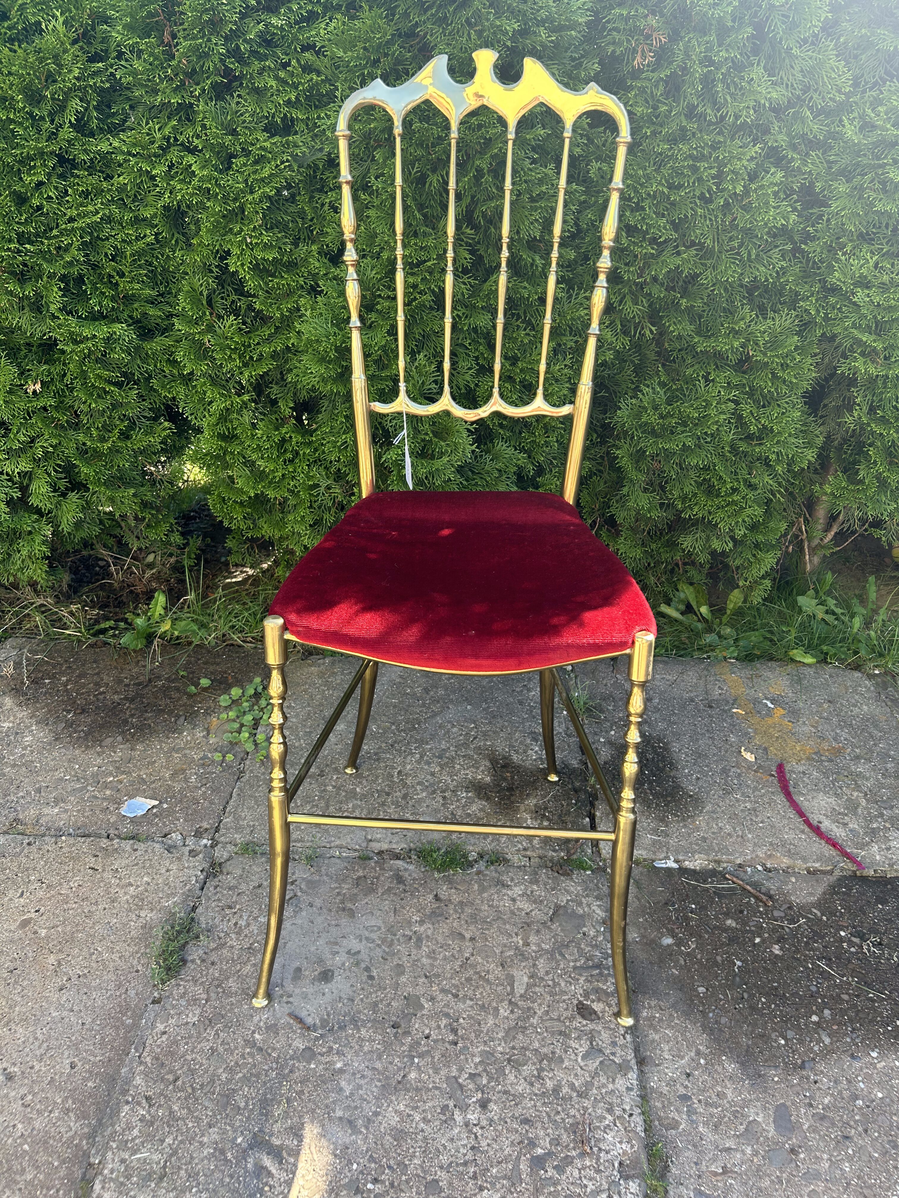 Krzesło mosiężne – złoty kolor – czerwone siedzisko