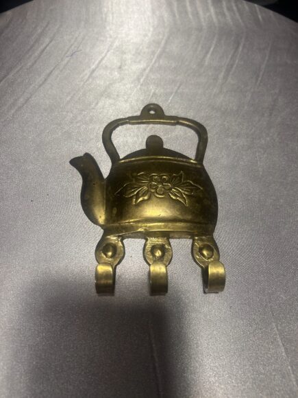 Wieszak mosiężny w kształcie czajniczka – 3 haczyki – dekoracja vintage