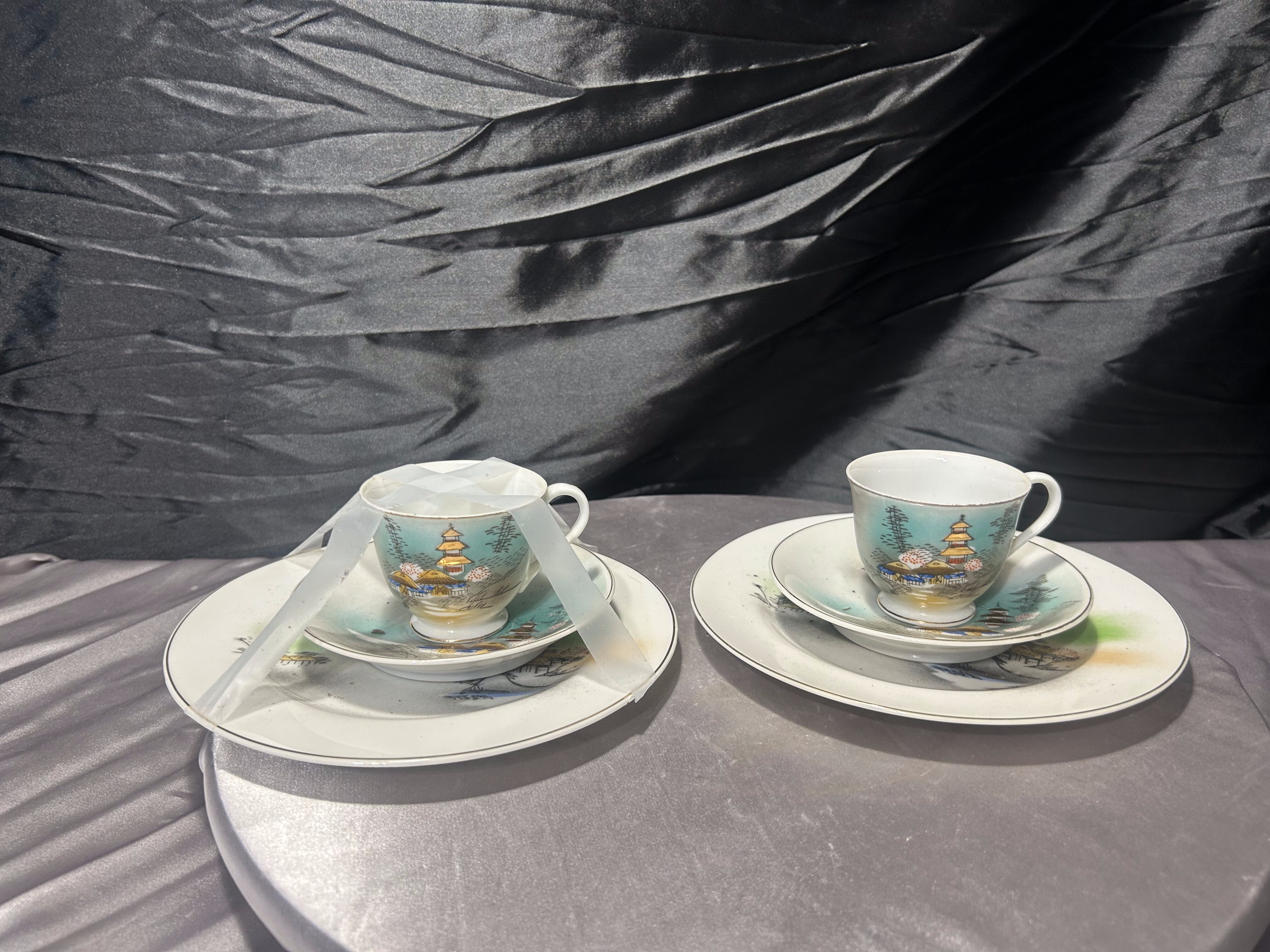 Zestaw 2 filiżanek TRIO Kutani – Japonia – ręcznie malowana porcelana