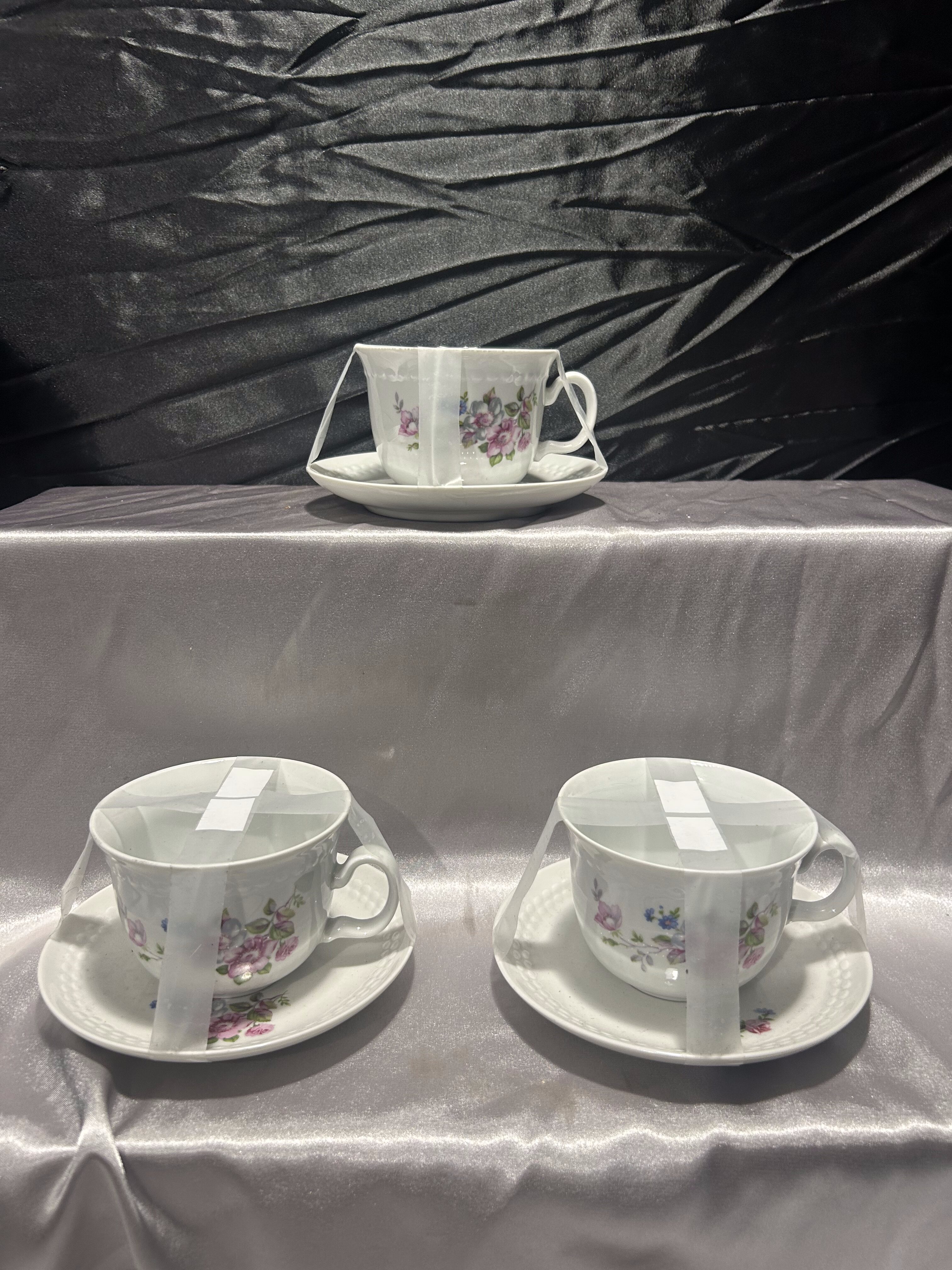 Zestaw 3 filiżanek Kahla – porcelana NRD – motyw kwiatowy