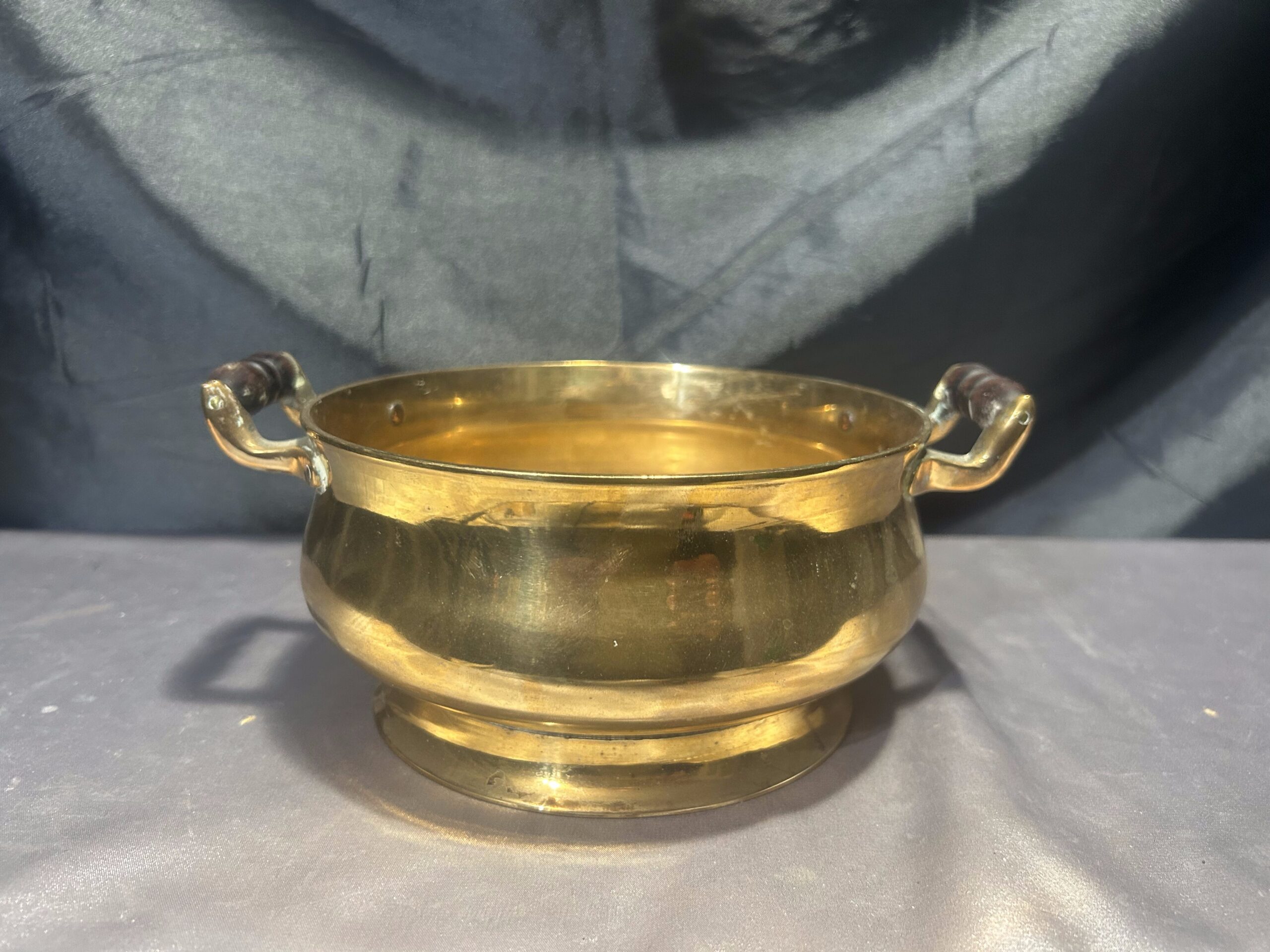 Misa z Mosiądzu z Drewnianymi Wykończeniami – Unikatowa Ozdoba z Dwoma Uchwytami