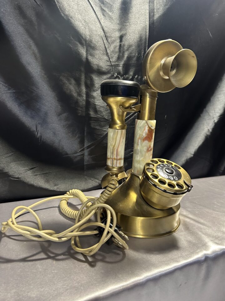 Telefon Antyk Vintage – Mosiądz i Onyks