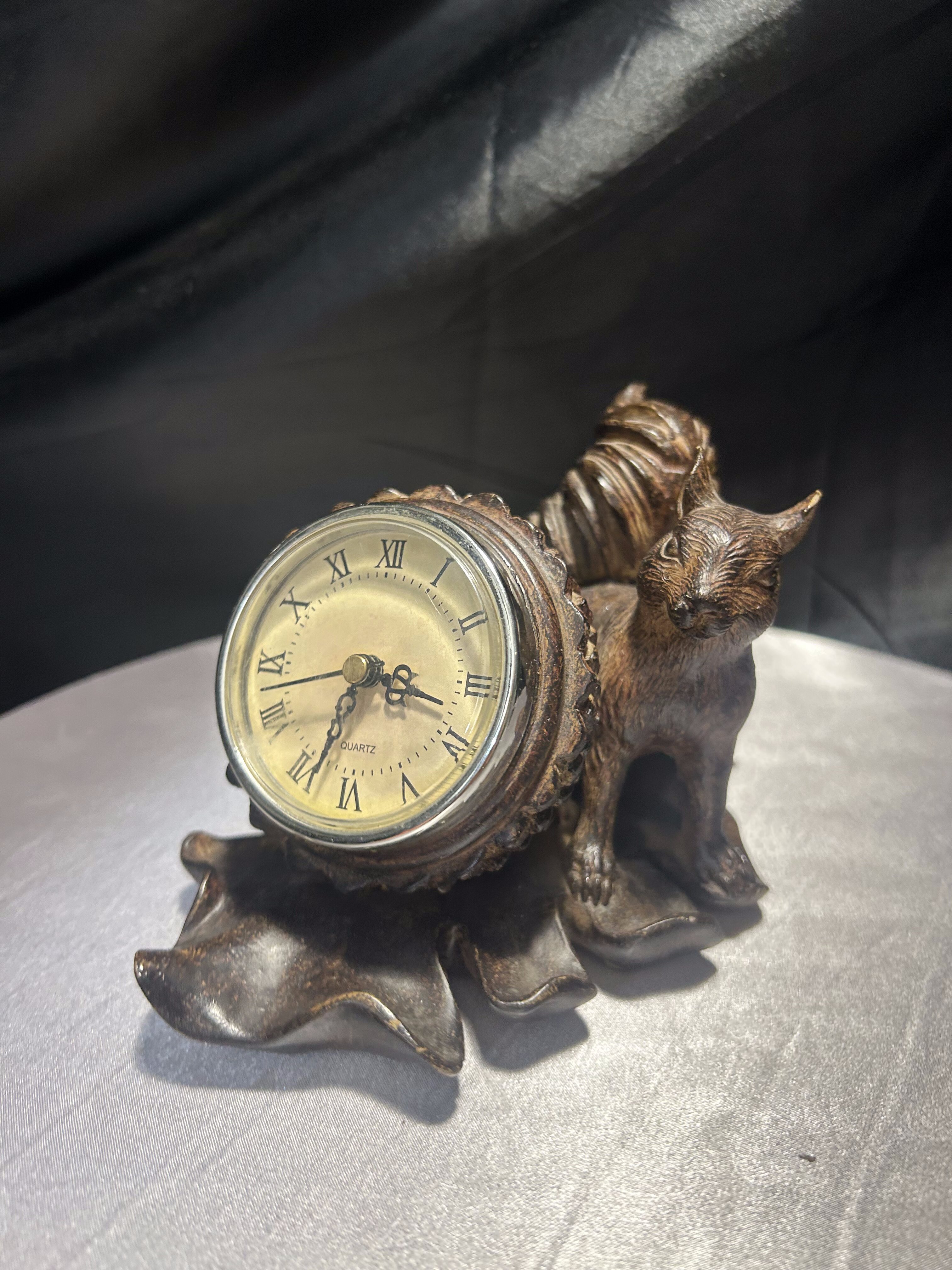 Zegar dekoracyjny z wiewiórką – imitacja drewna – styl rustykalny