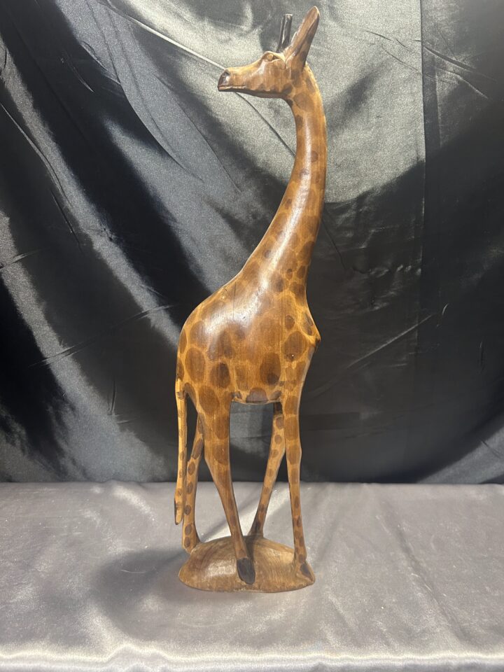 Drewniana rzeźba żyrafy – realistyczna figurka z egzotycznego drewna