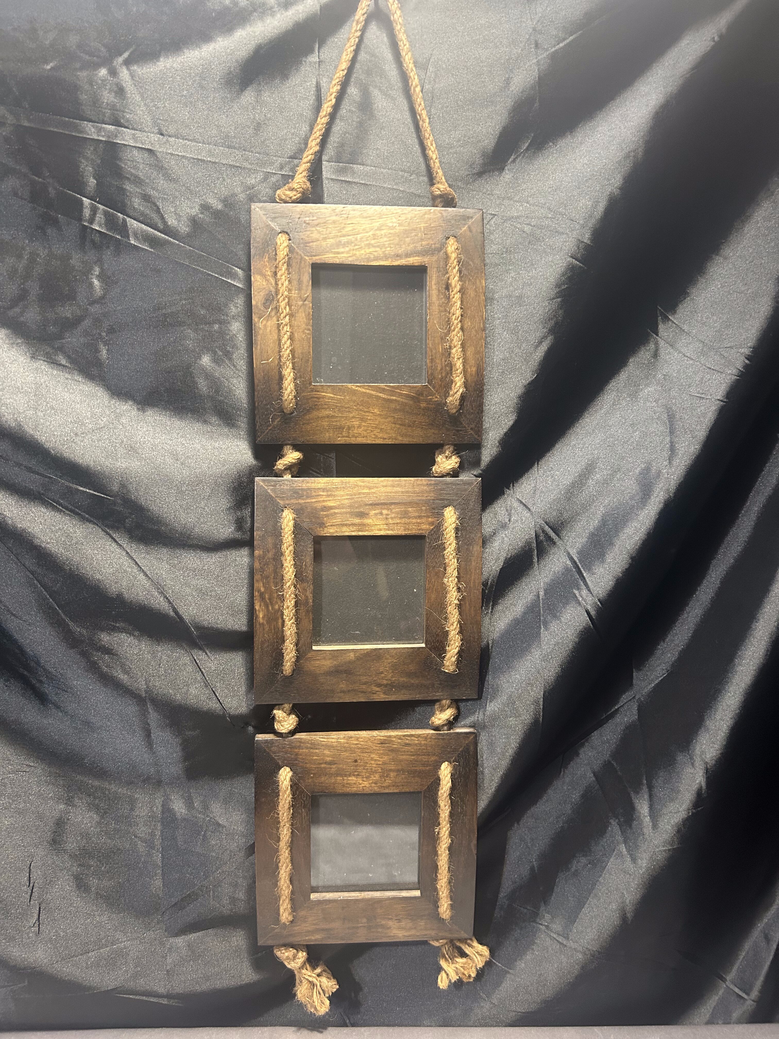 Ramka na Zdjęcia z Drewna Polisander – Potrójna, Wisząca – 74 cm