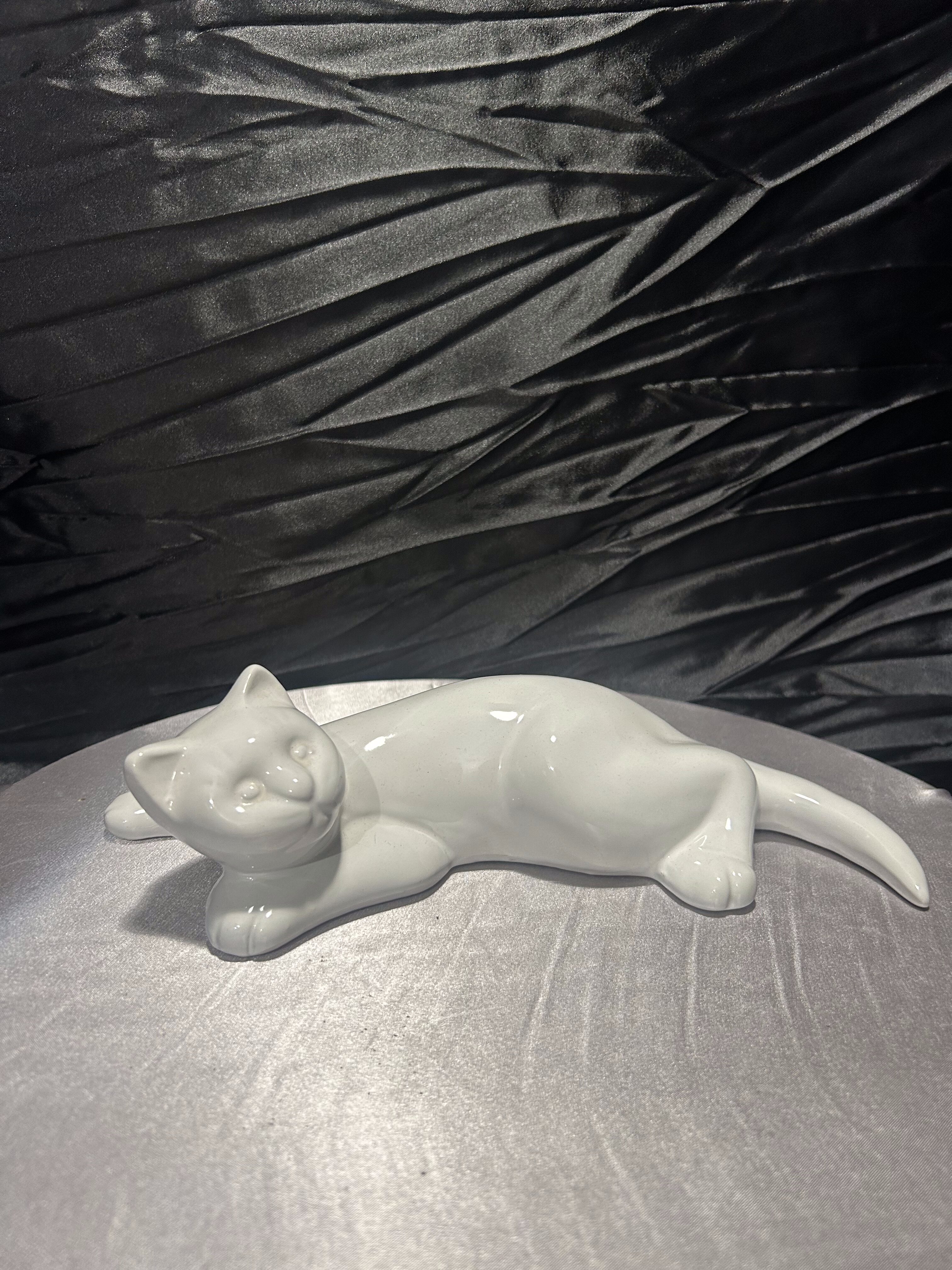 Ceramiczna figurka leżącego kota – styl minimalistyczny – 26,5 cm